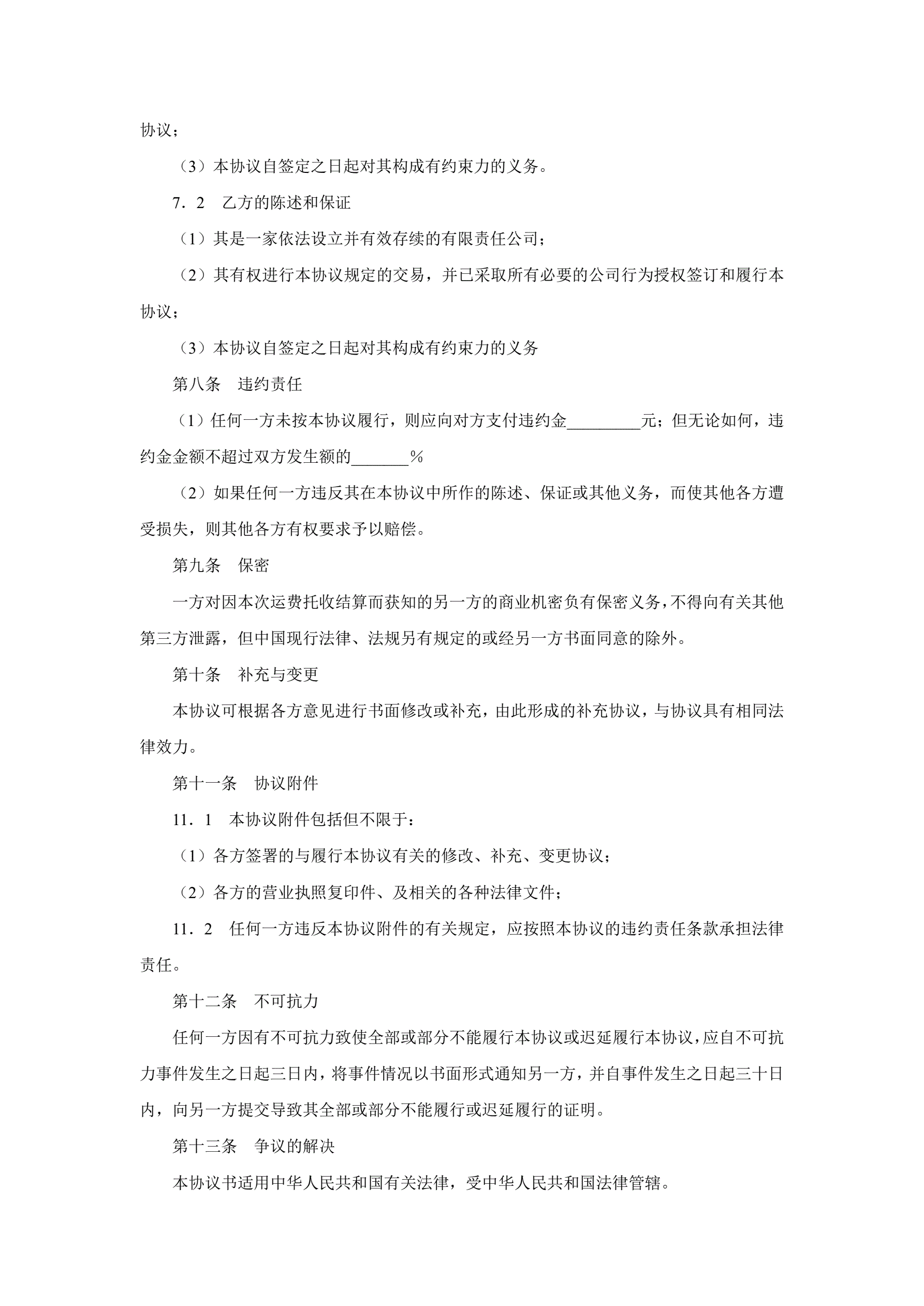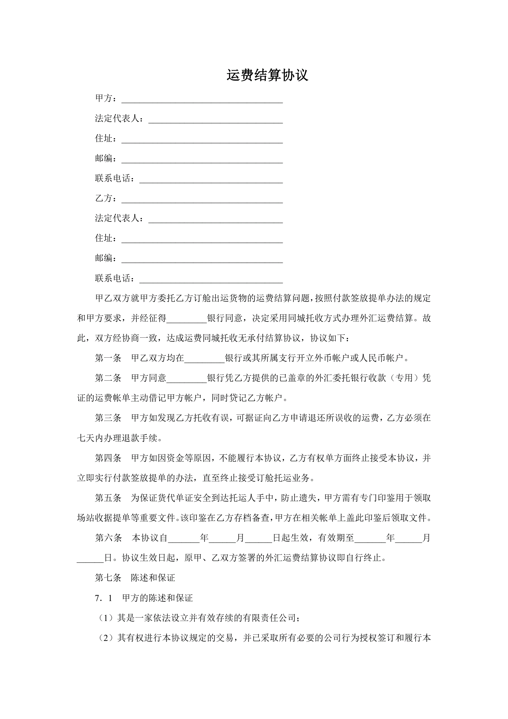 >运费结算协议