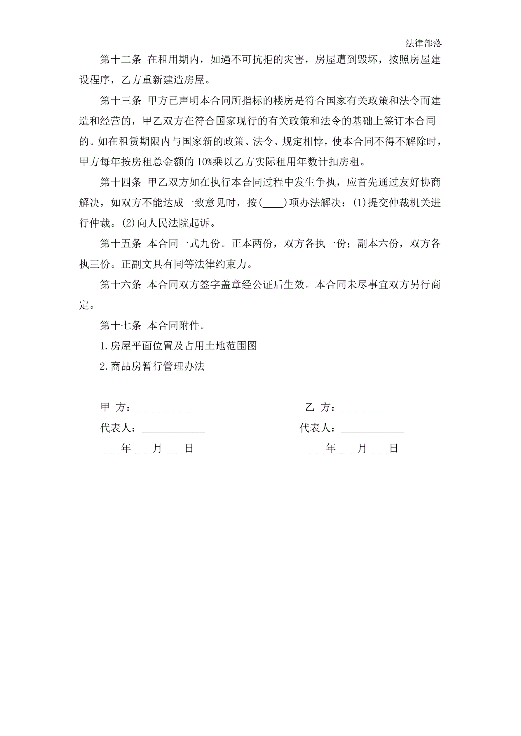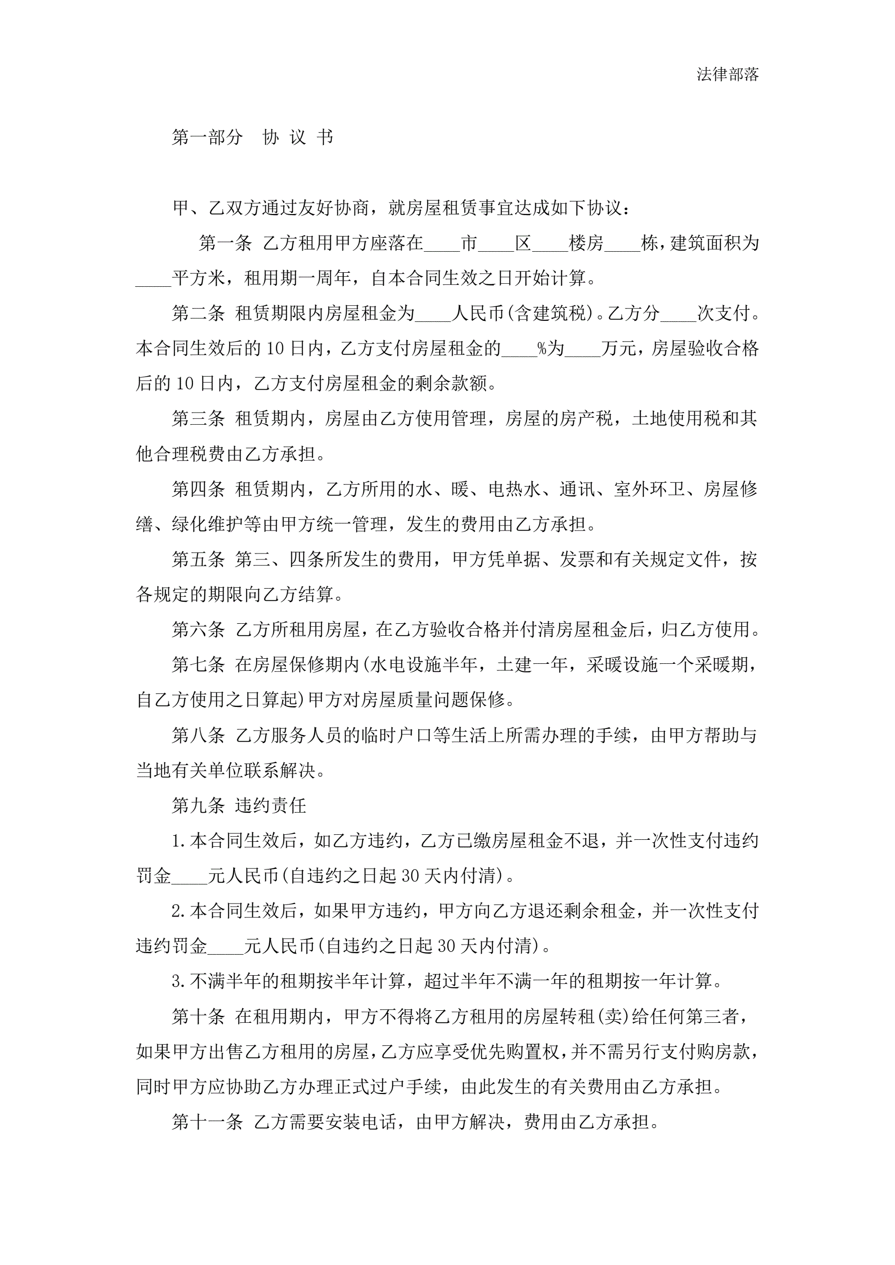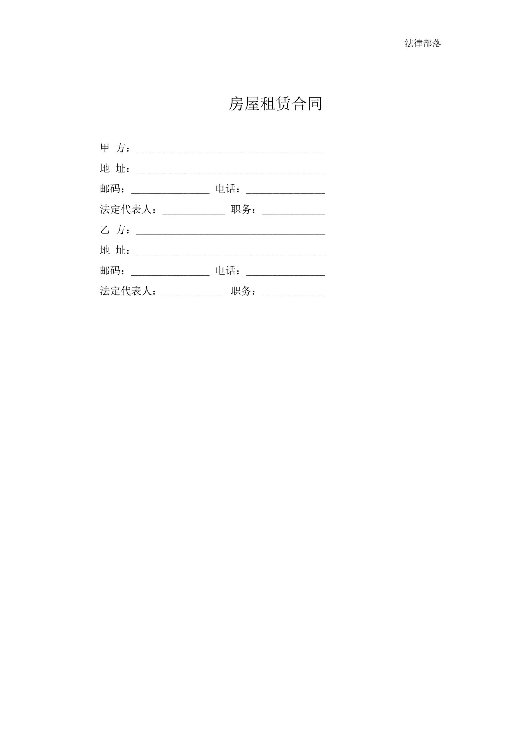 >房屋租赁合同(范本二)