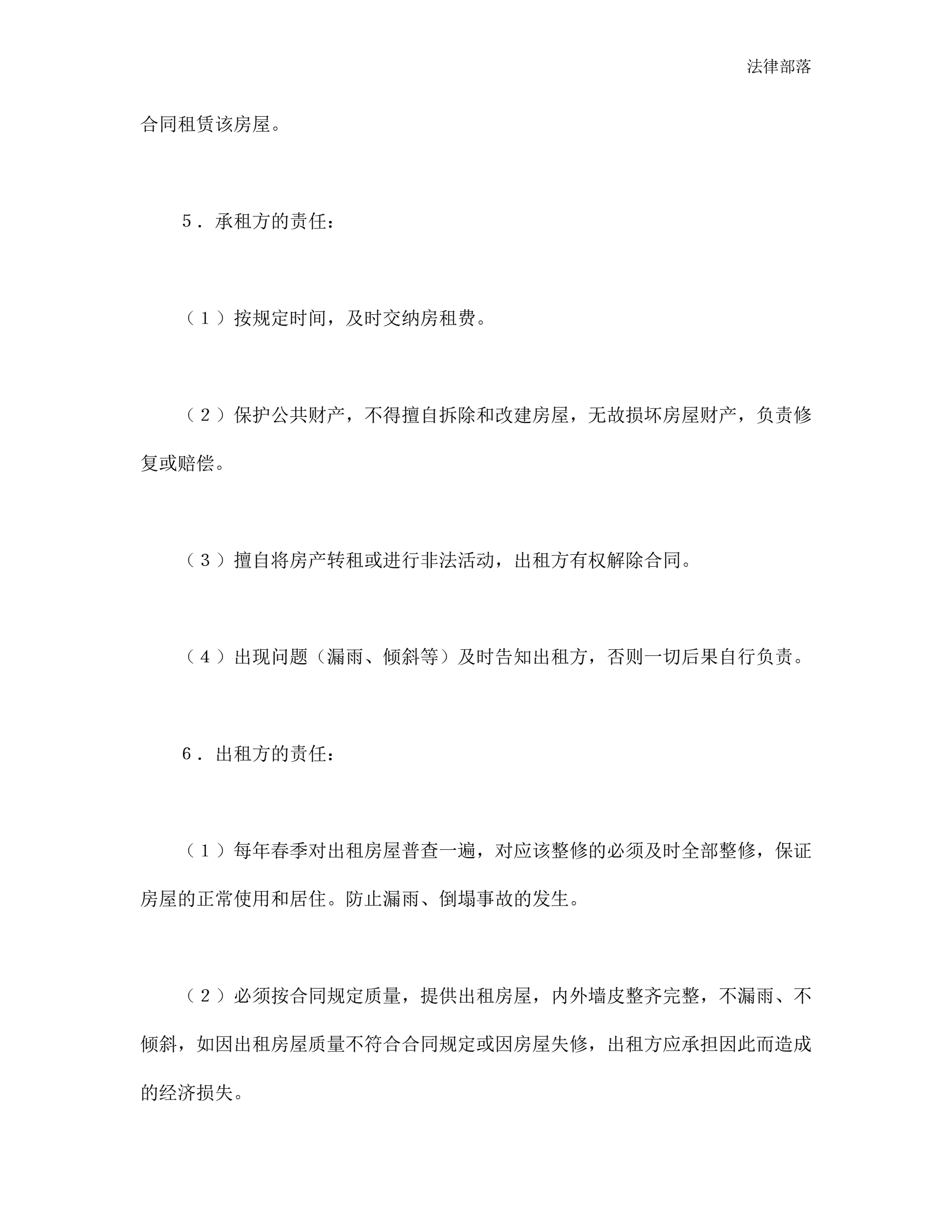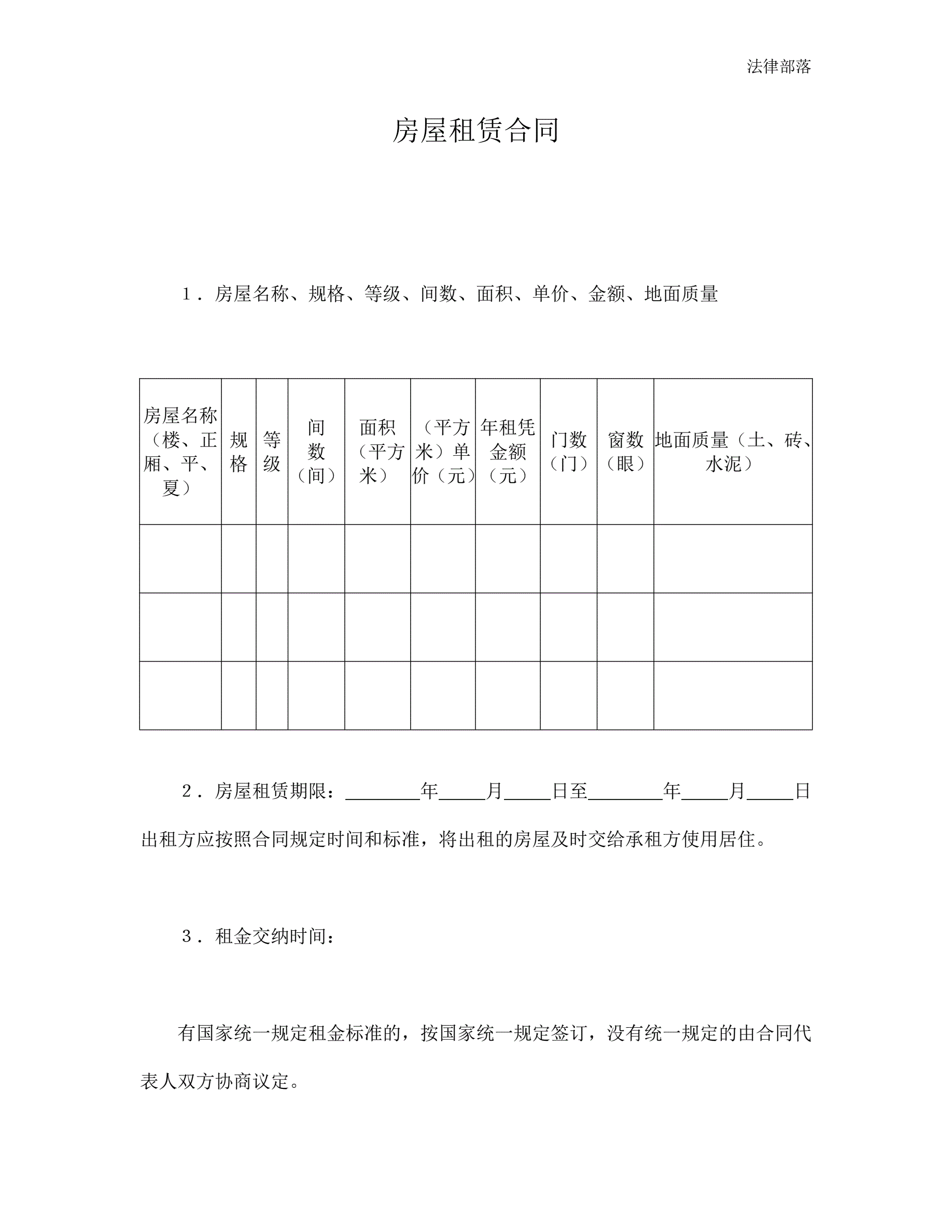 >房屋租赁合同(范本二)