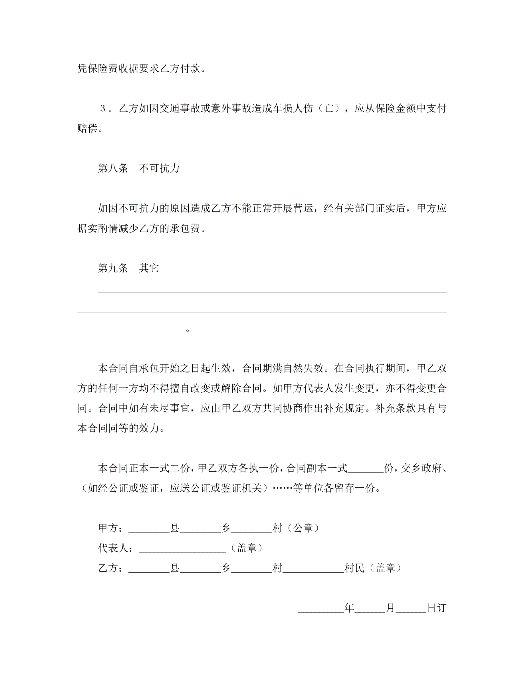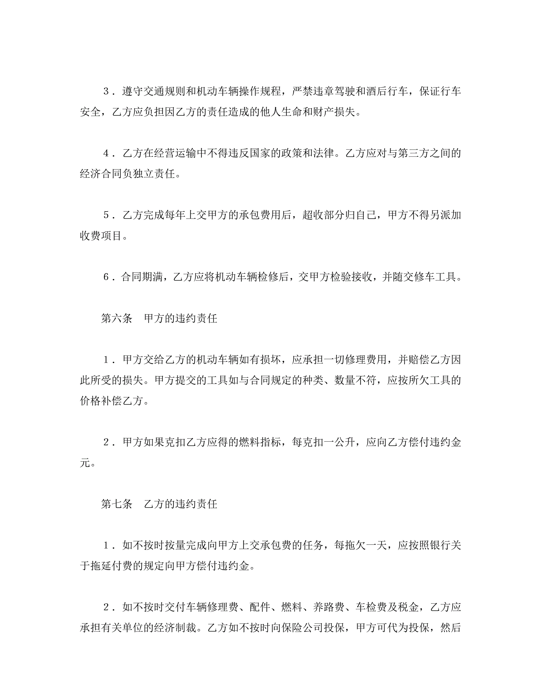 >承包合同书(车辆)