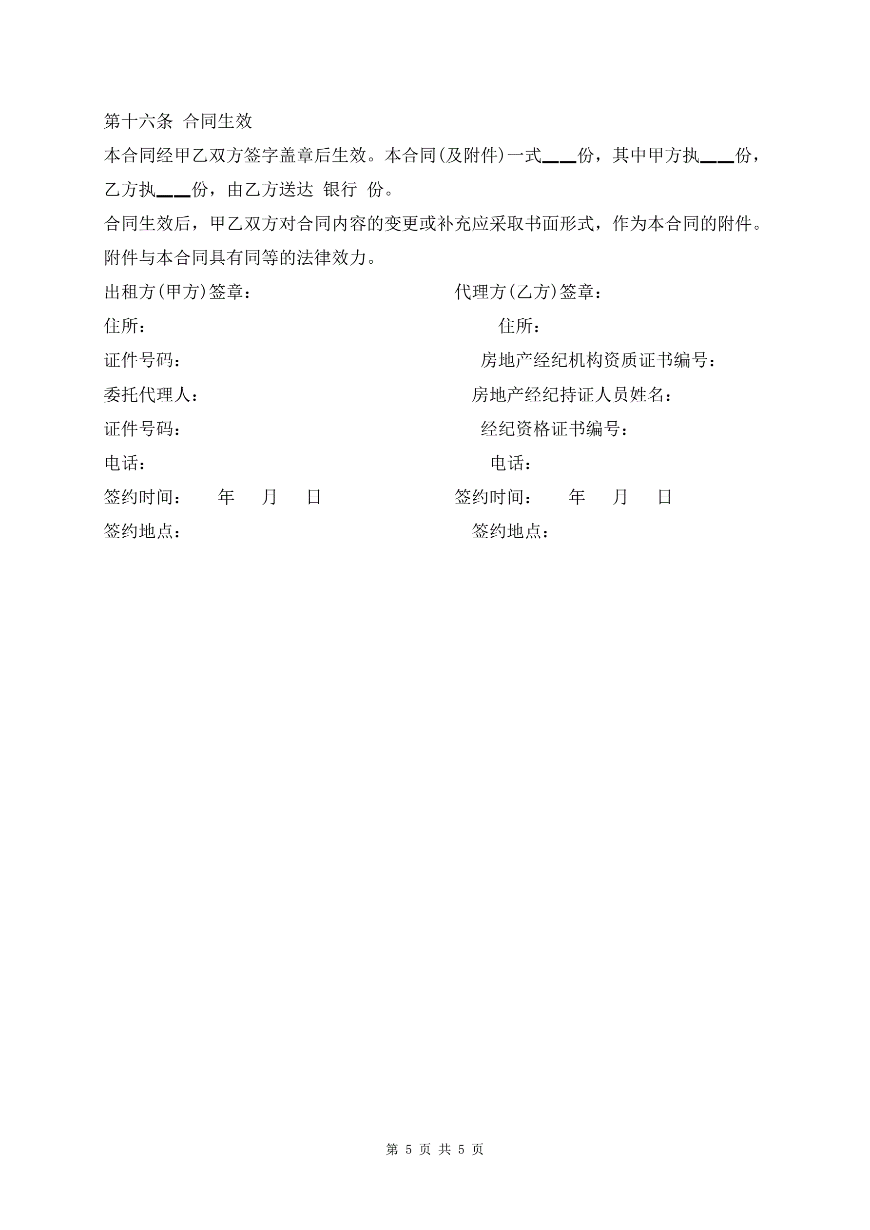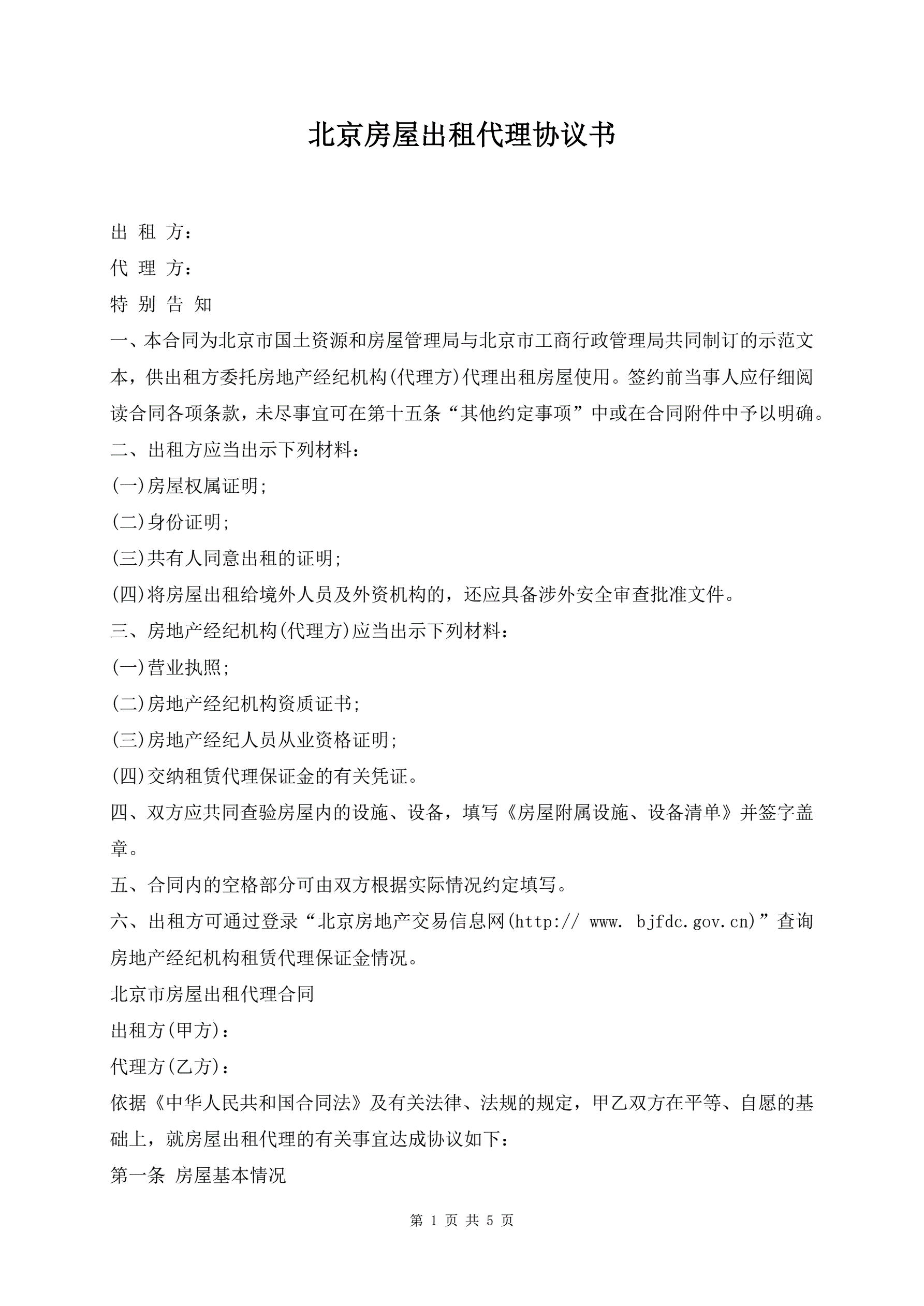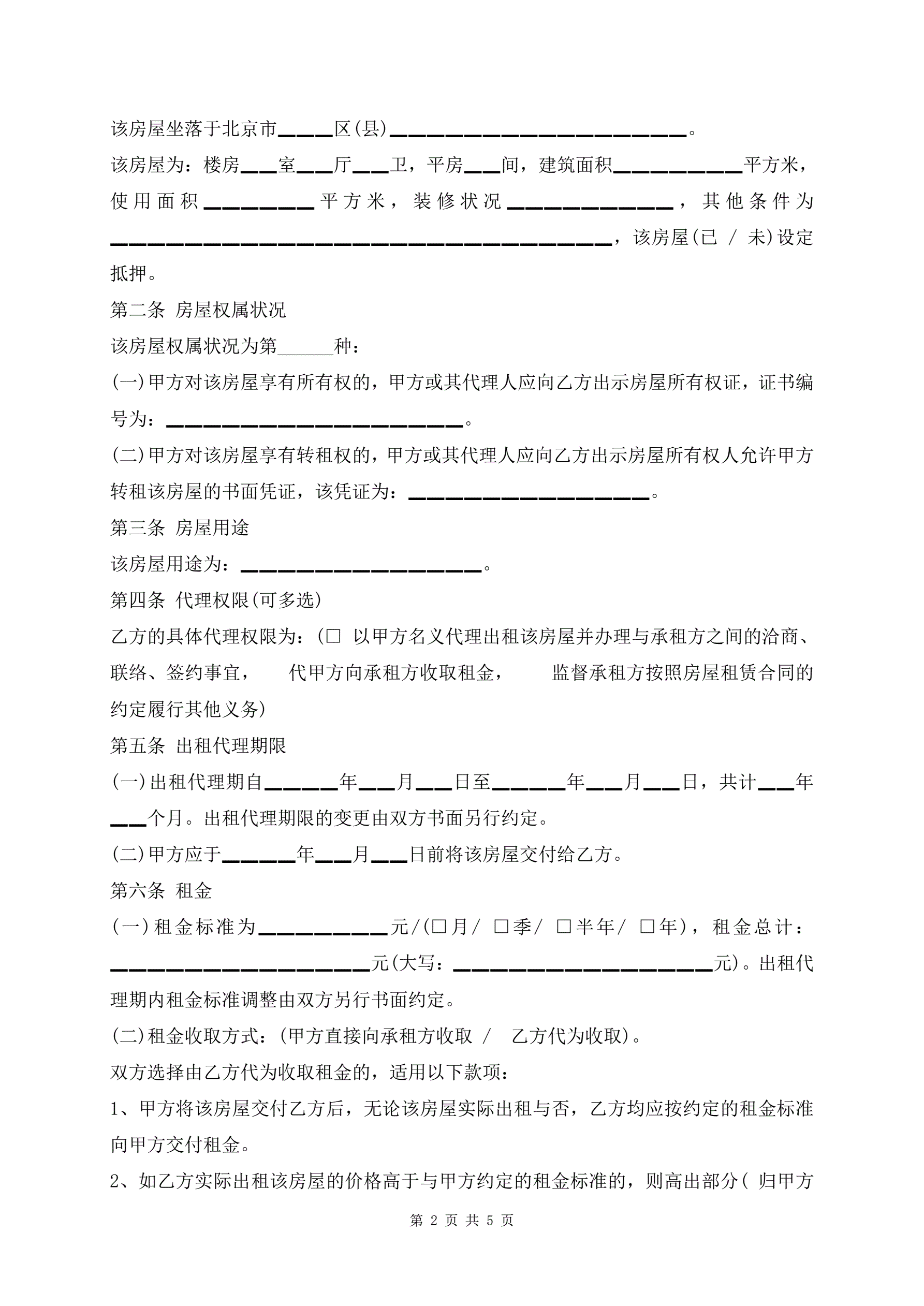 >北京房屋出租代理协议书