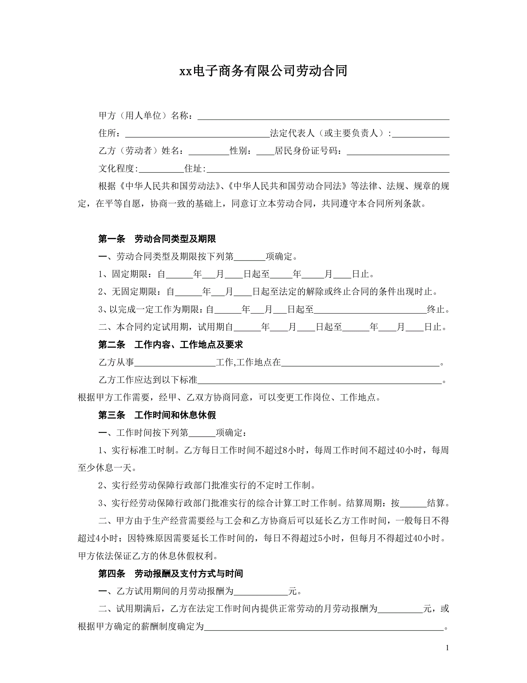 电子商务公司劳动合同