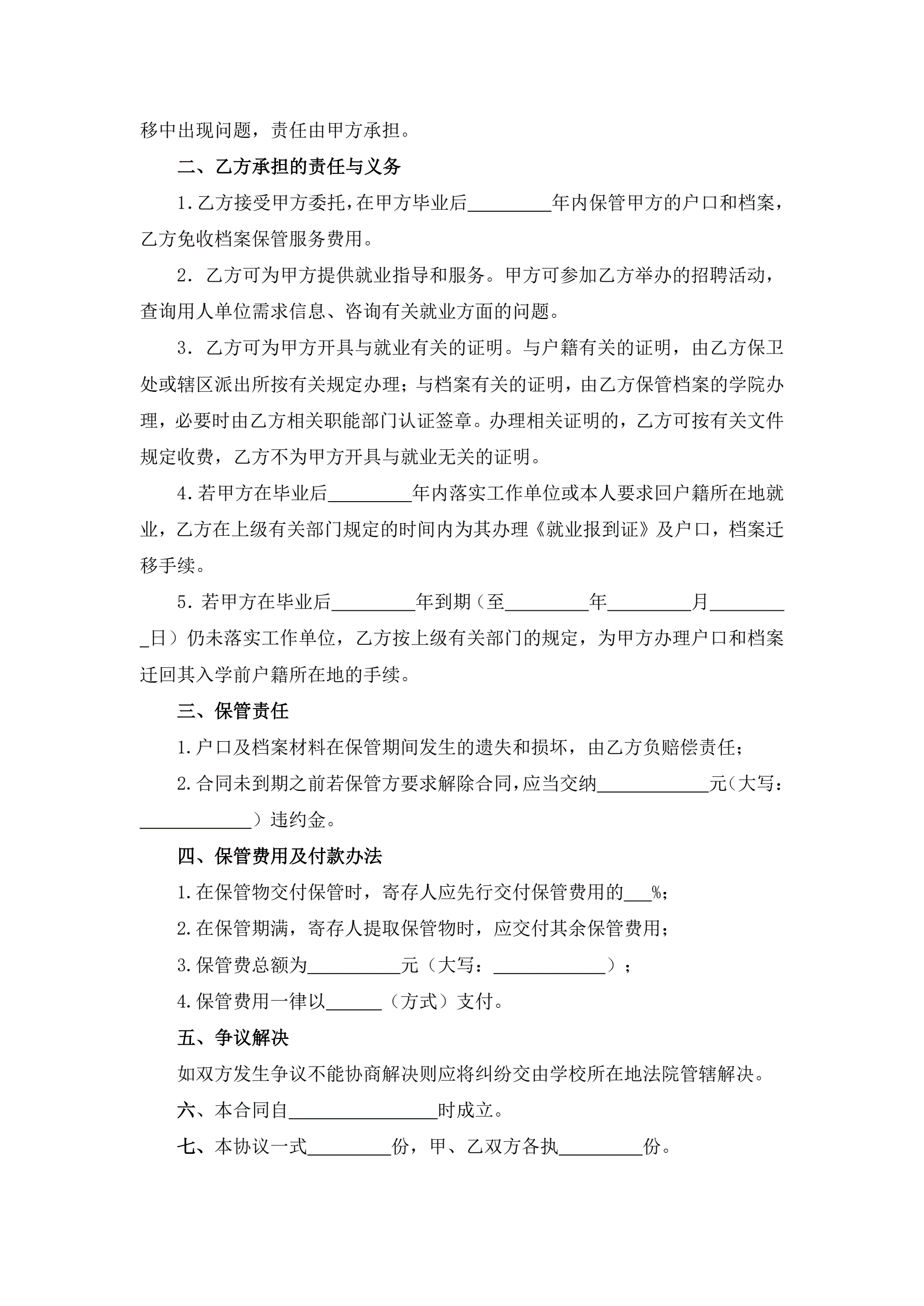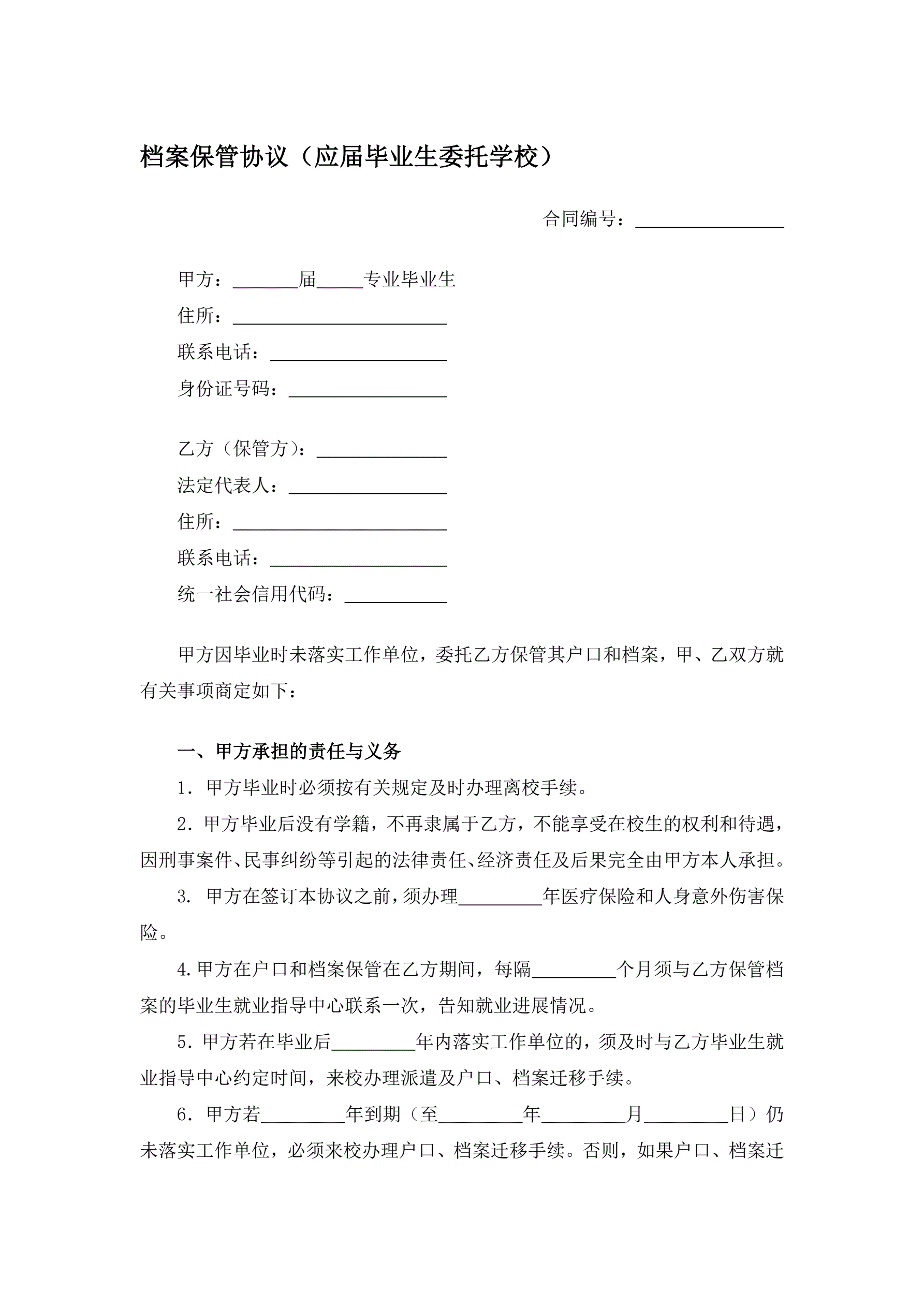 >档案保管协议(应届毕业生委托学校)