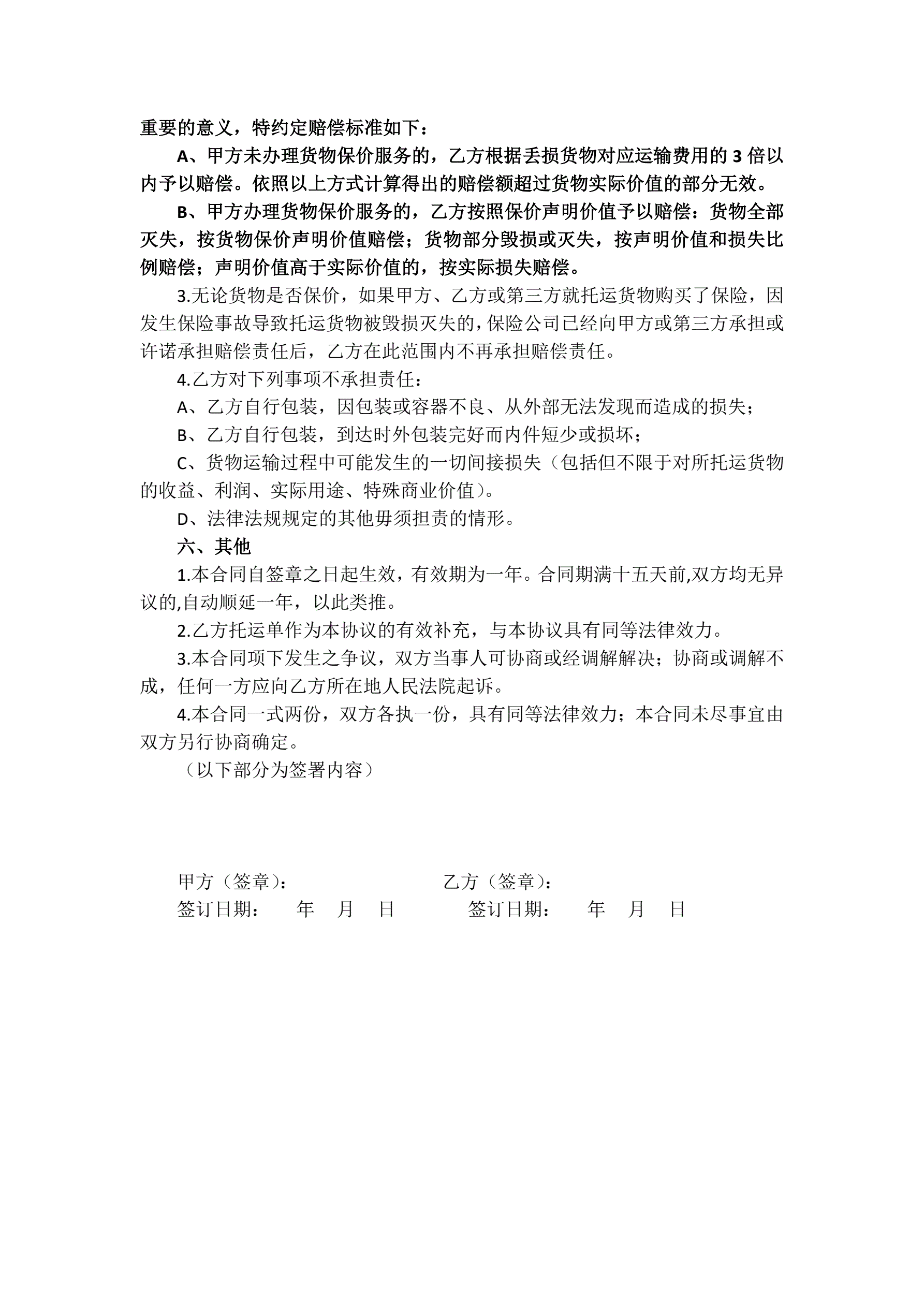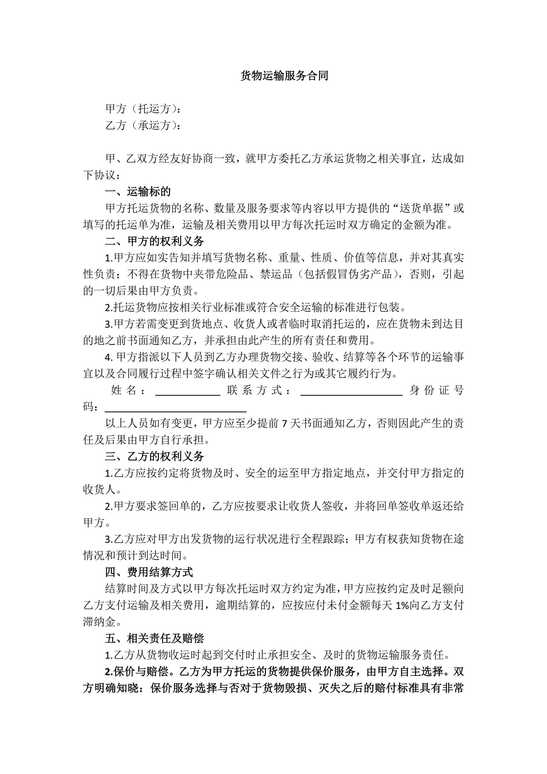 货物运输服务合同(与散客-简易版)