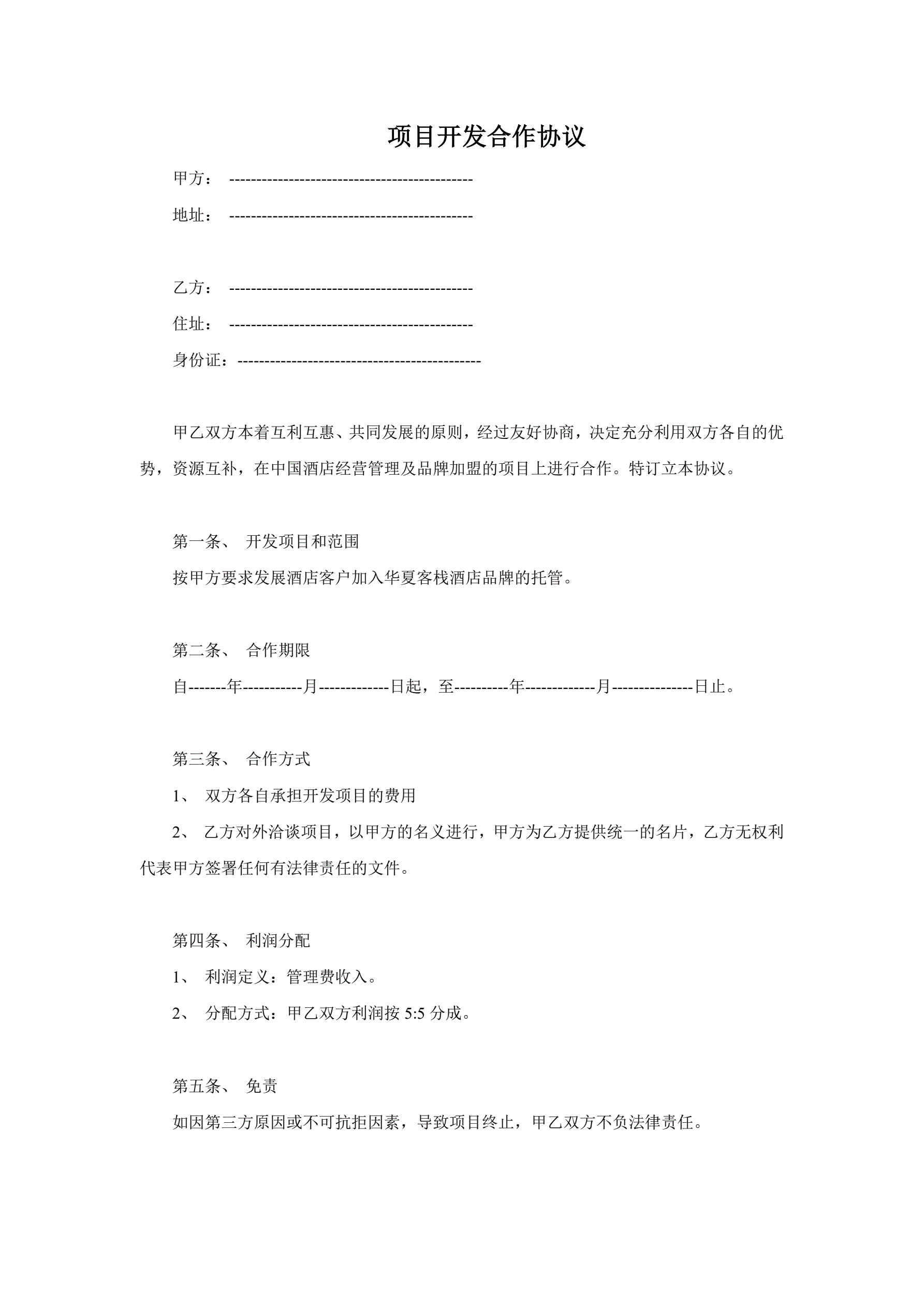 项目开发合作协议