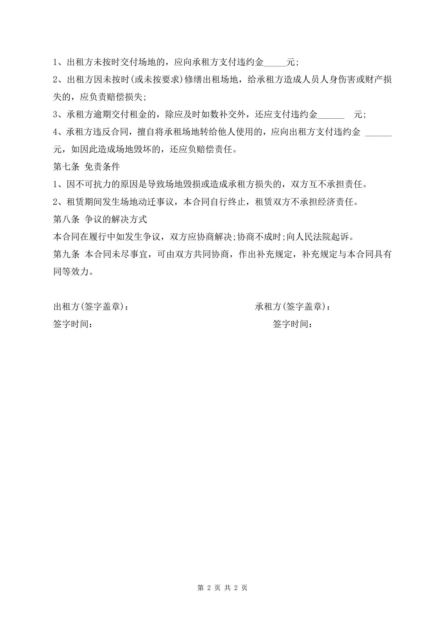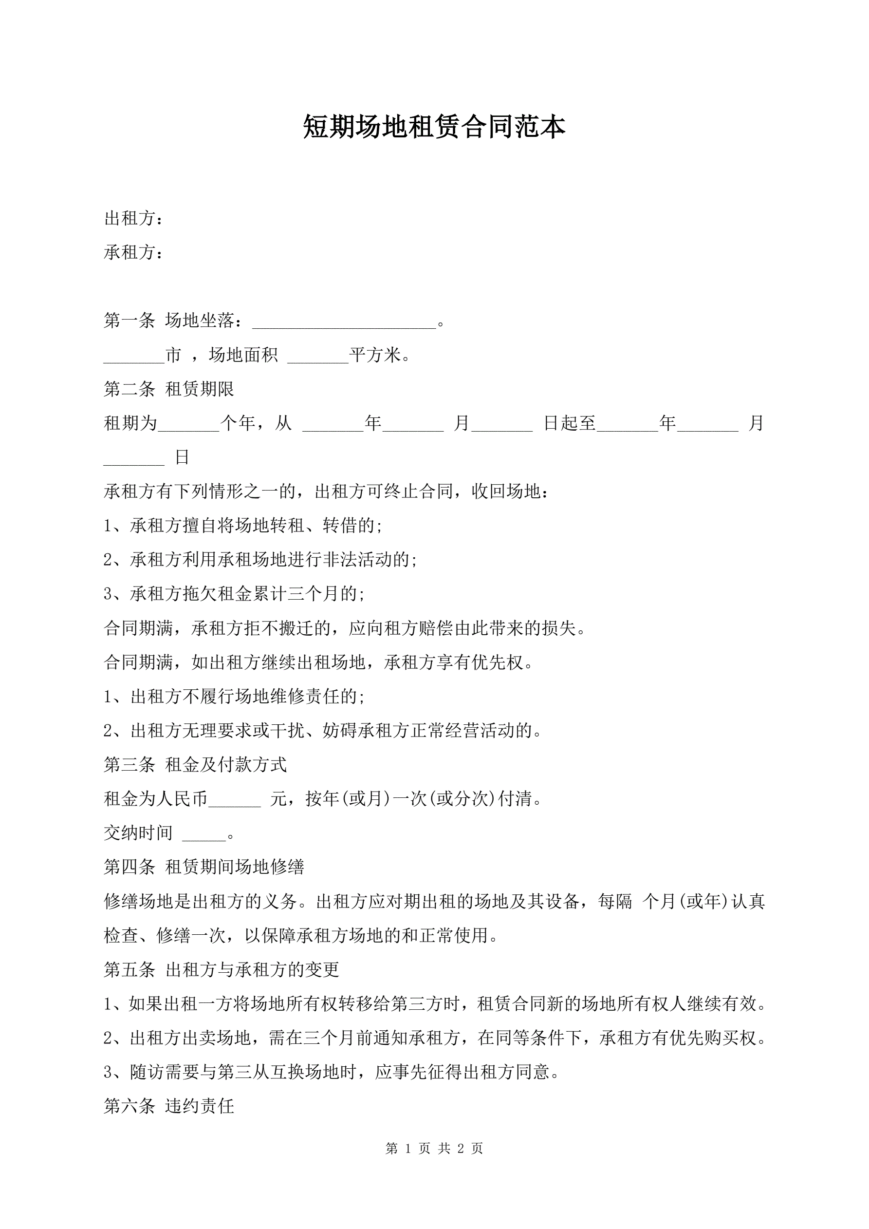 短期场地租赁合同范本