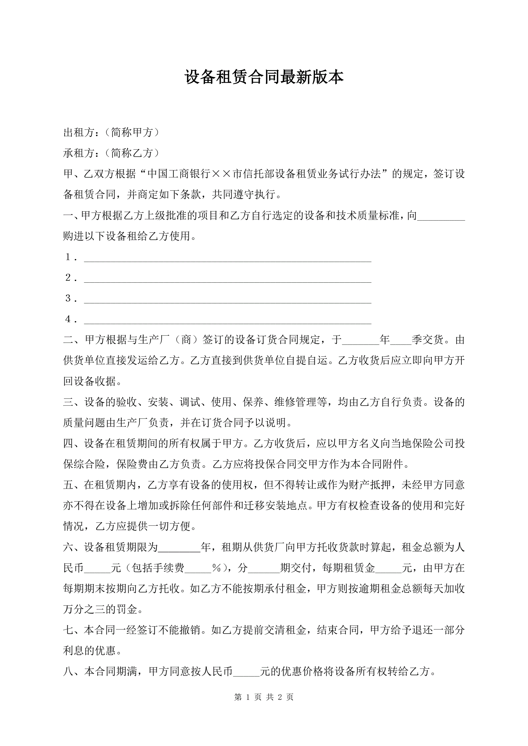 设备租赁合同最新版本