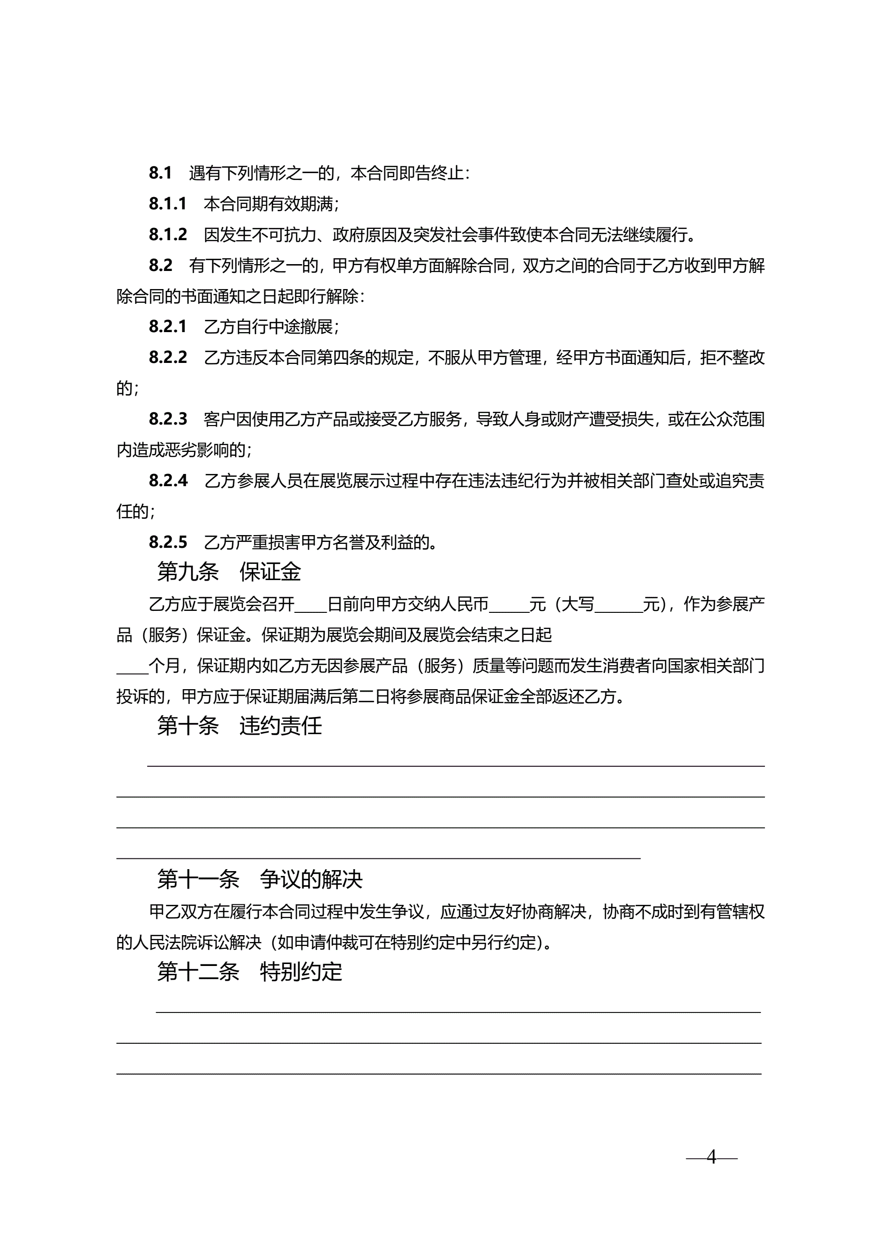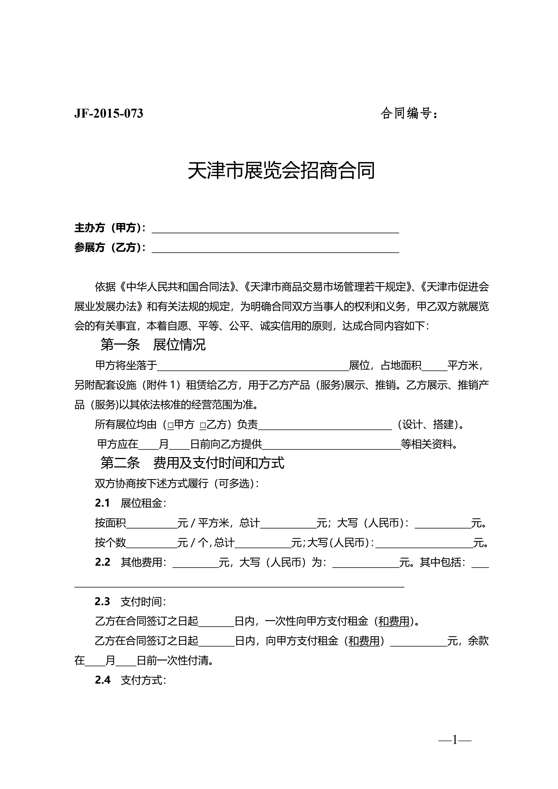 >天津市展览会招商合同
