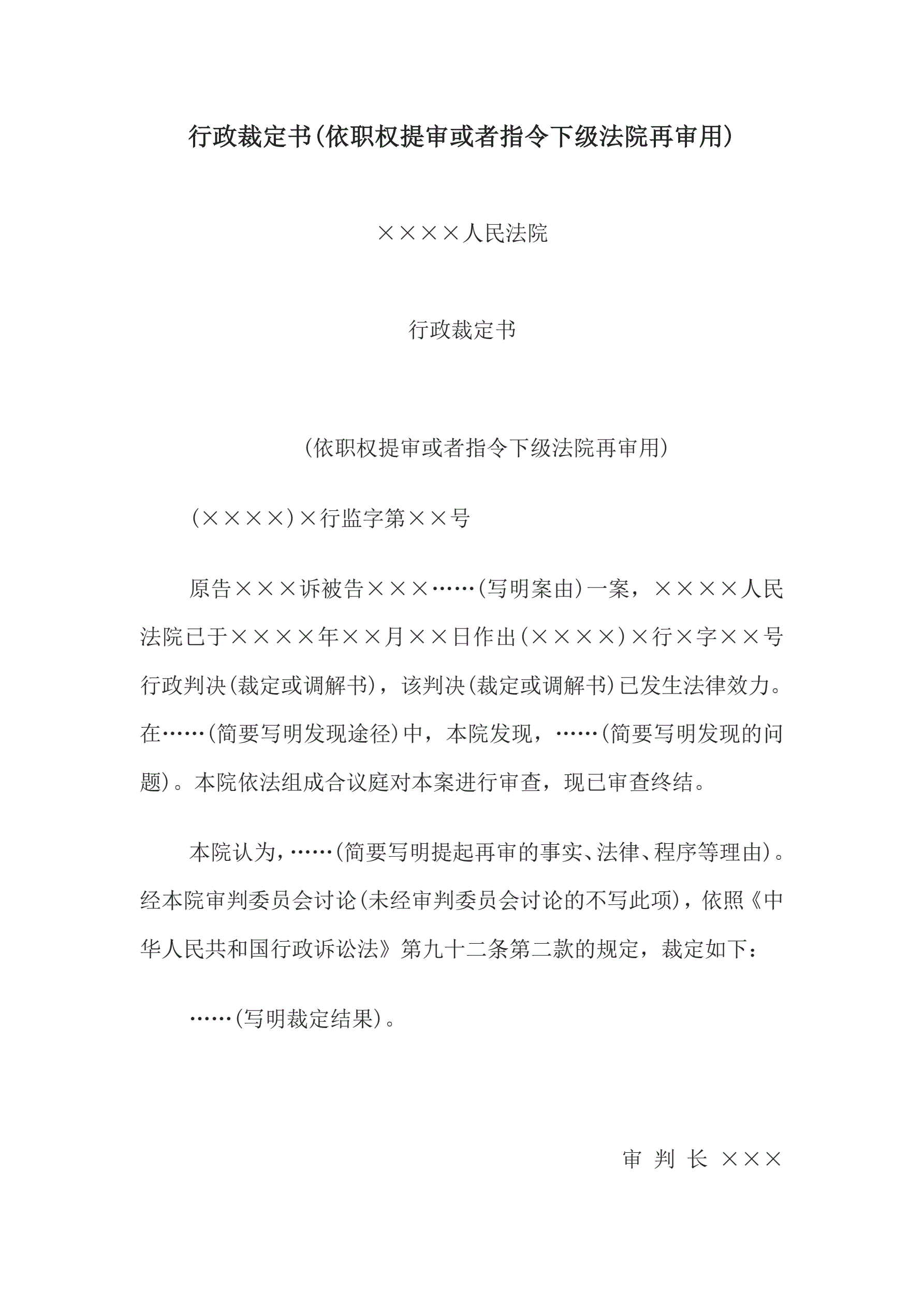 >行政裁定书(依职权提审或者指令下级法院再审用)