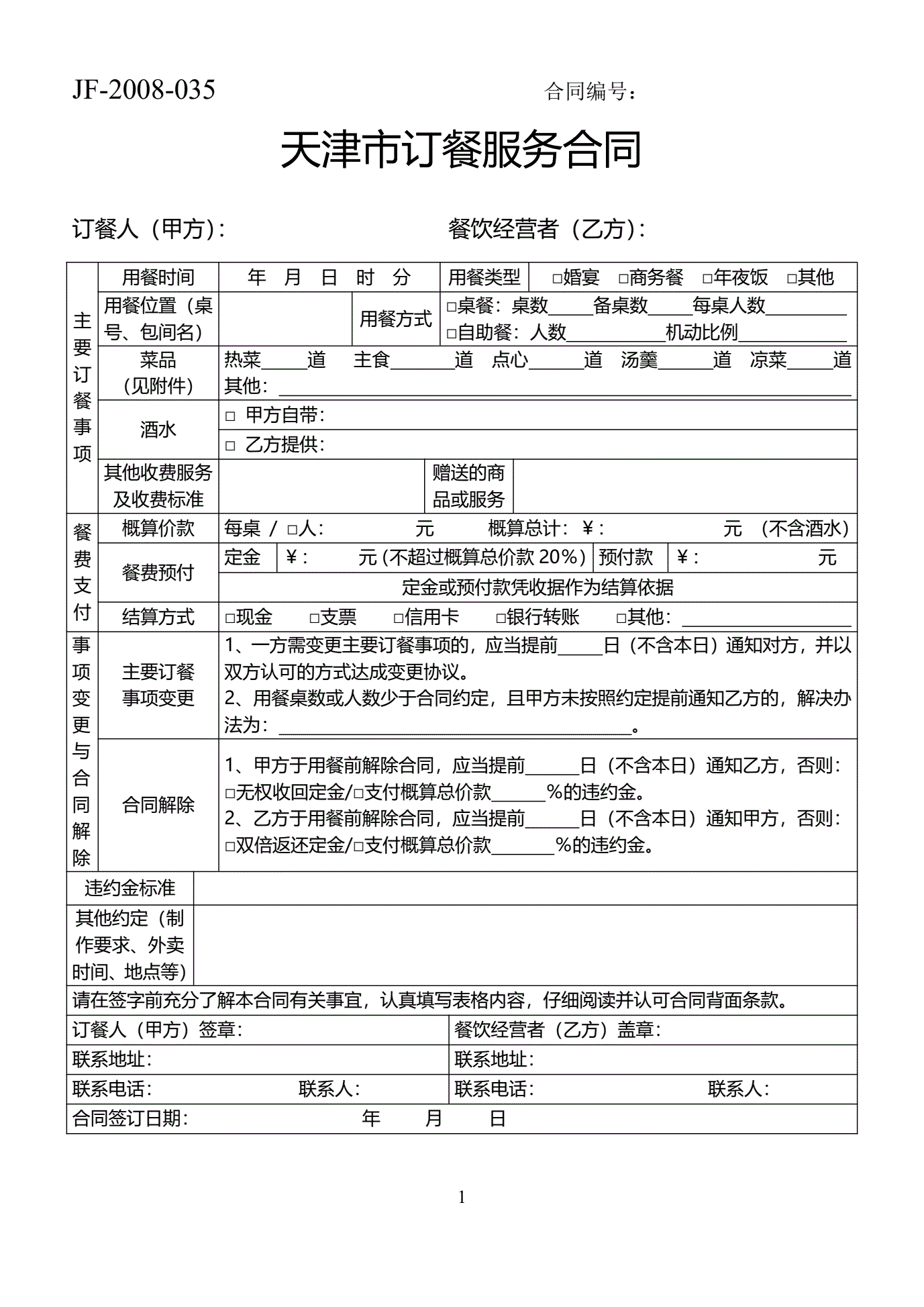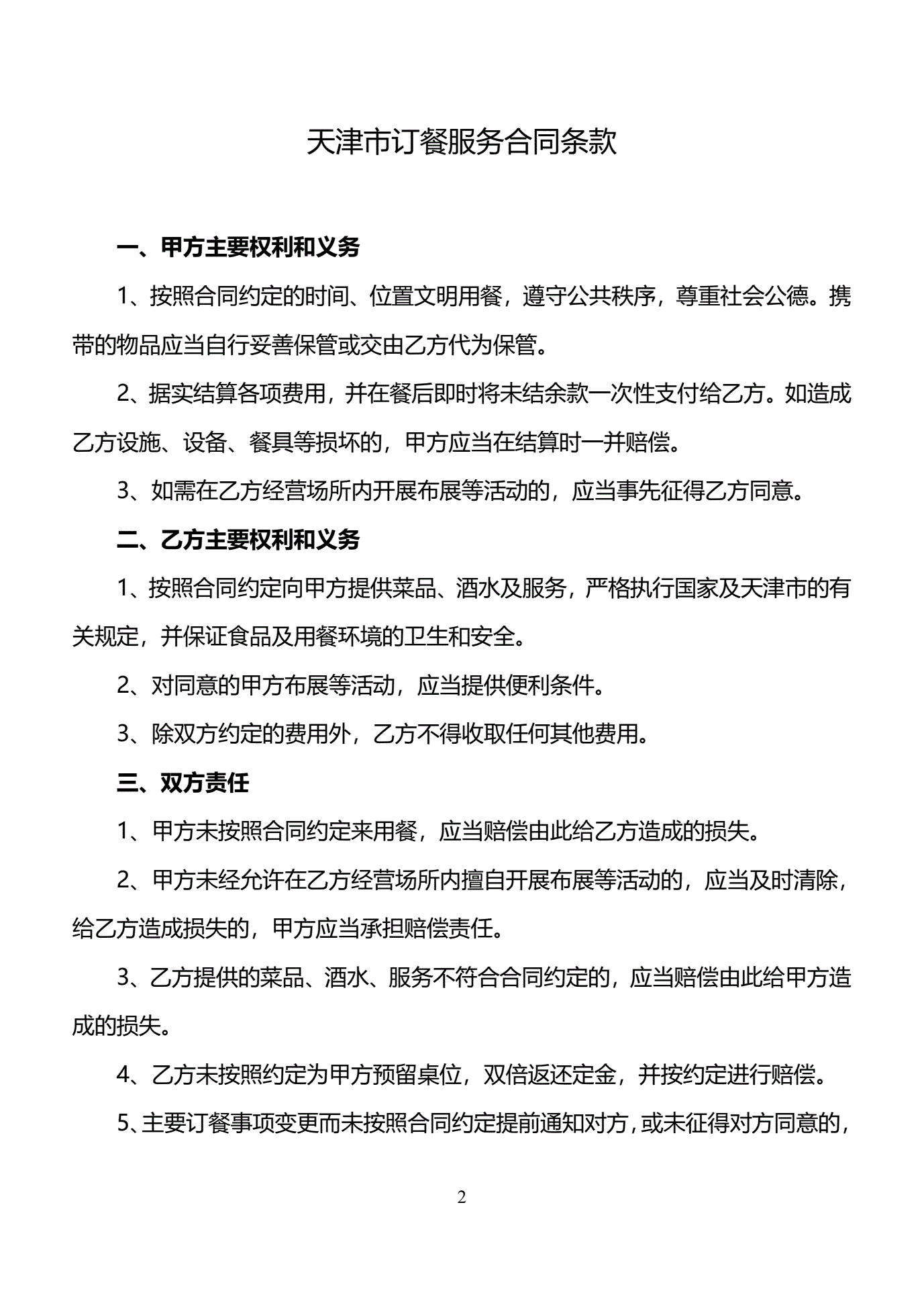 >天津市订餐服务合同