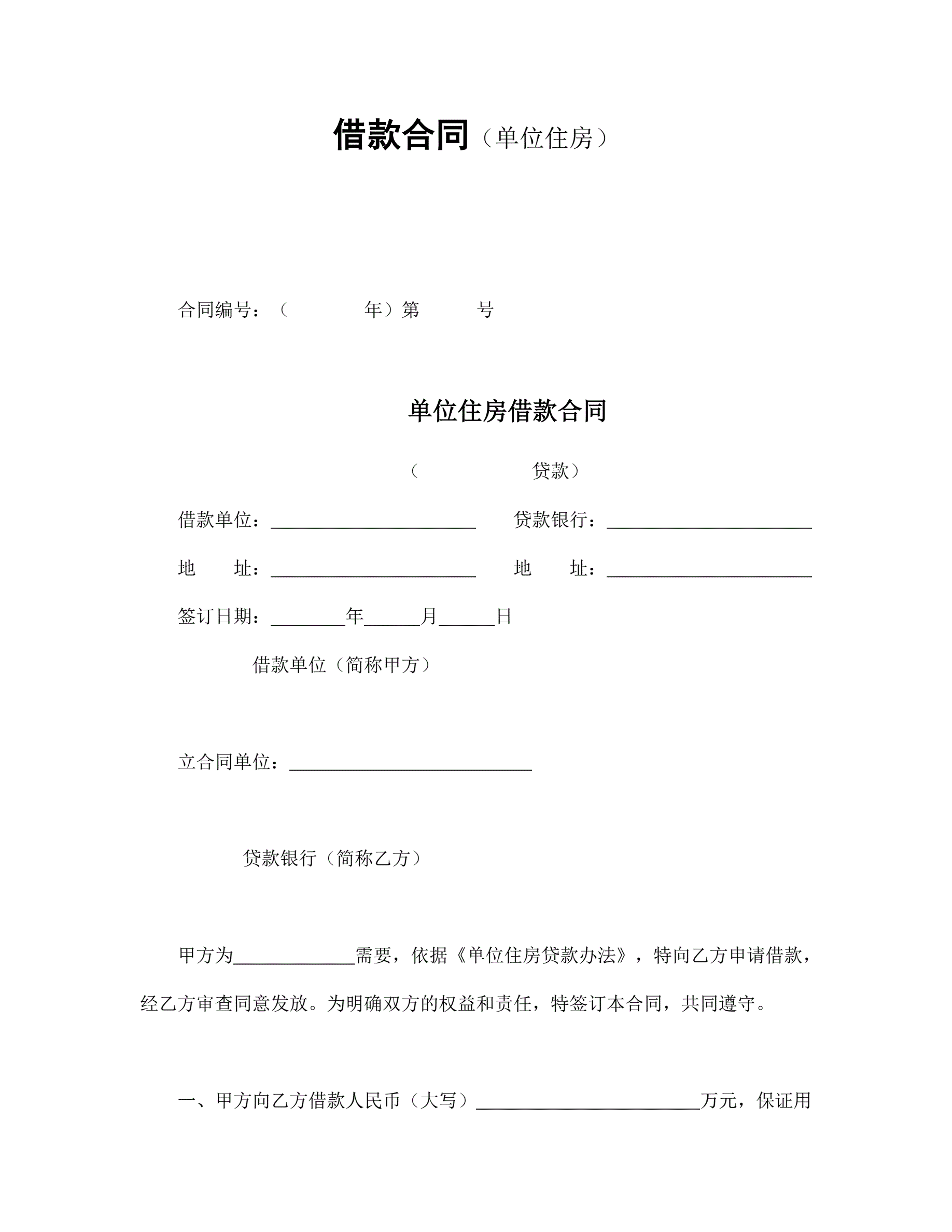 >借款合同(单位住房)