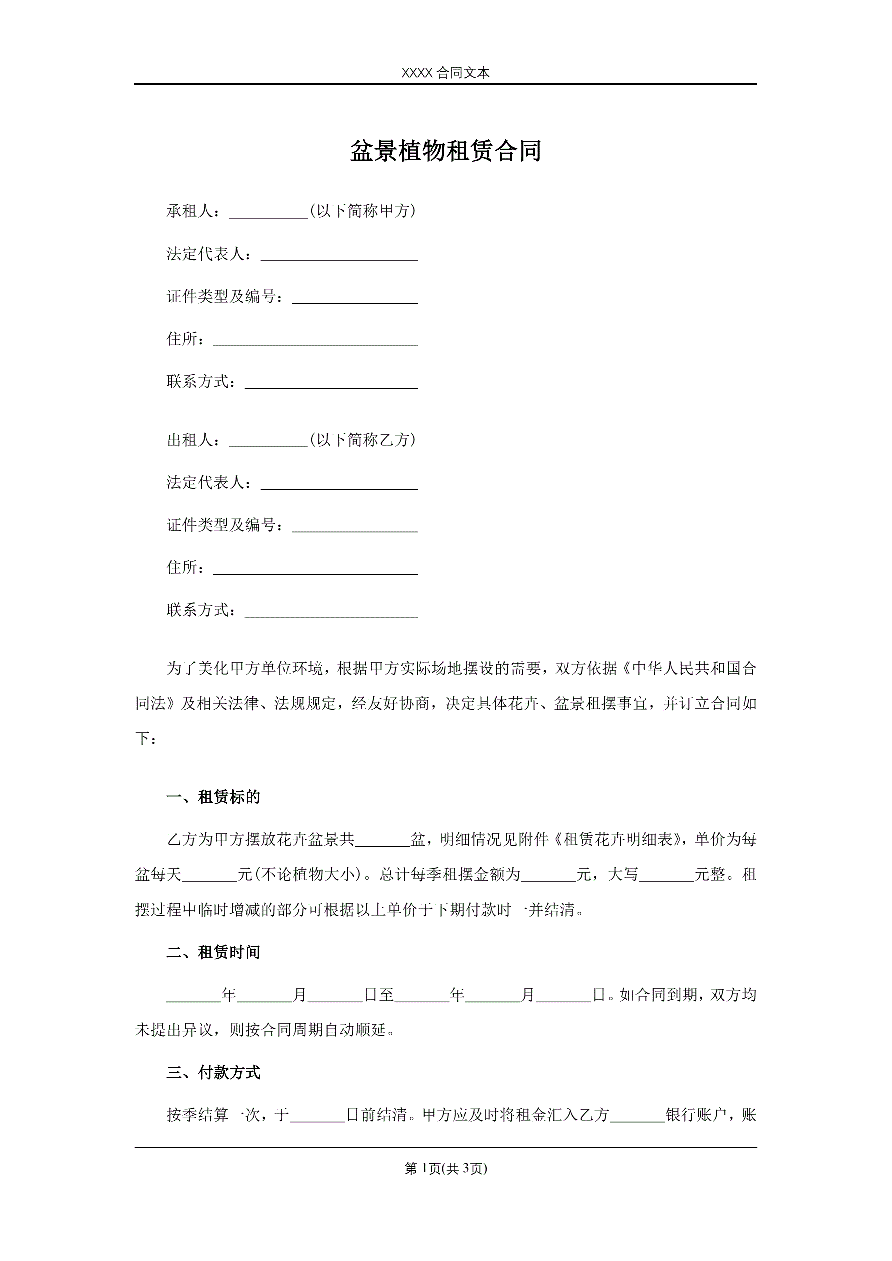 合同名称:盆景植物租赁合同