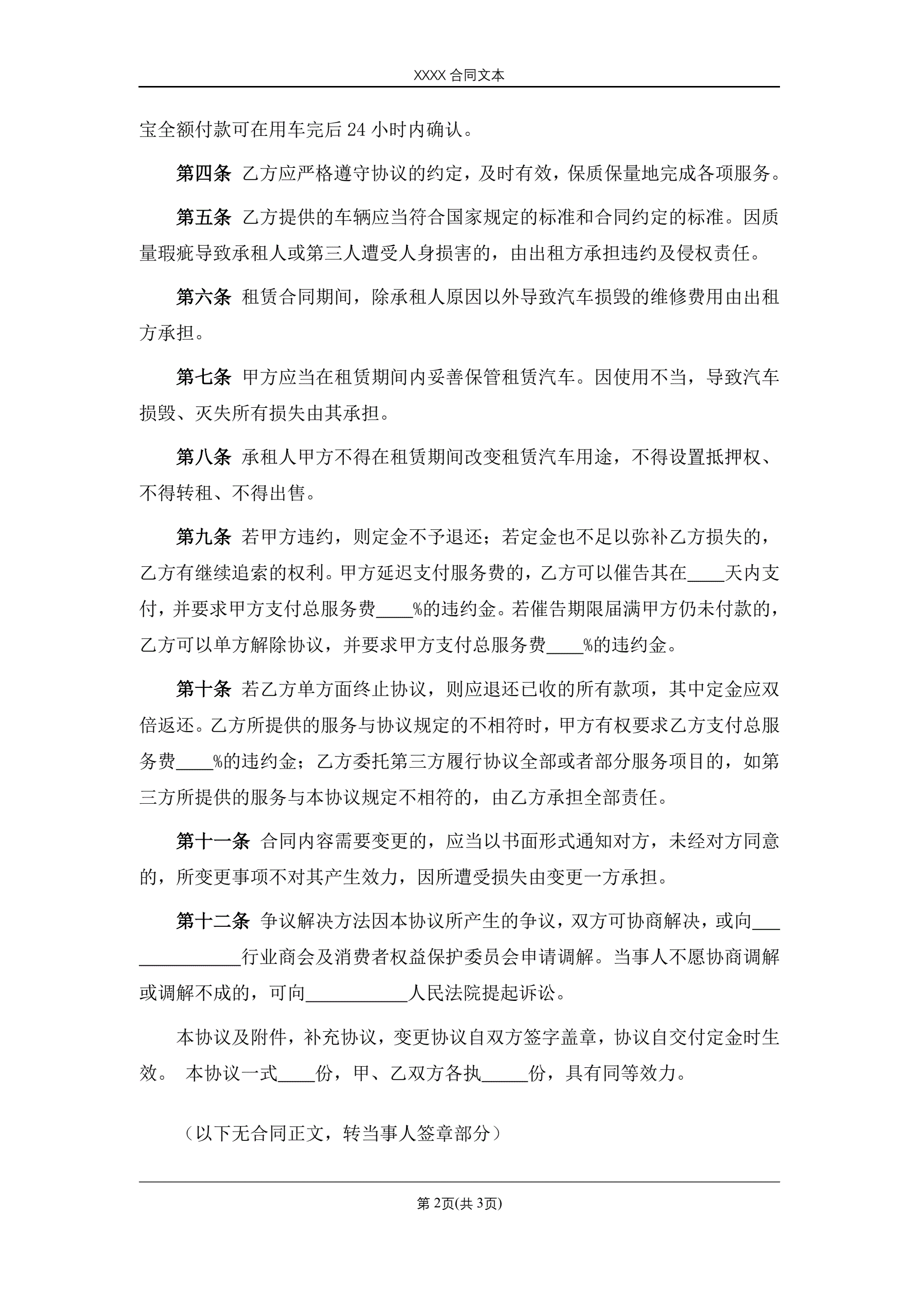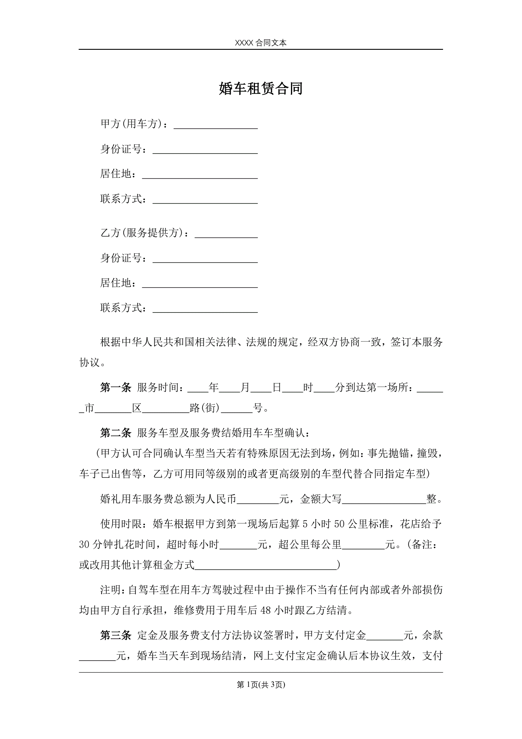 婚车租赁合同