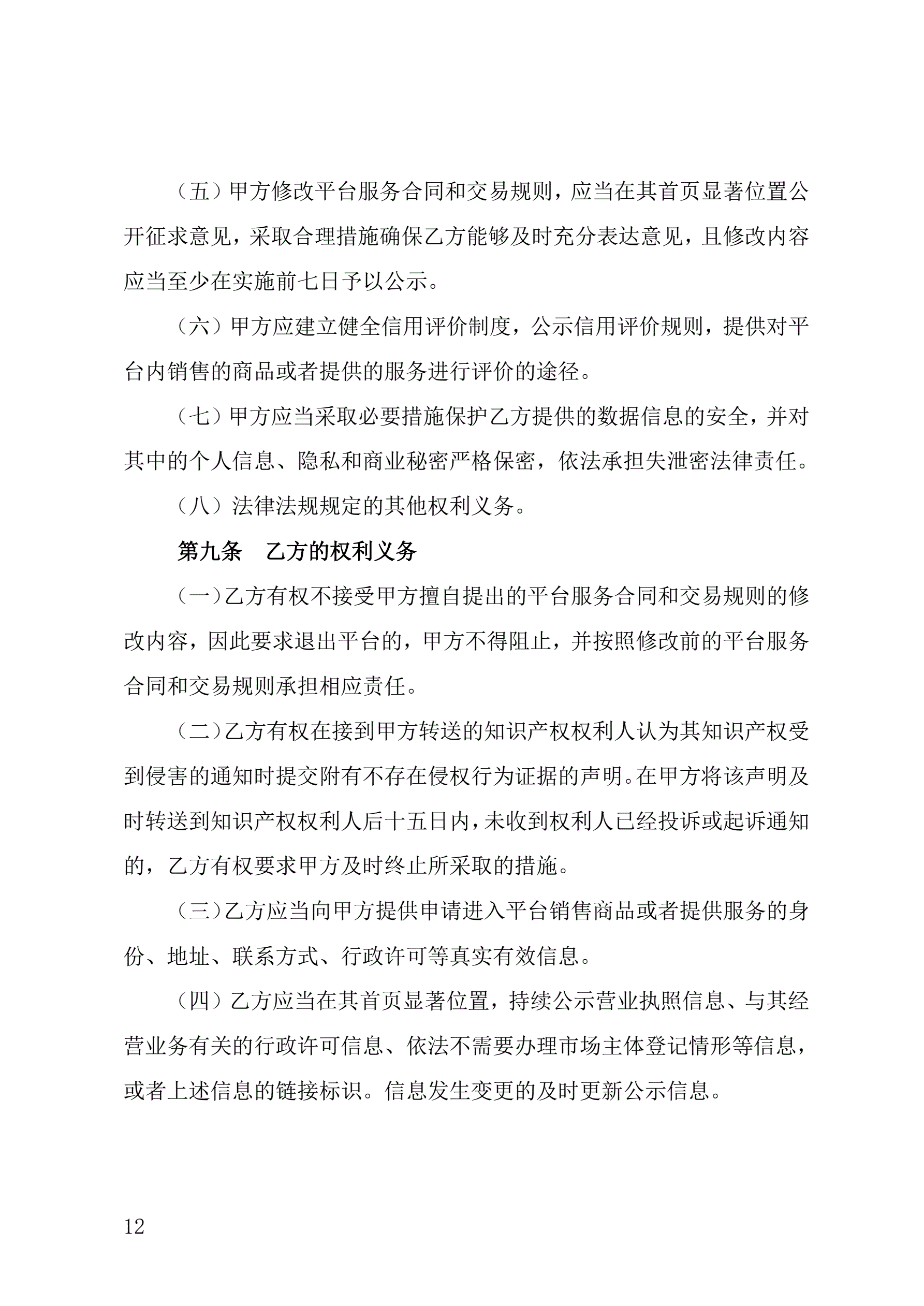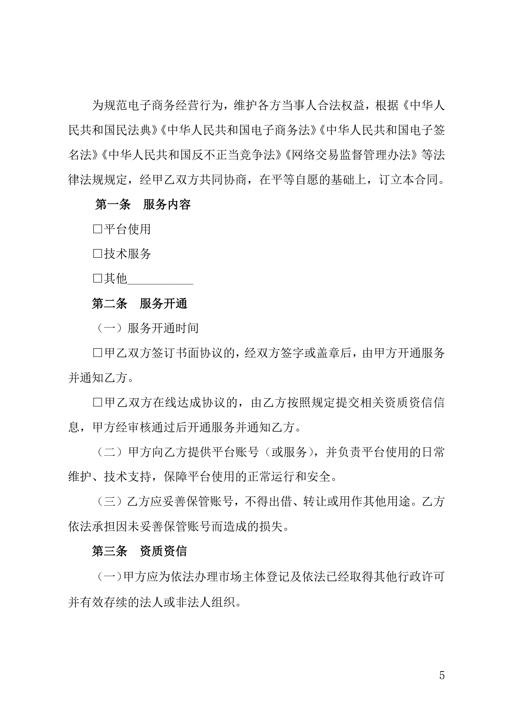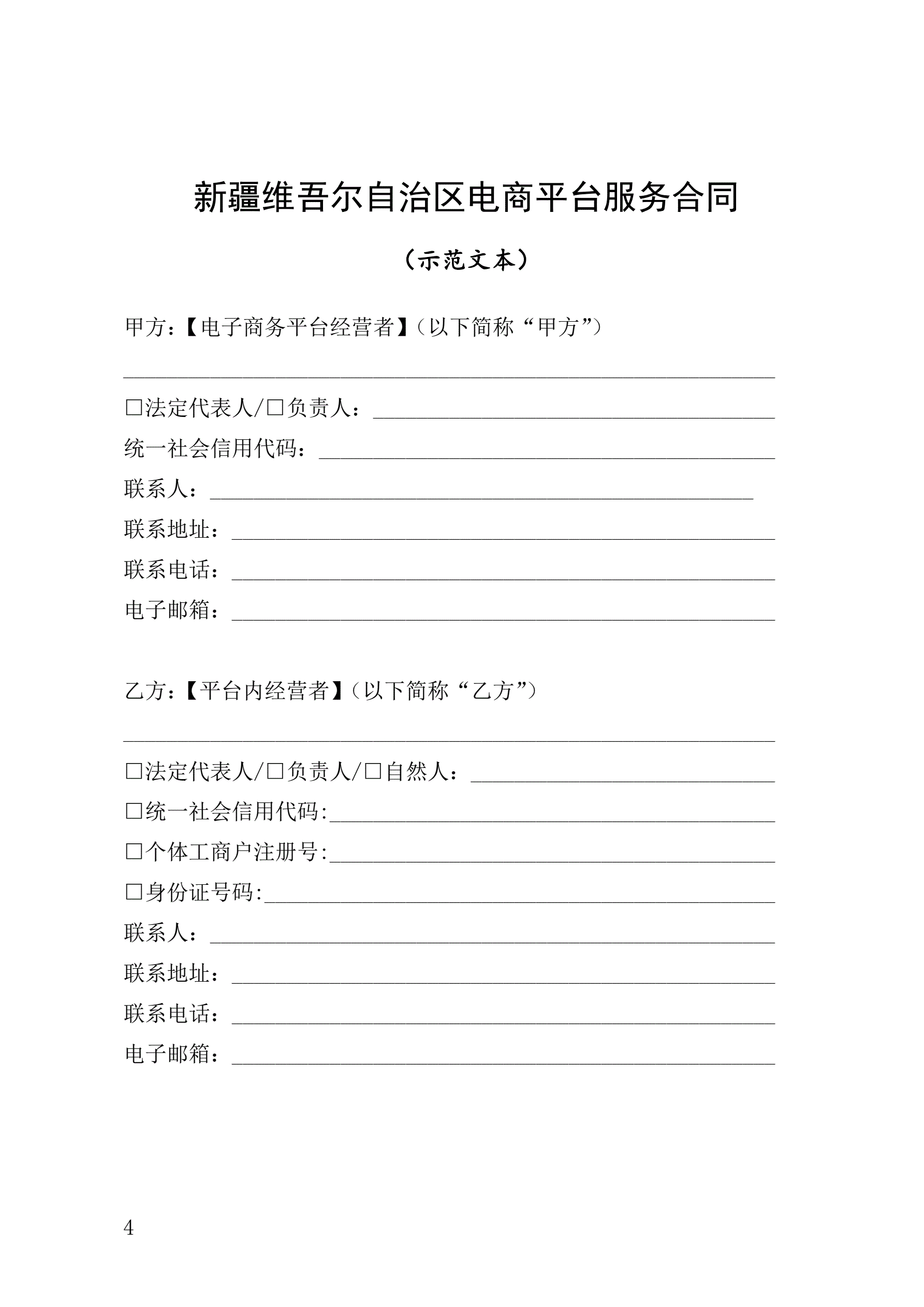 >新疆维吾尔自治区电商平台服务合同示范文本(原稿)-修订