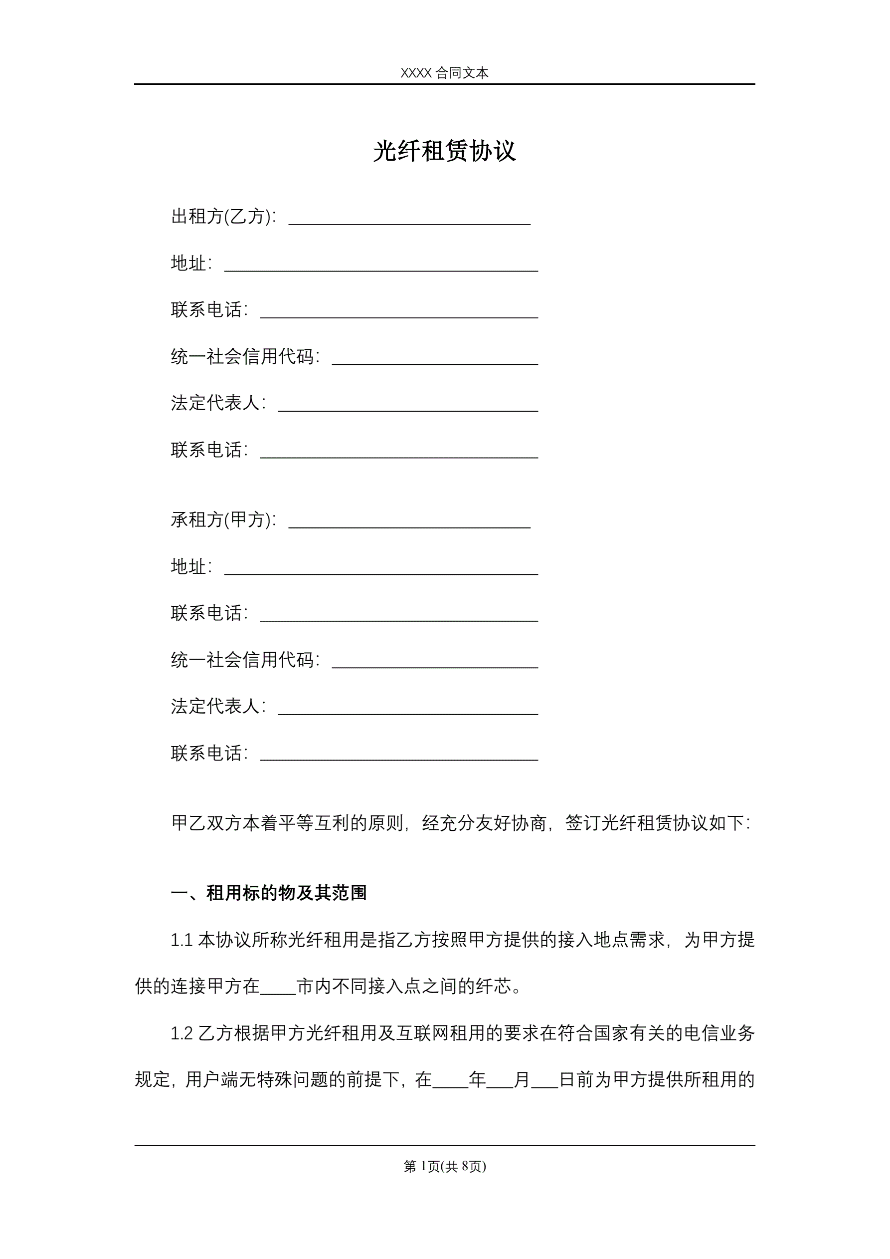 光纤租赁协议