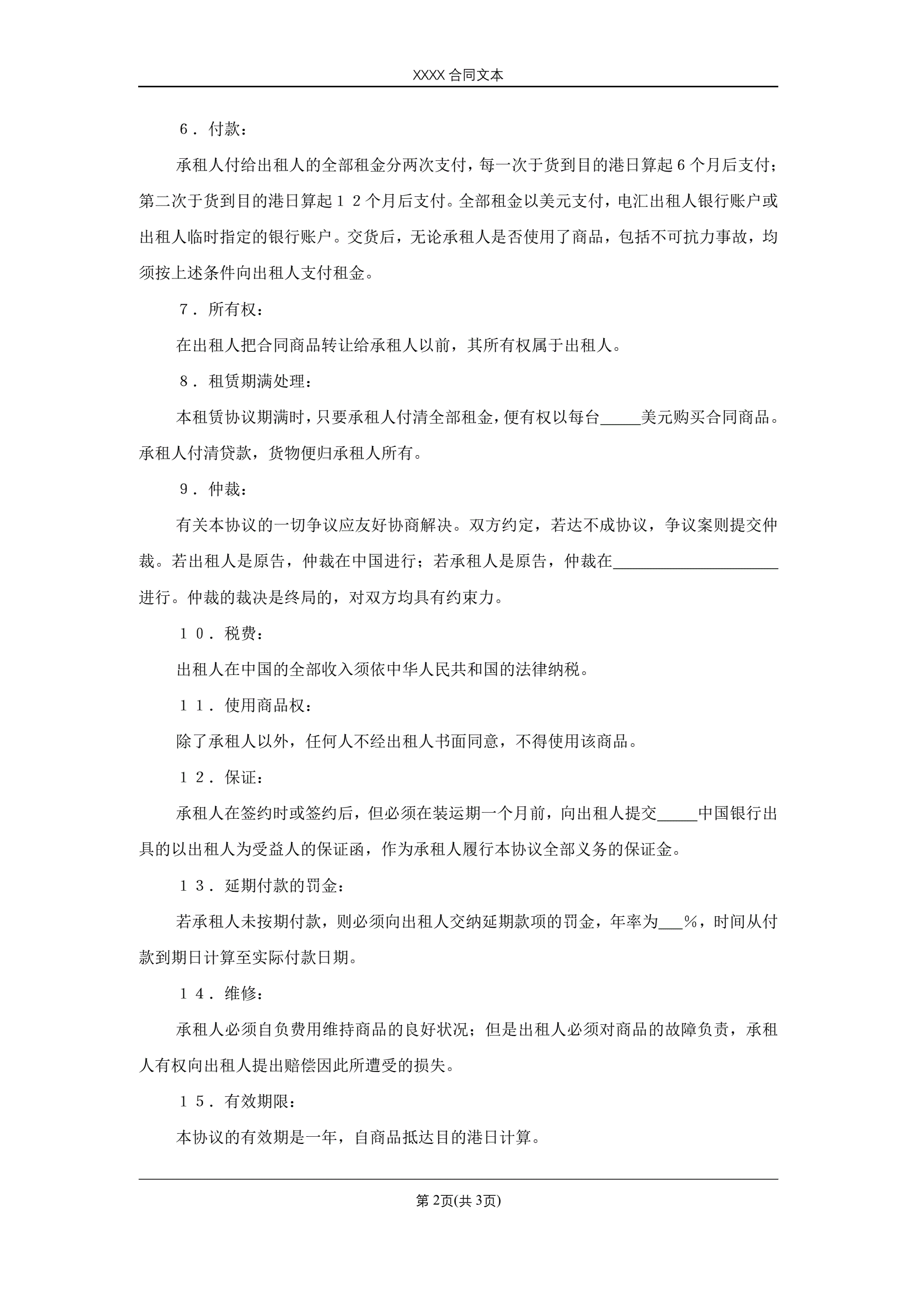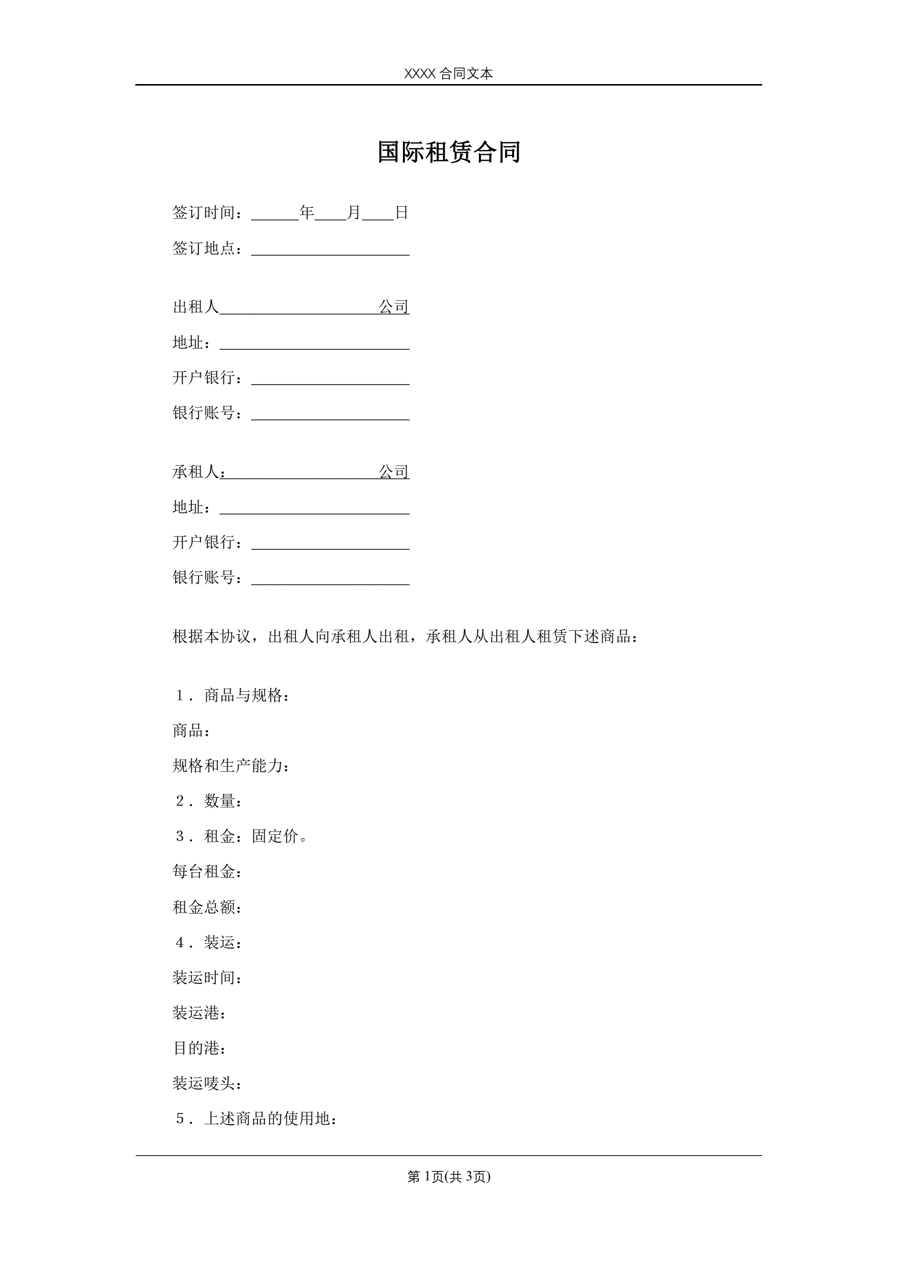 >国际租赁合同