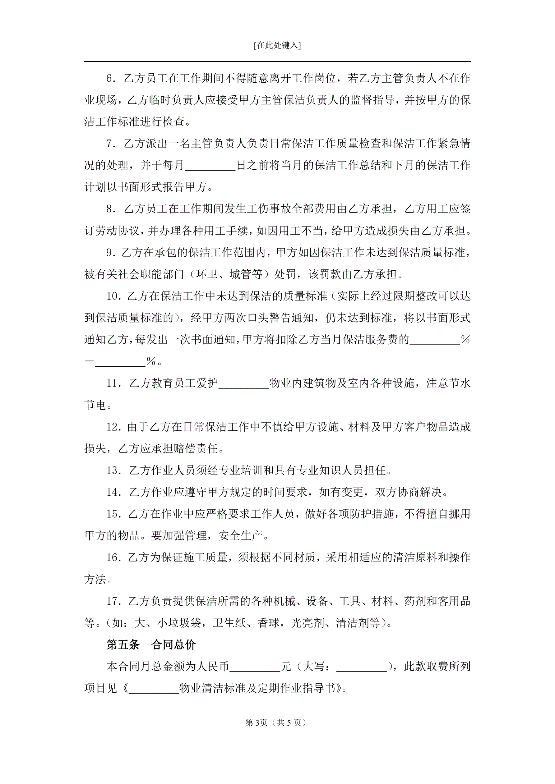 >清洁服务合同