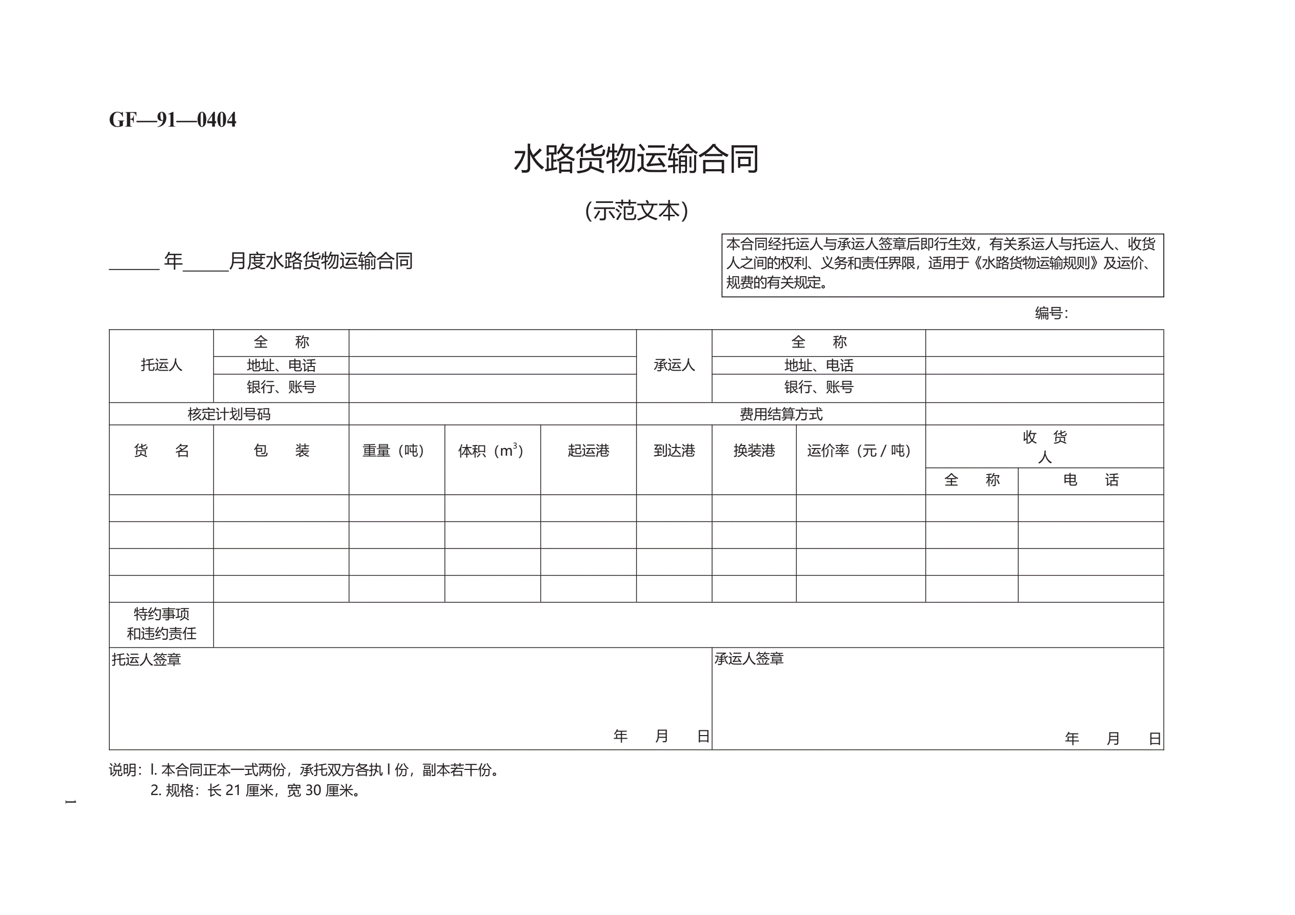 >水路货物运输合同 GF—91—0404