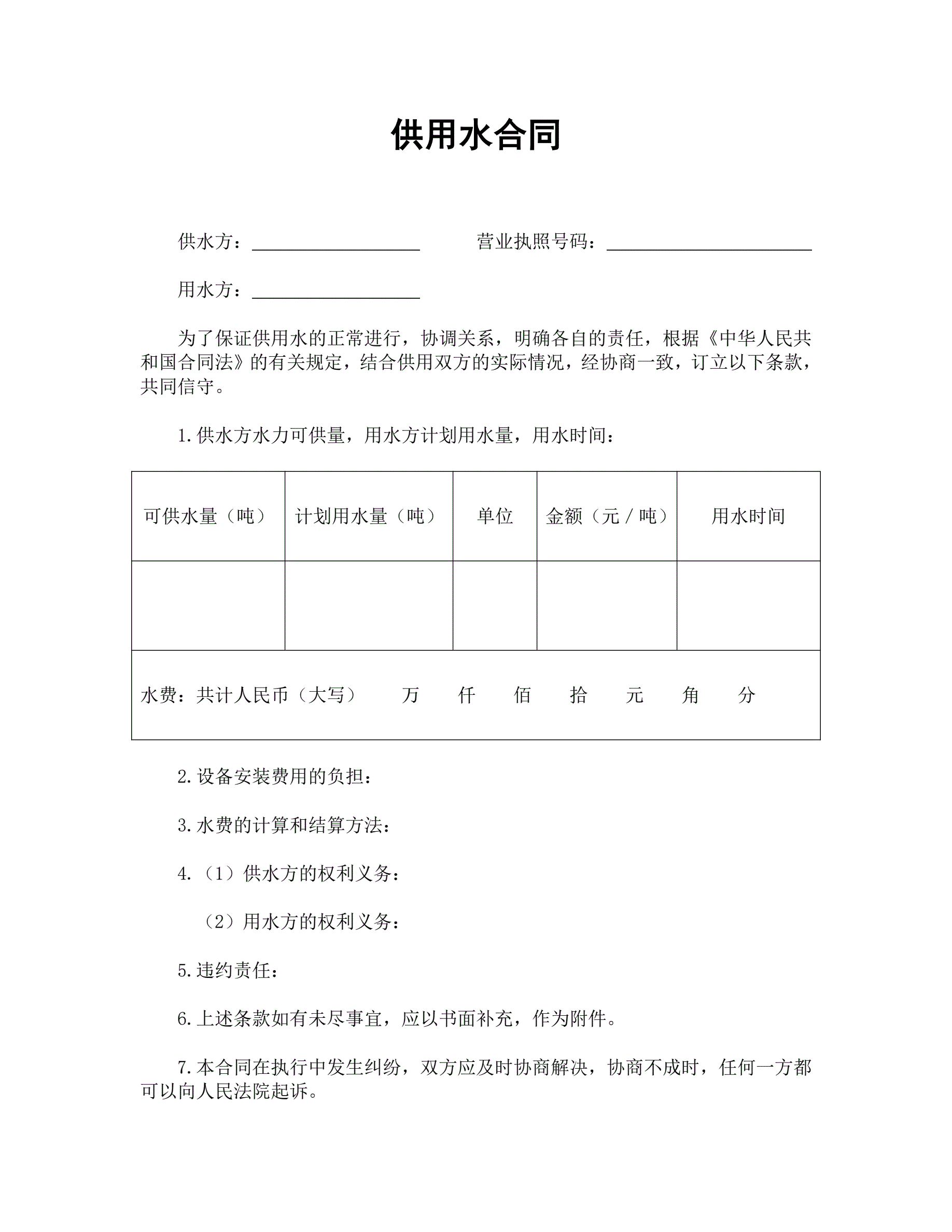 供用水合同