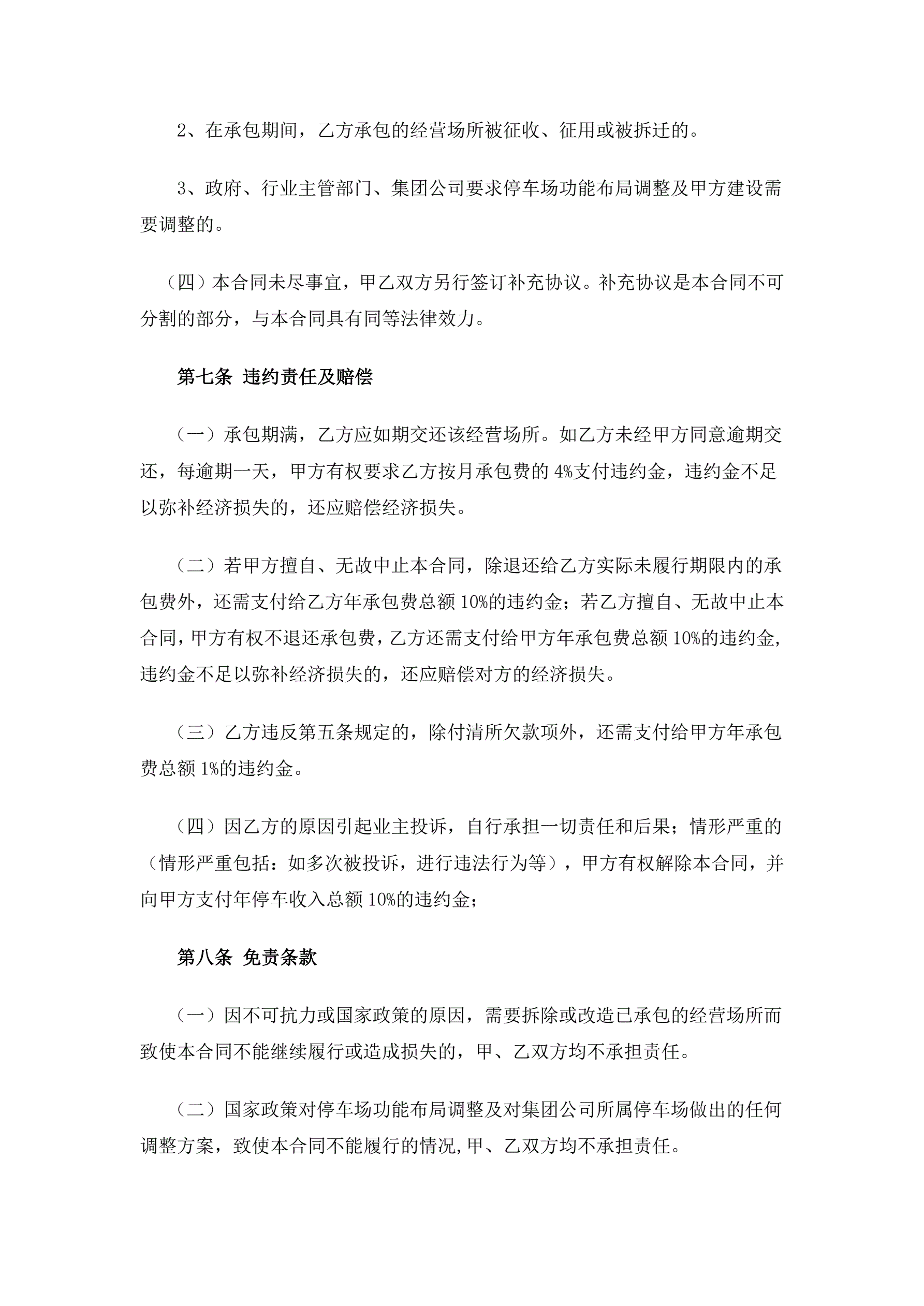 >停车场管理承包协议