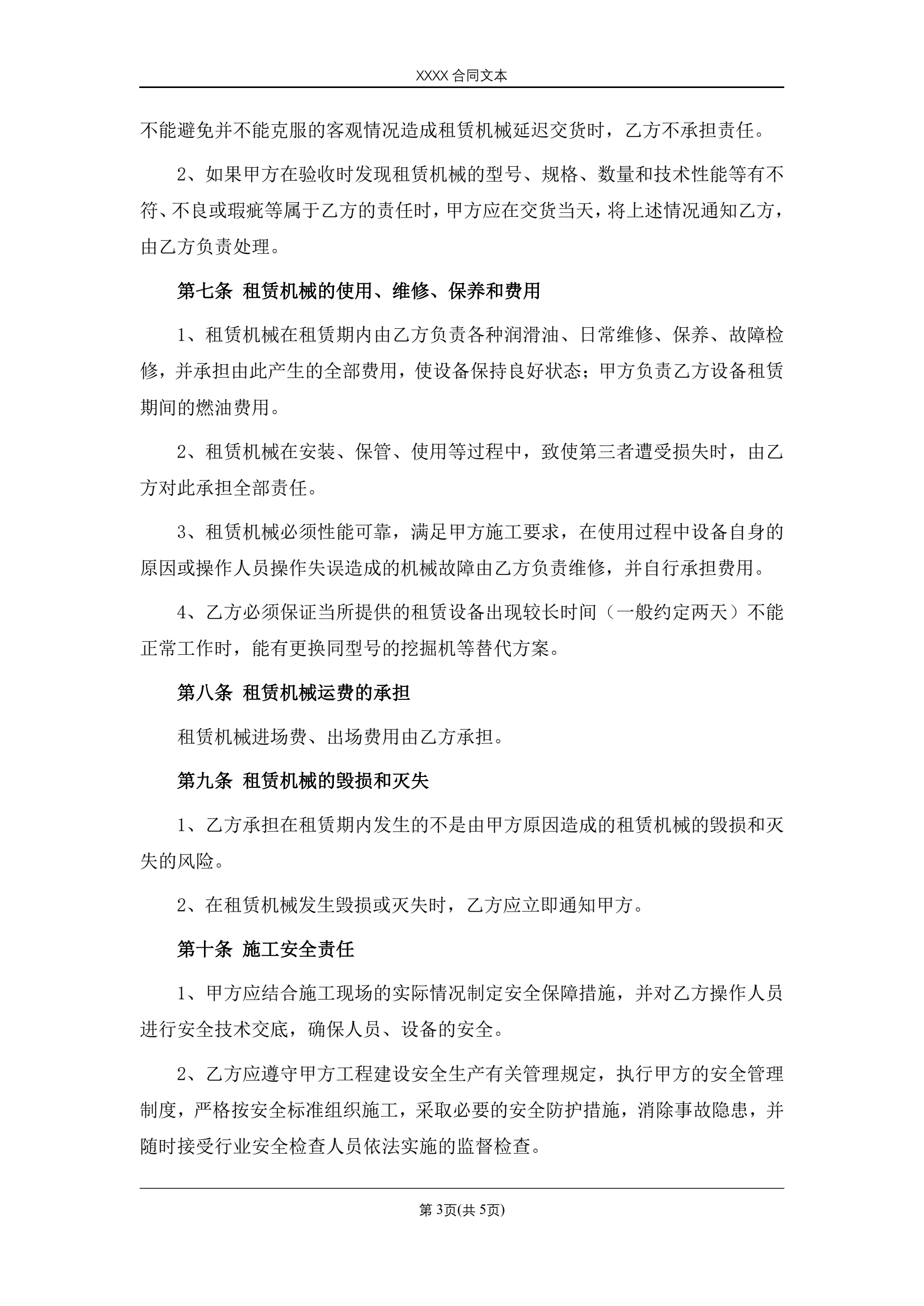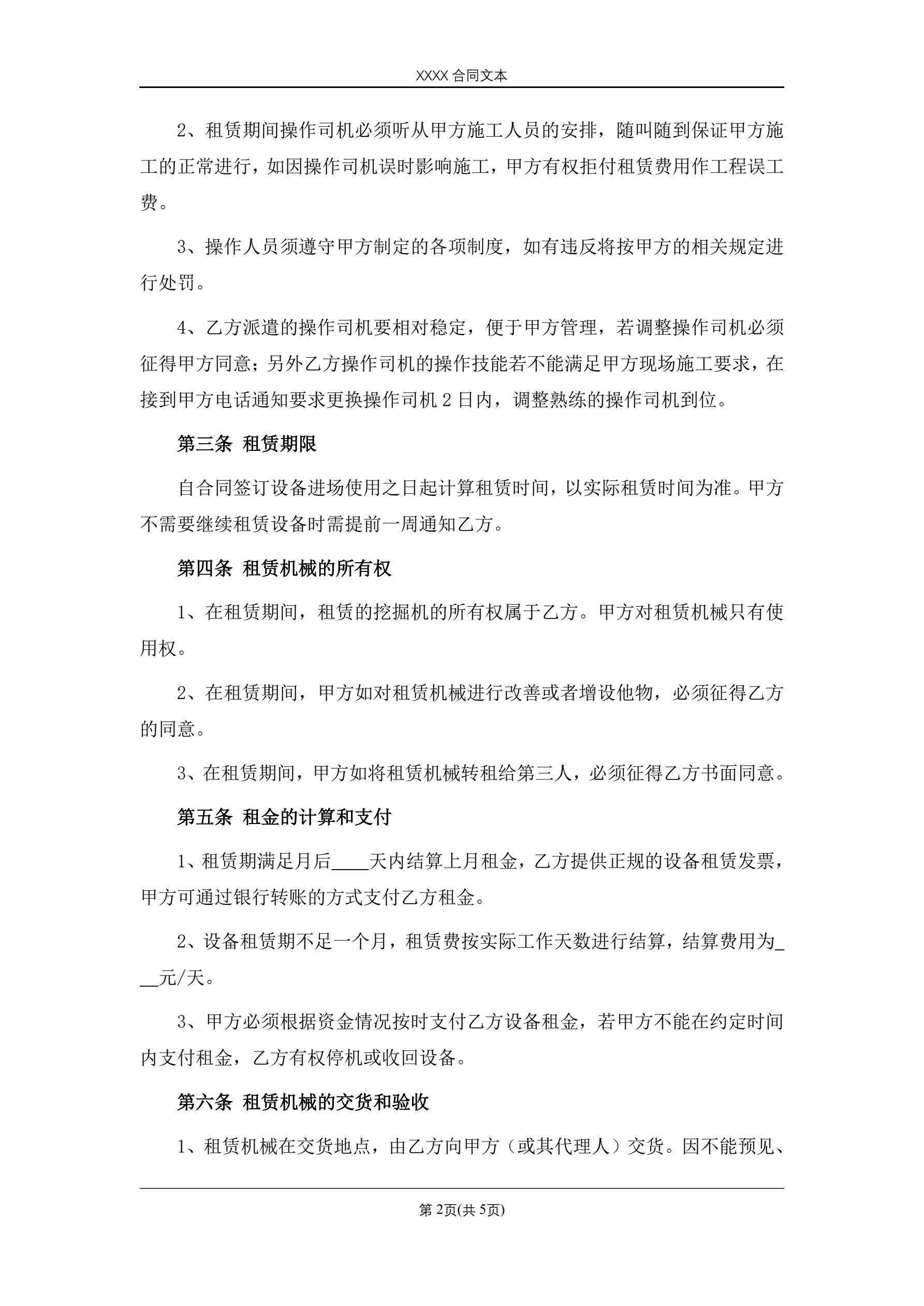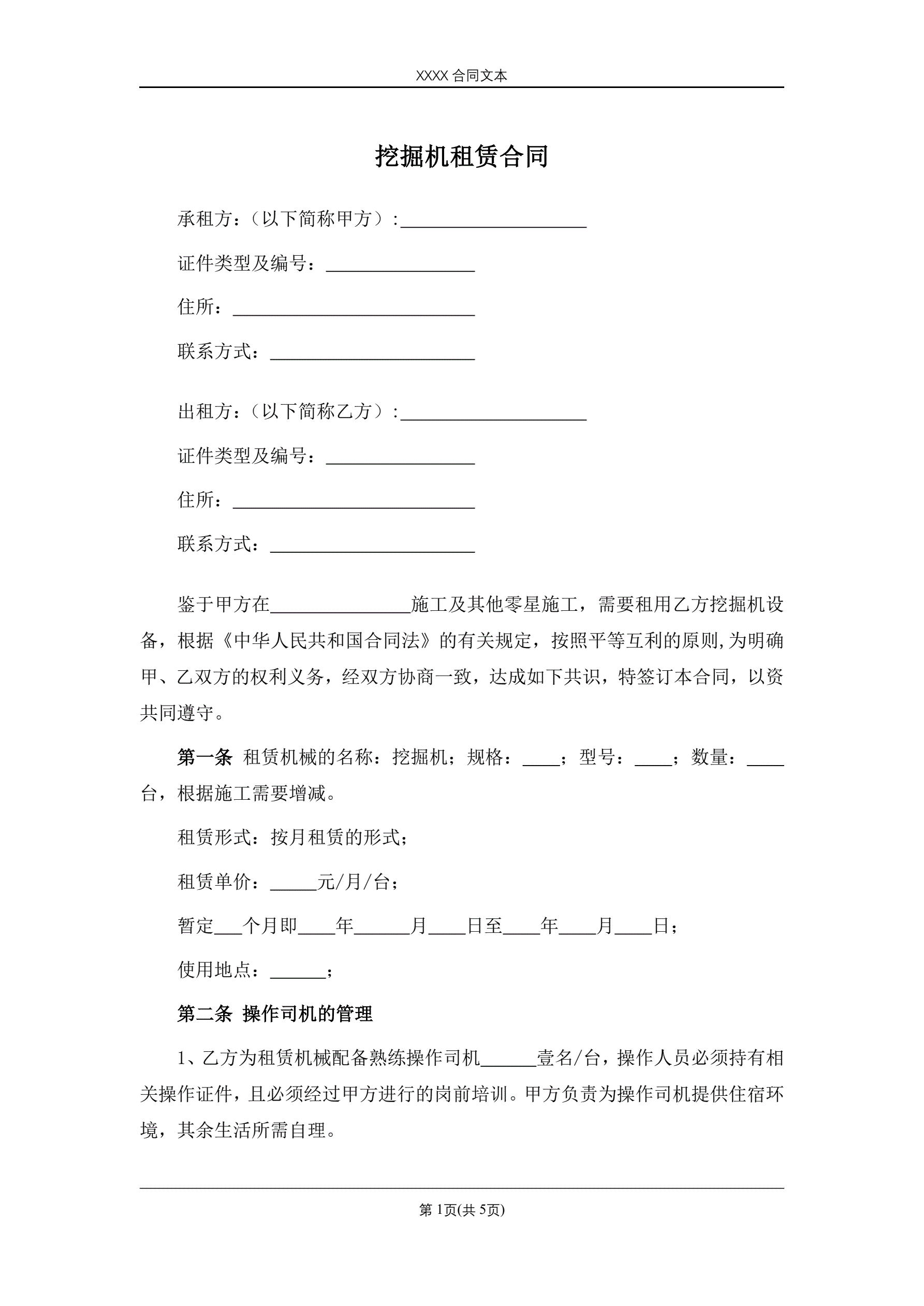 挖掘机租赁合同
