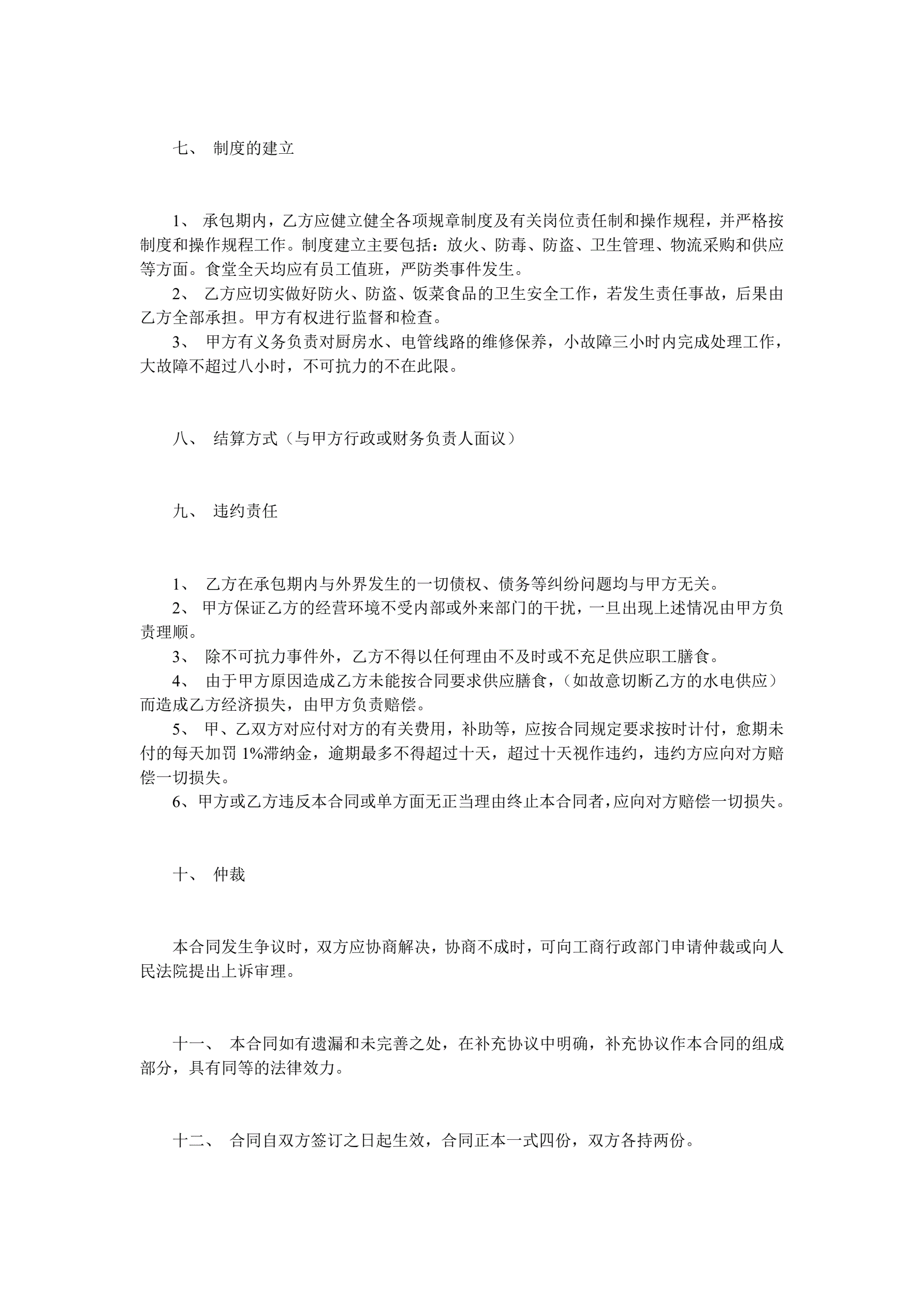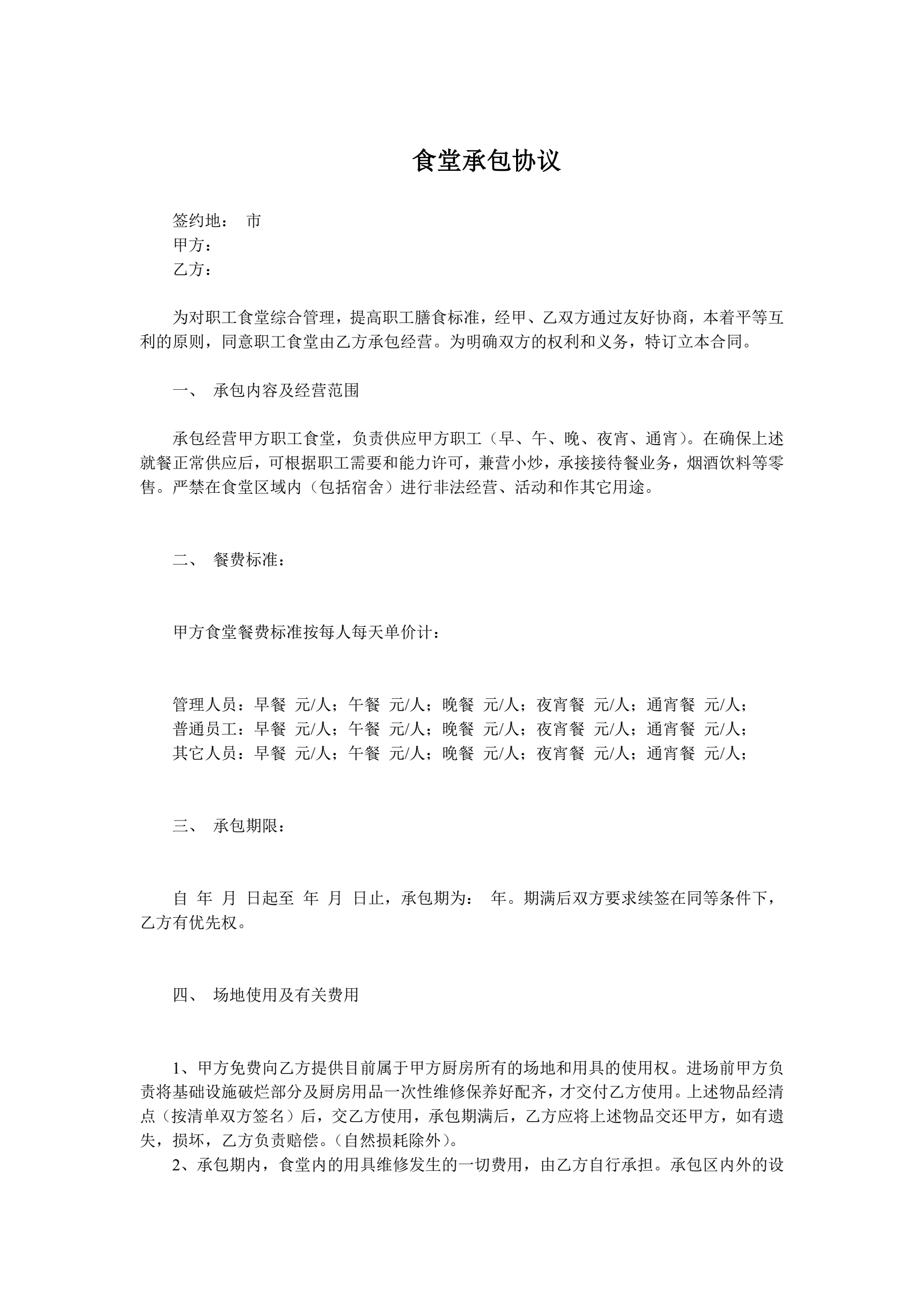 食堂承包协议