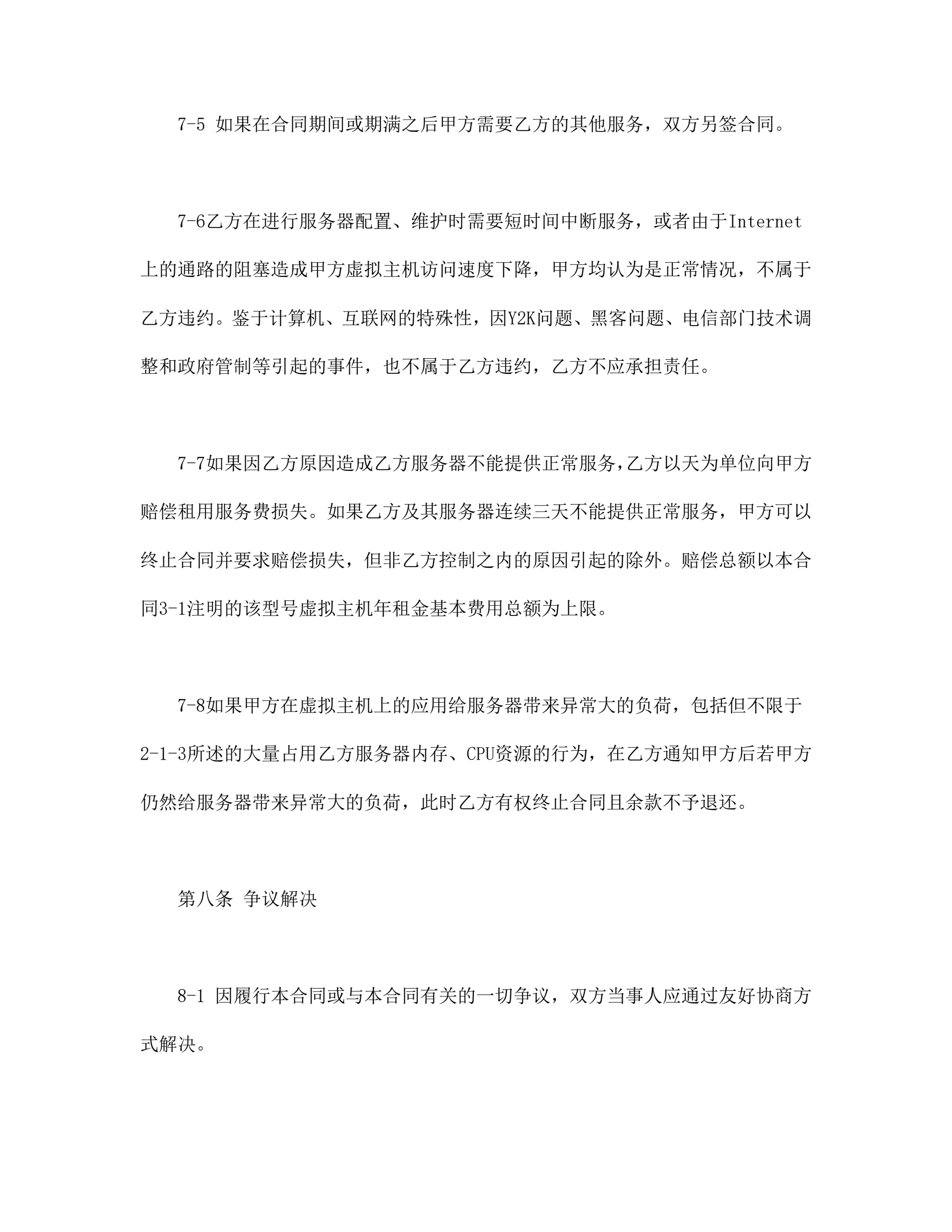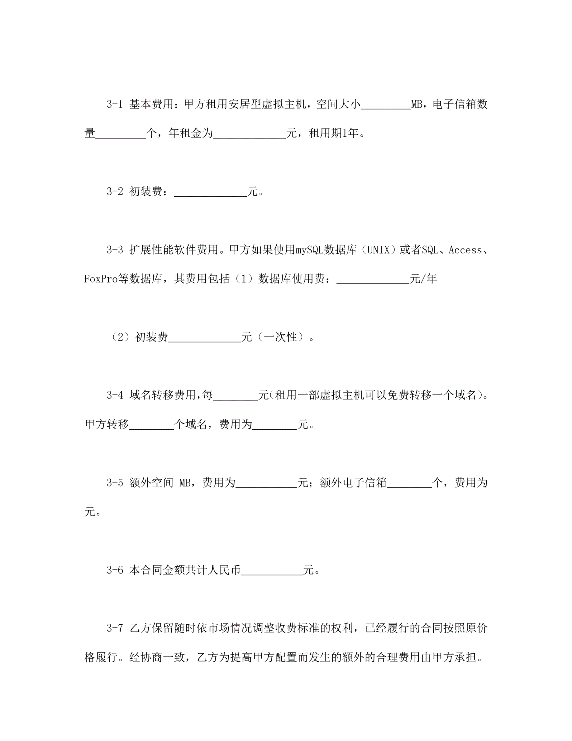 虚拟主机租用合同