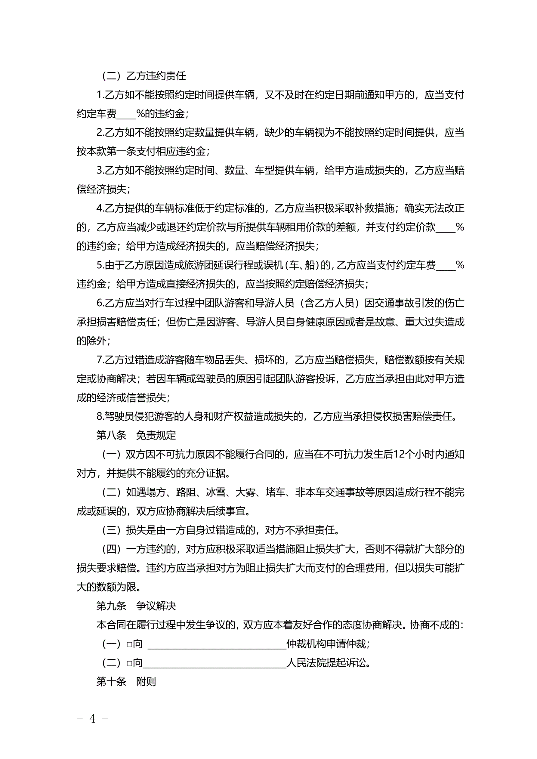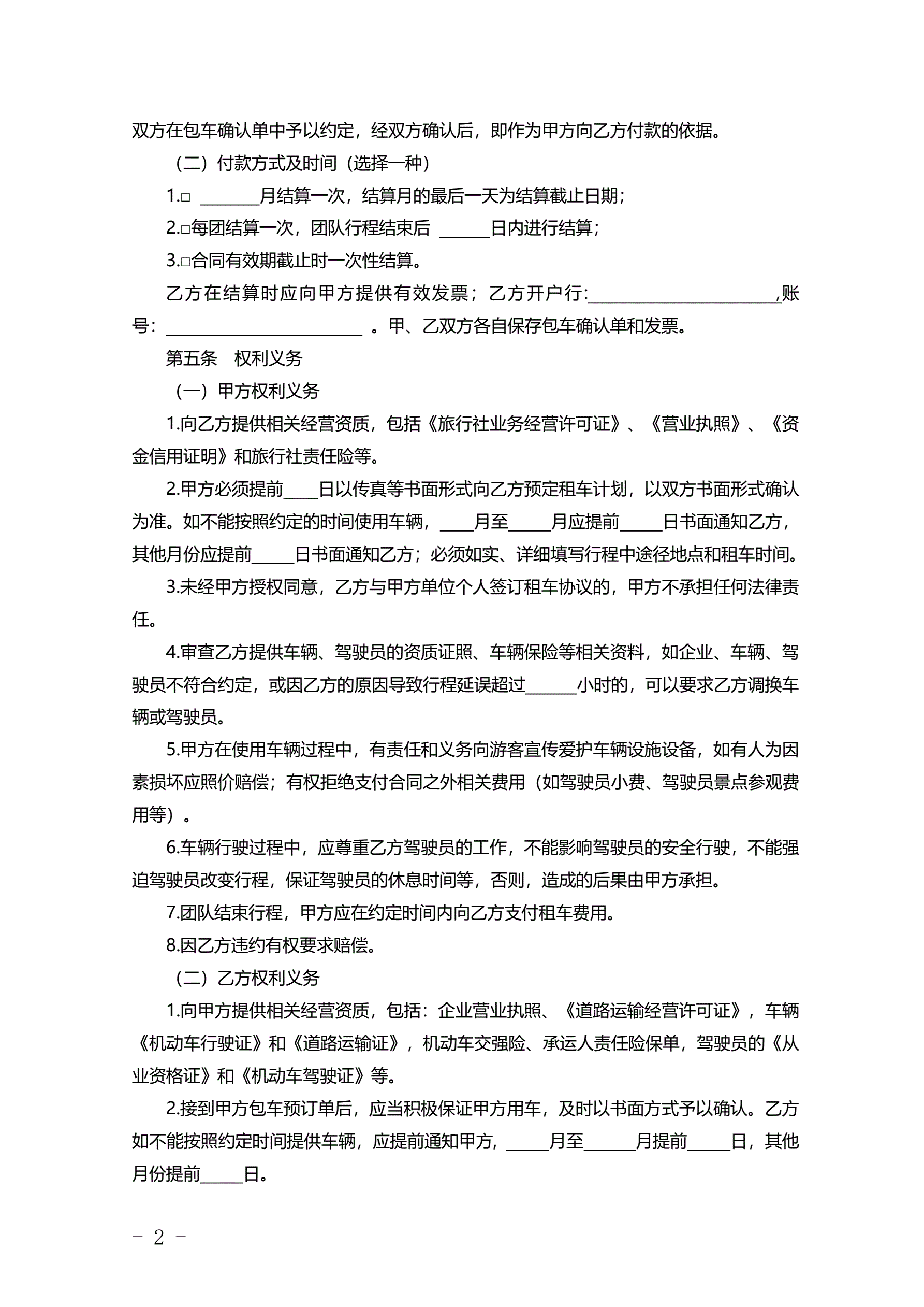 >辽宁省旅游包车客运合同