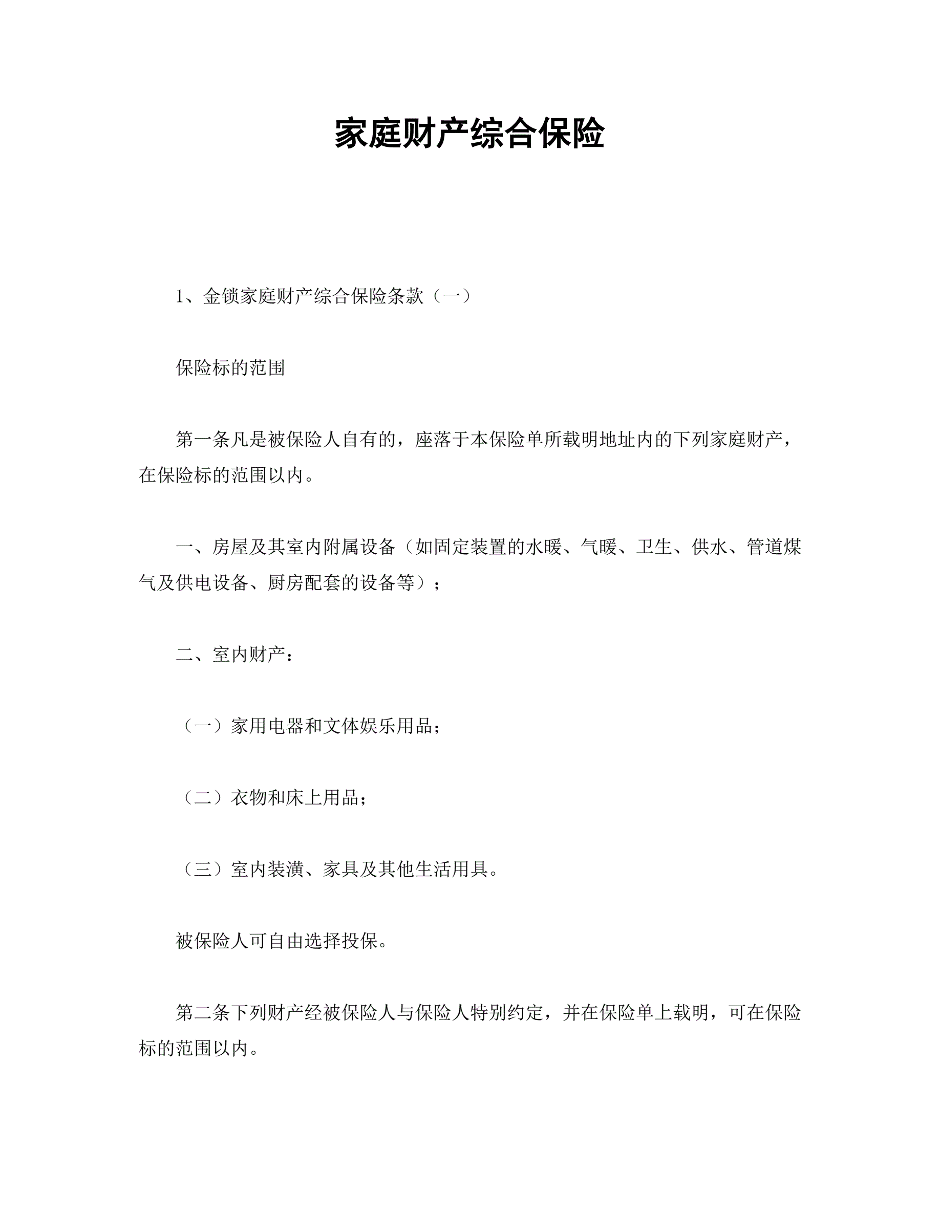 >家庭财产综合保险