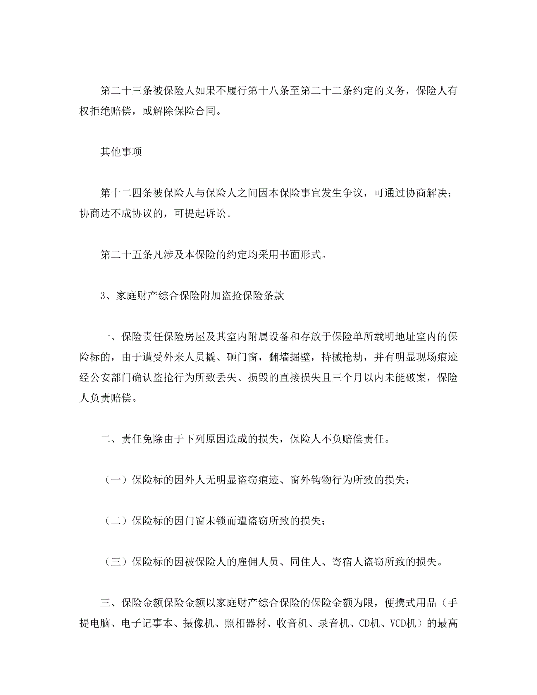 家庭财产综合保险