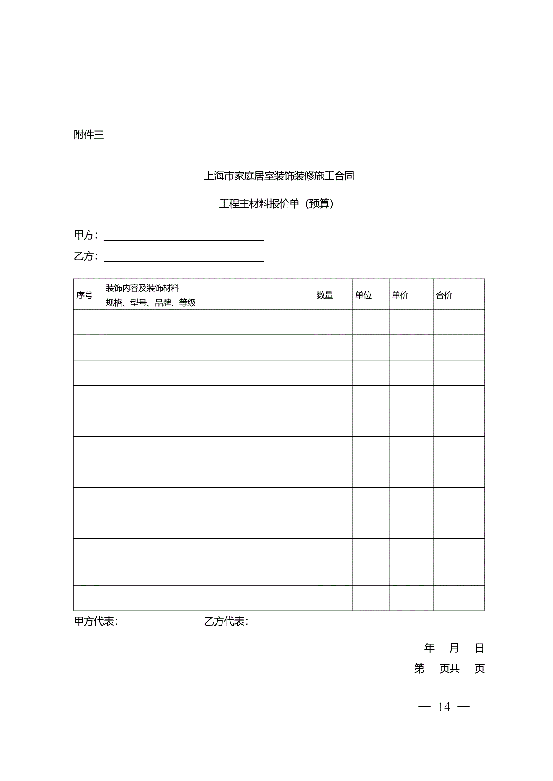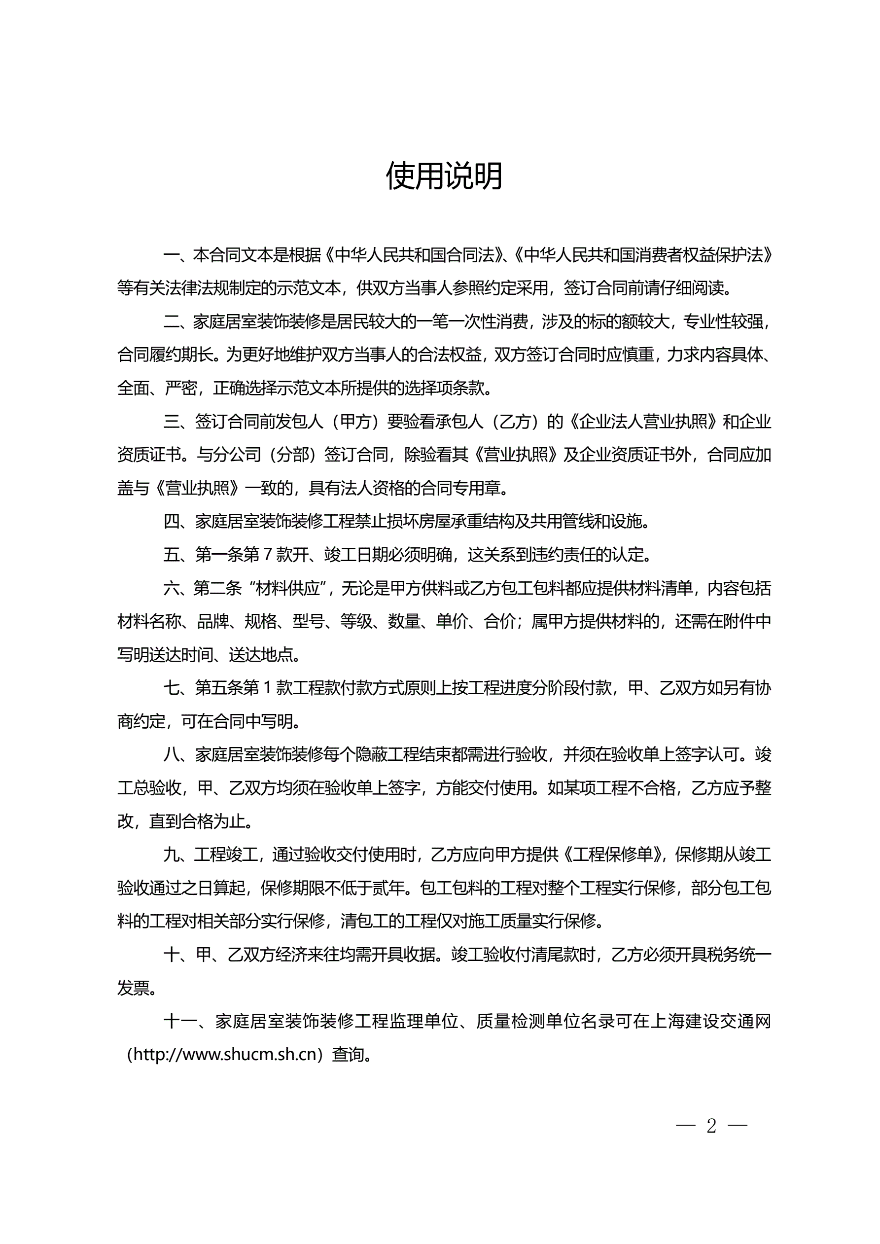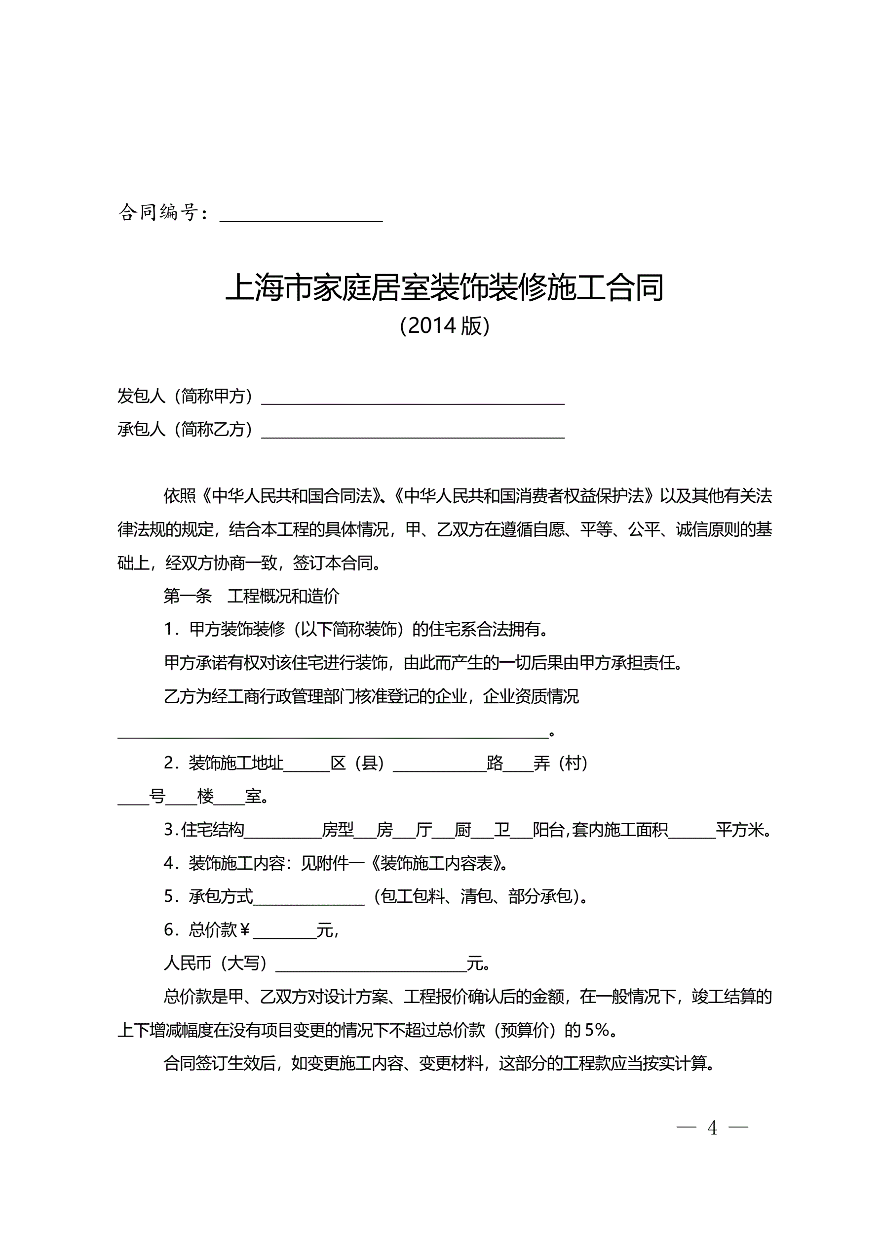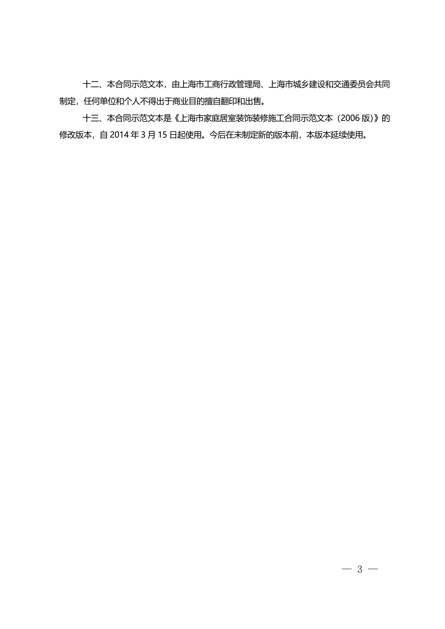 上海市家庭居室装饰装修施工合同示范文本(2014版)