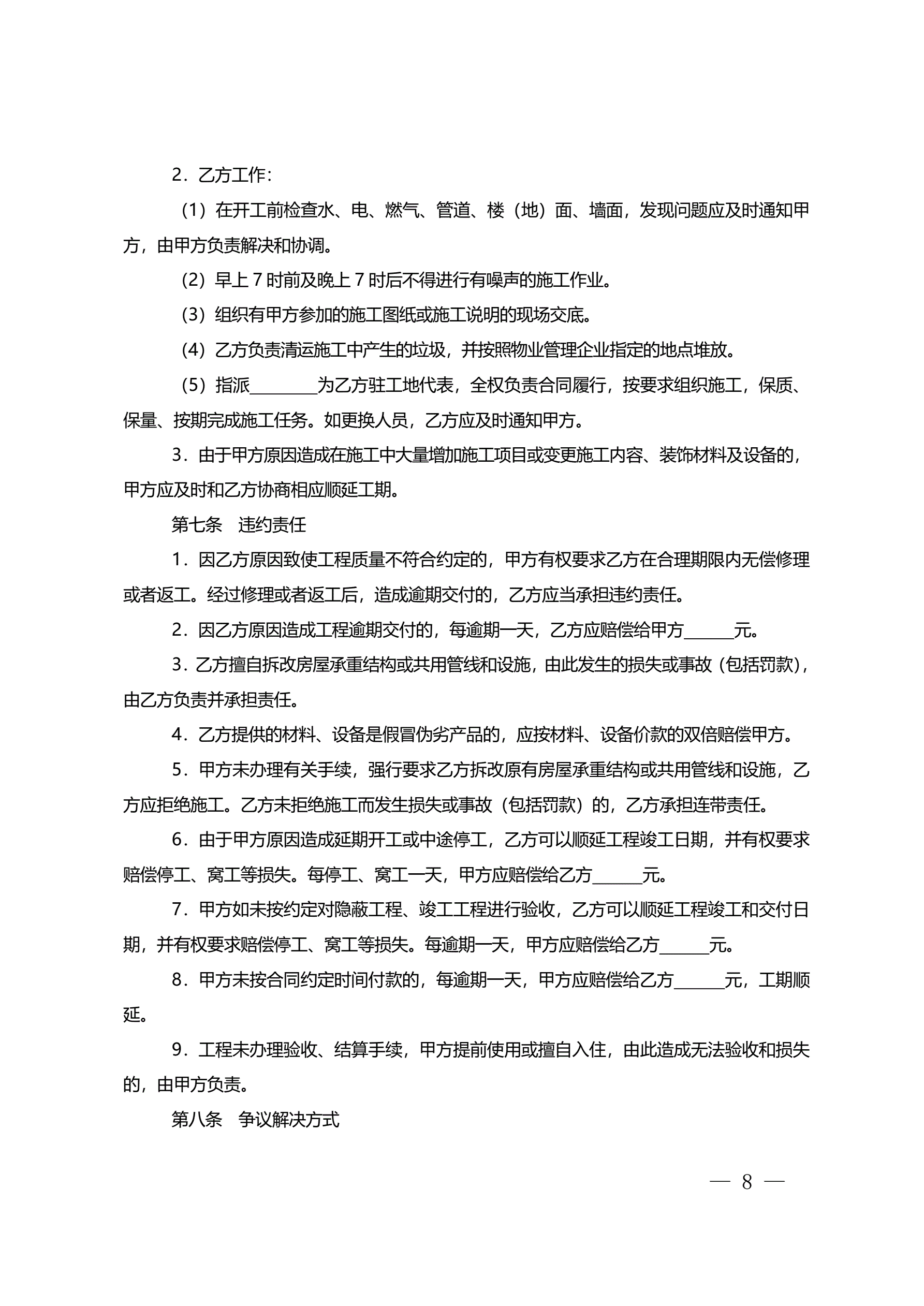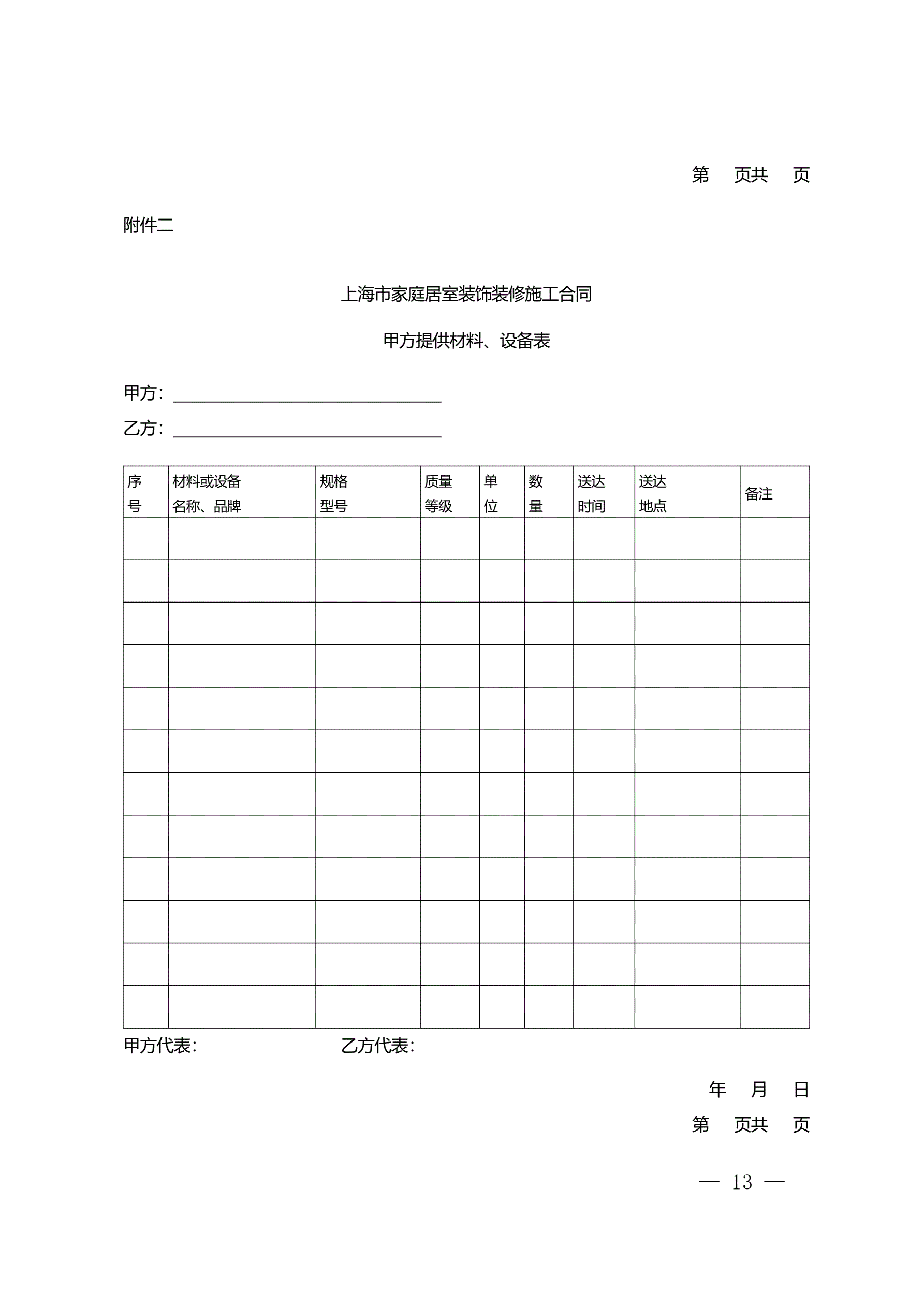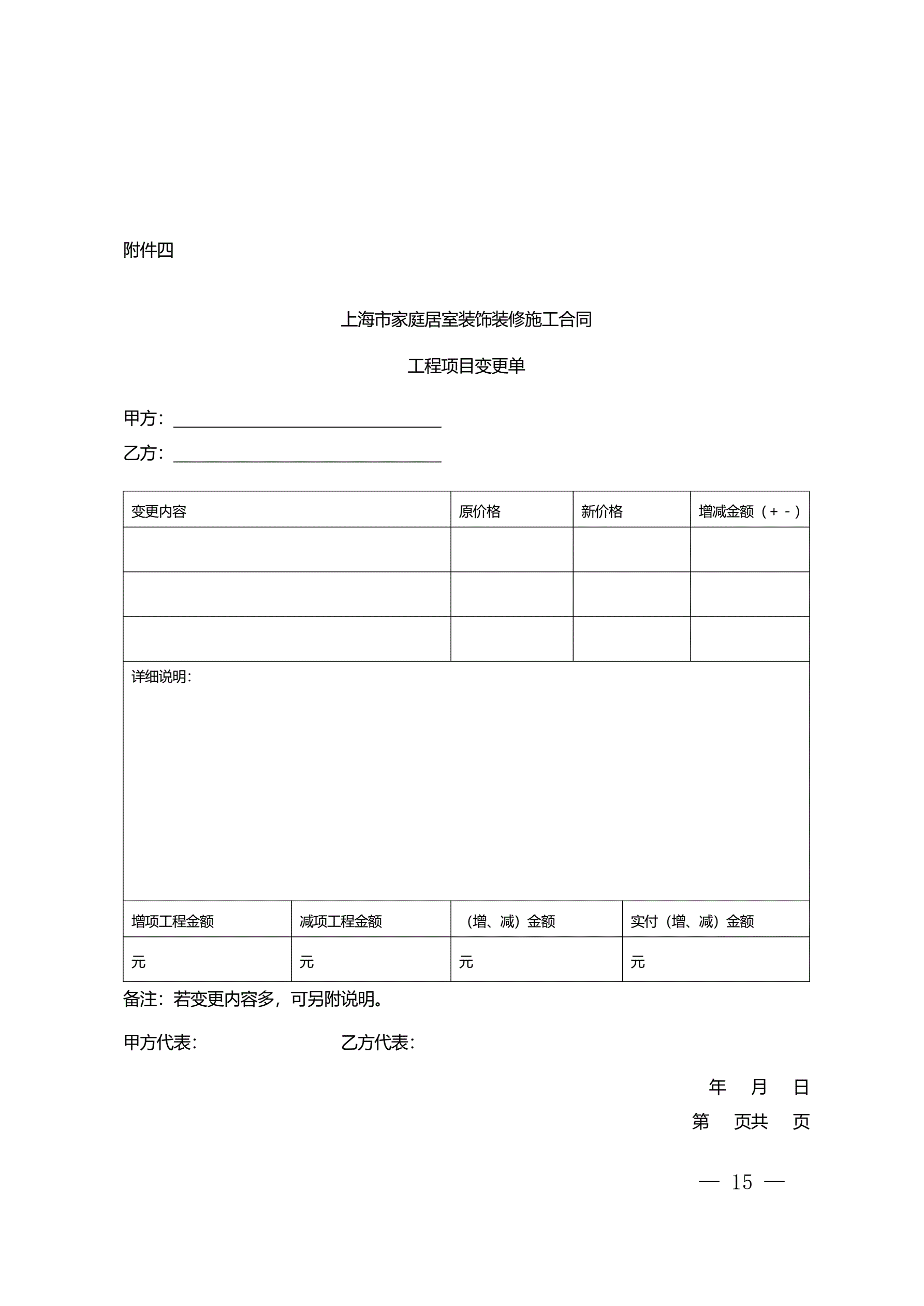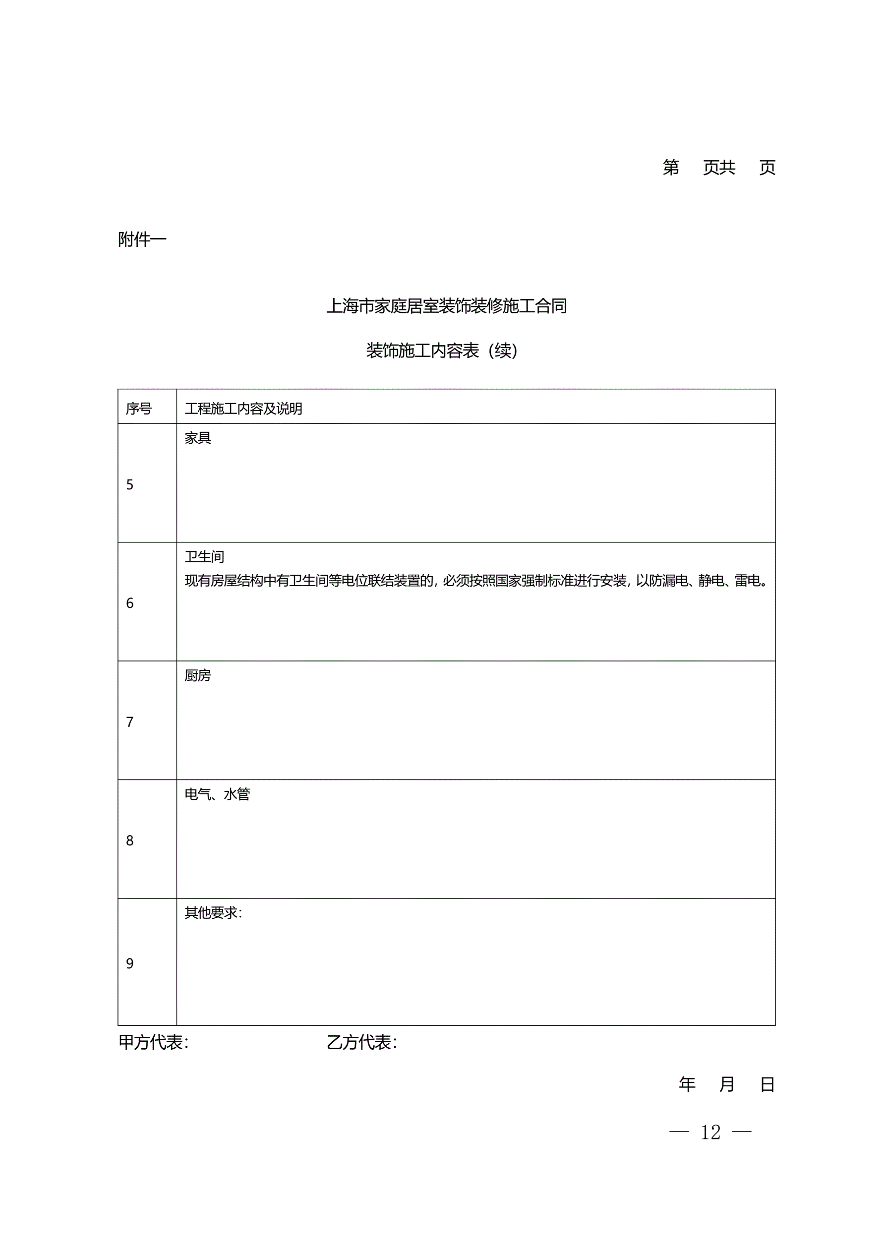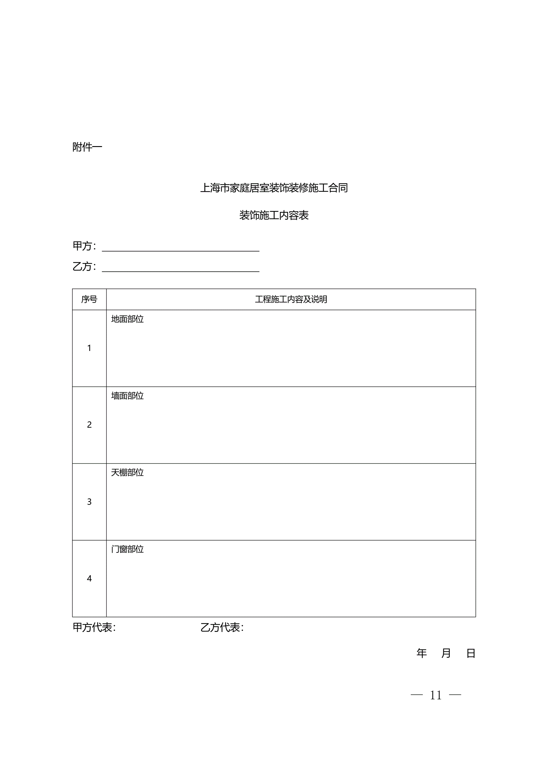 上海市家庭居室装饰装修施工合同示范文本(2014版)