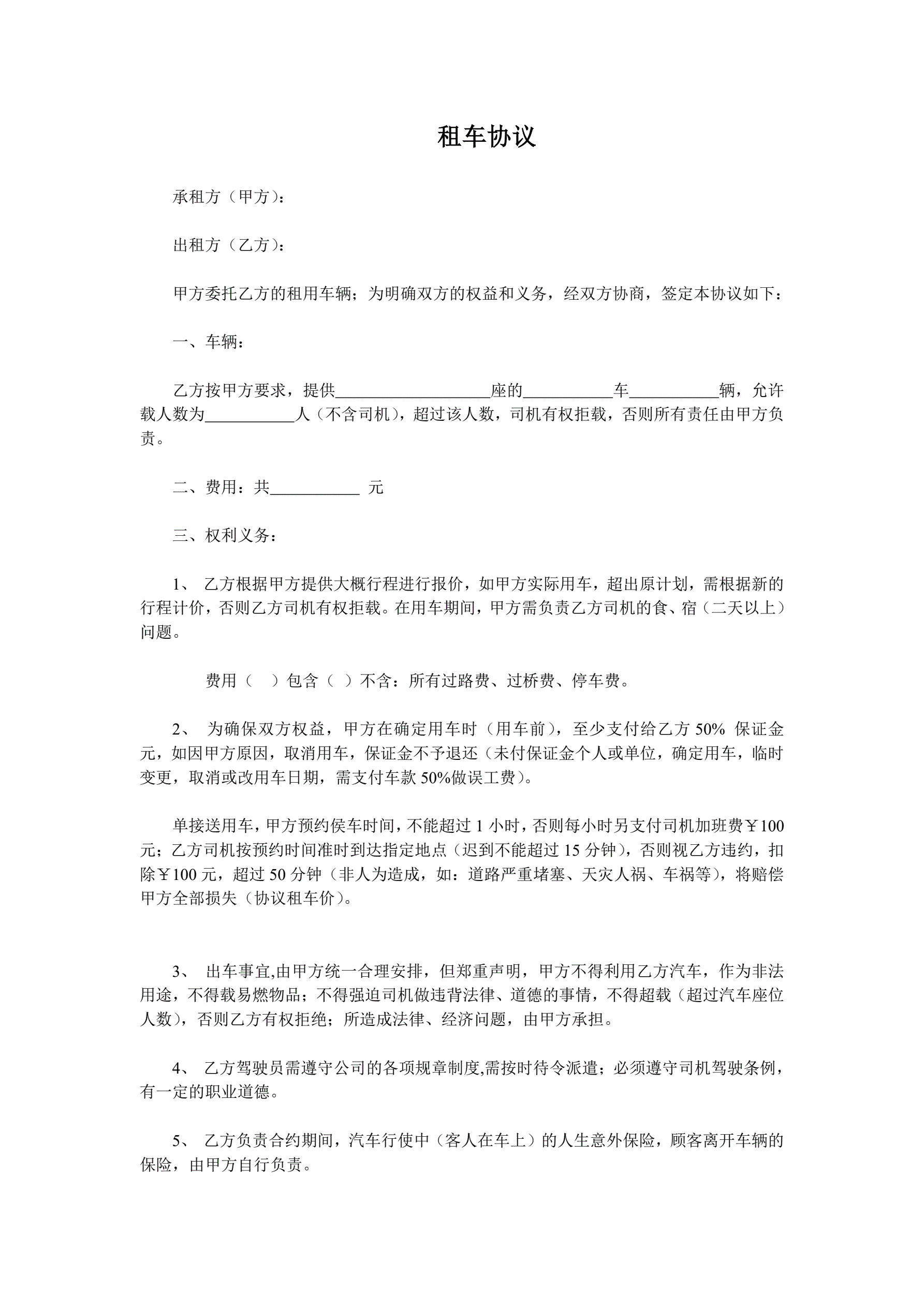 >租车协议