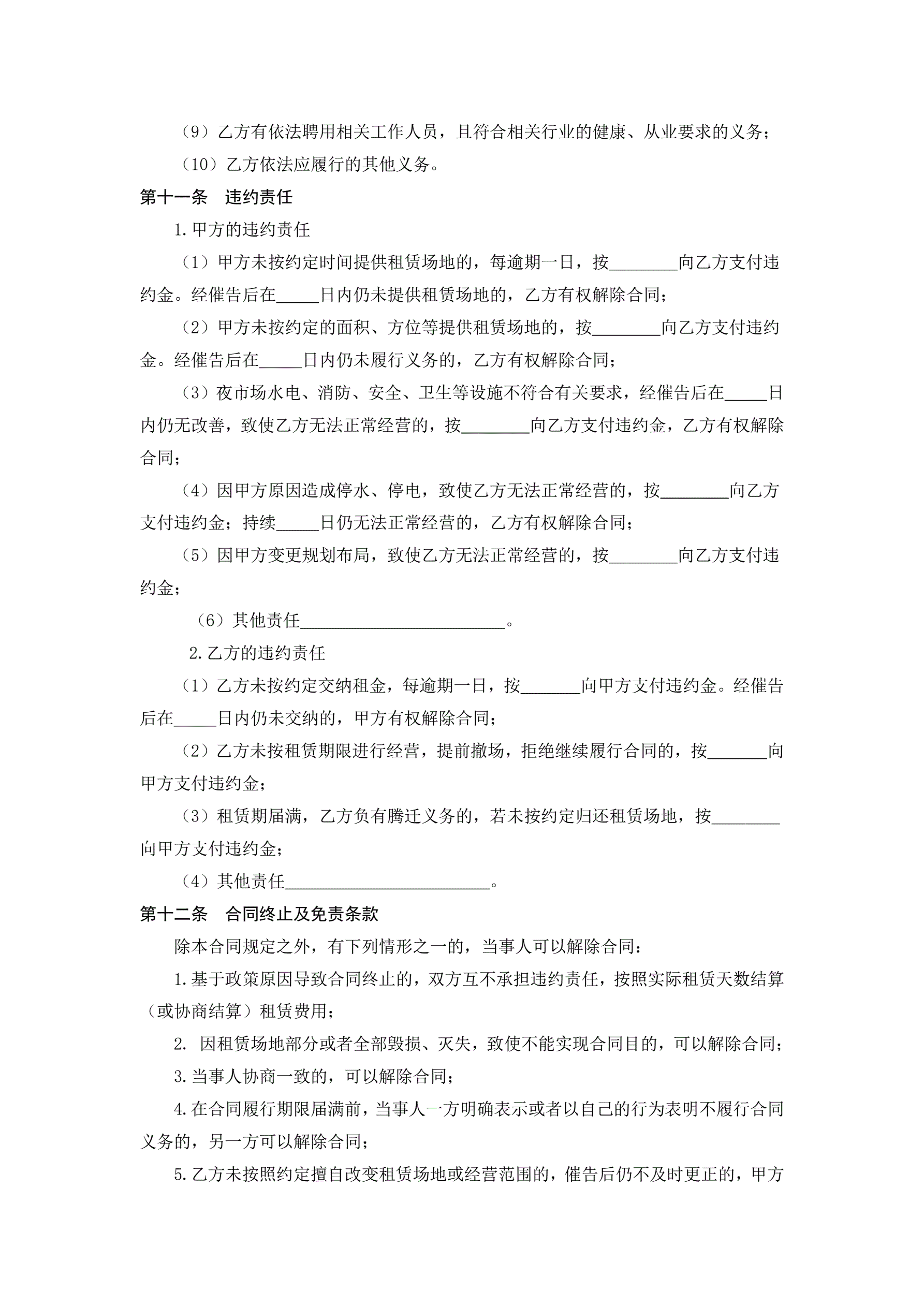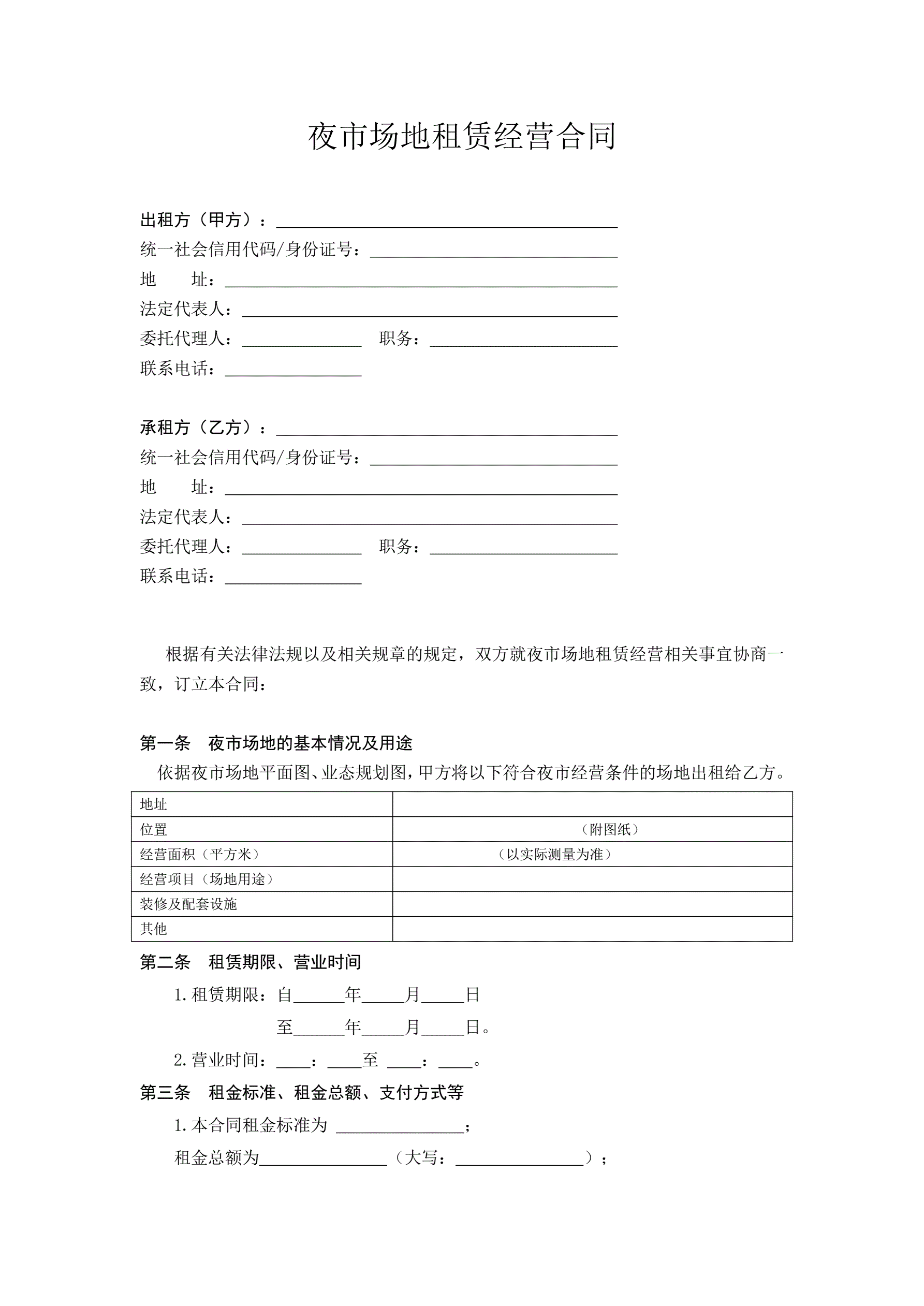 夜市场地租赁经营合同(示范文本)