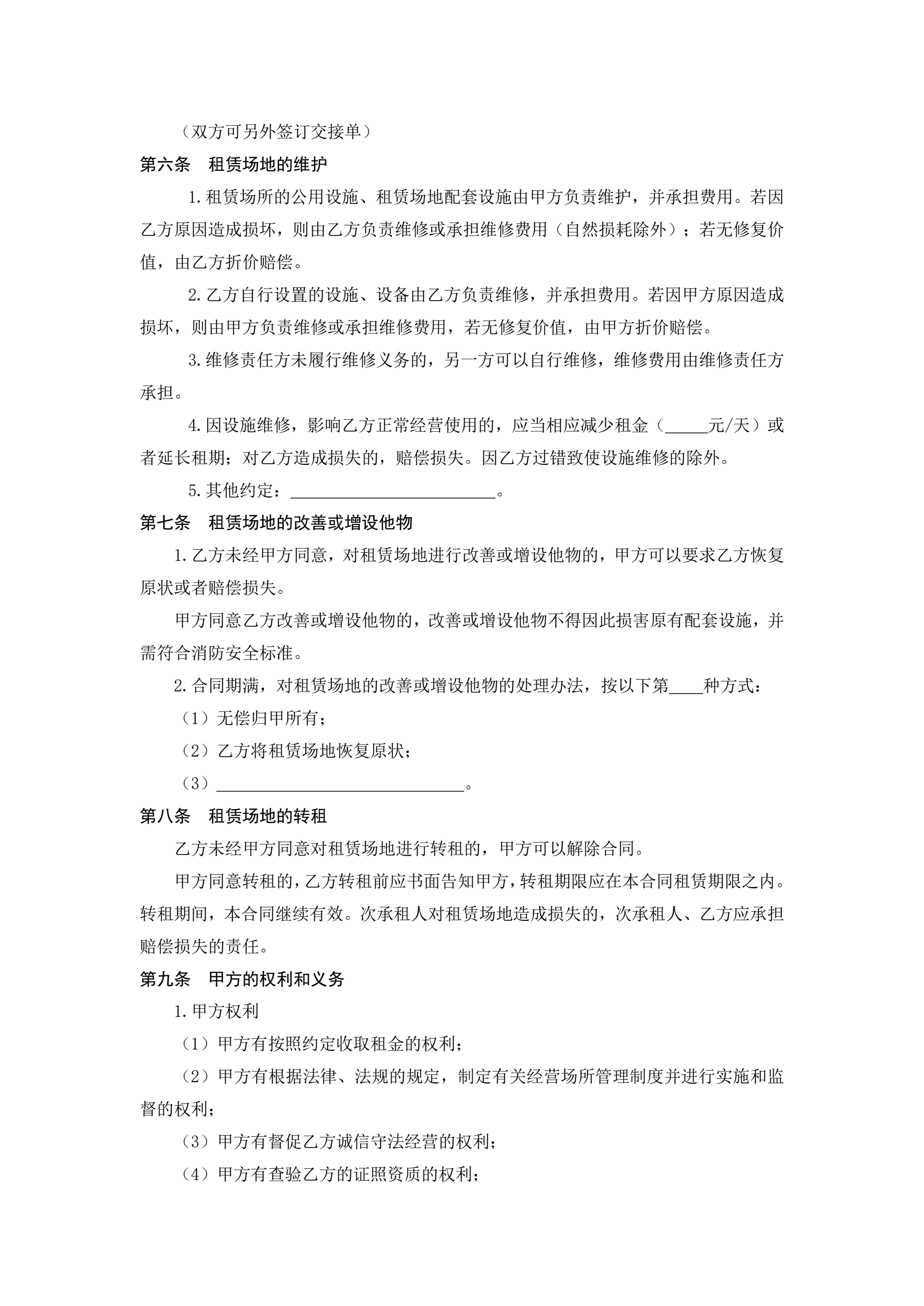 >夜市场地租赁经营合同(示范文本)