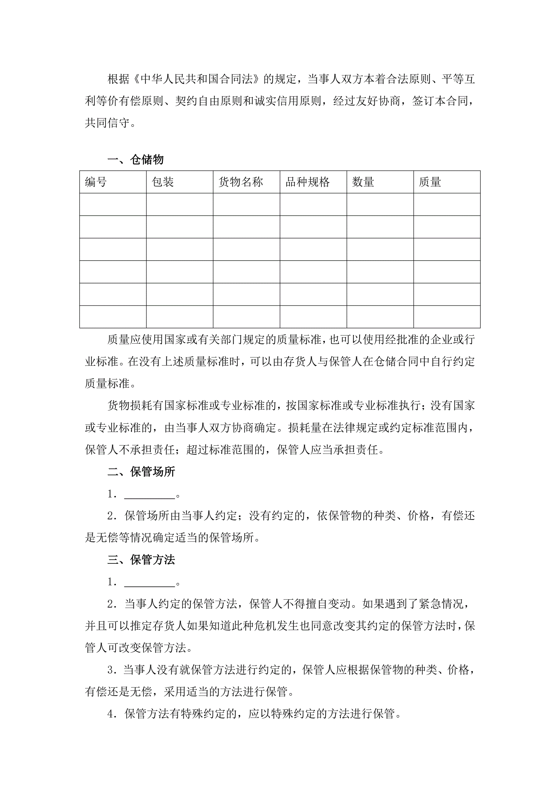 仓储合同