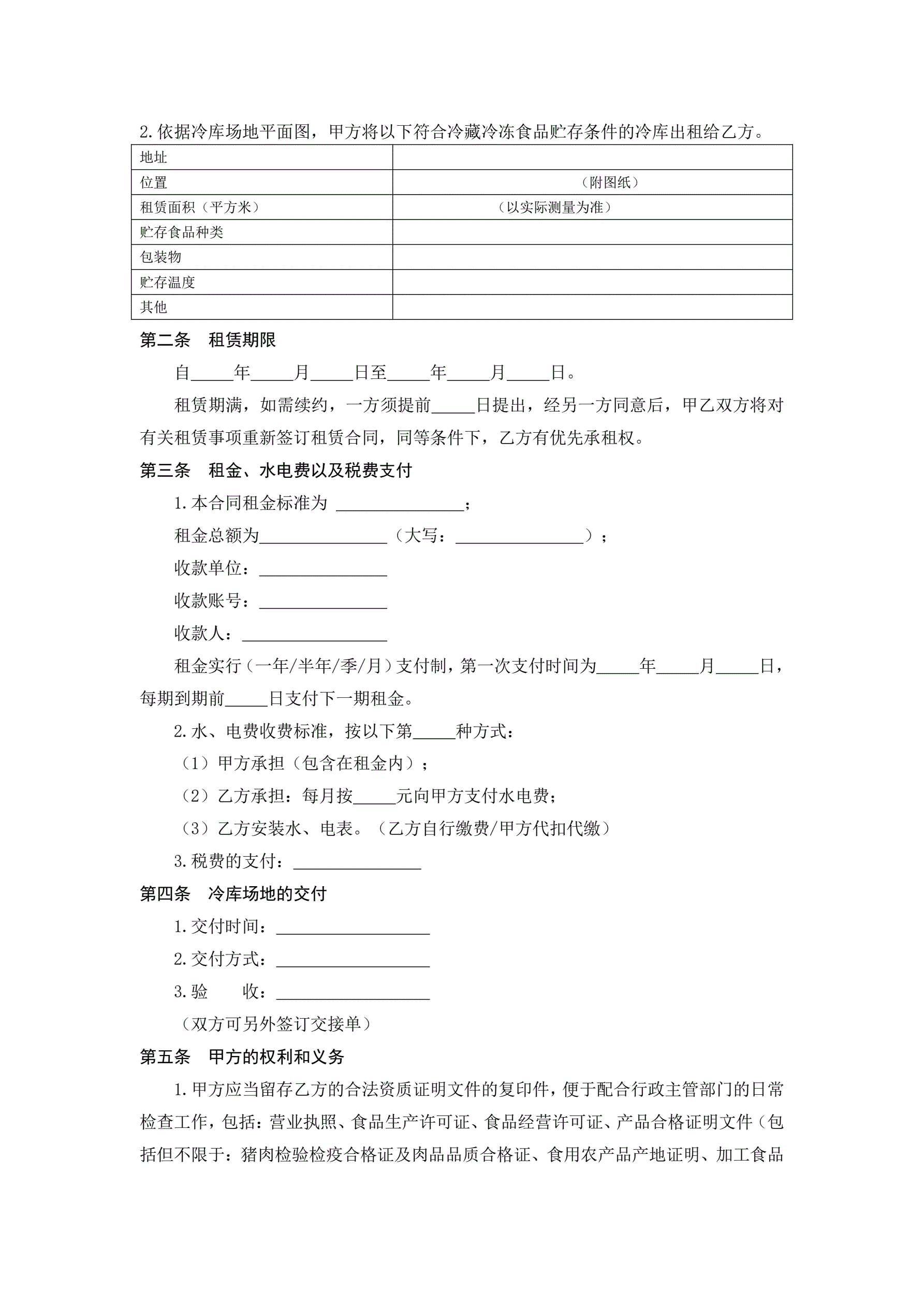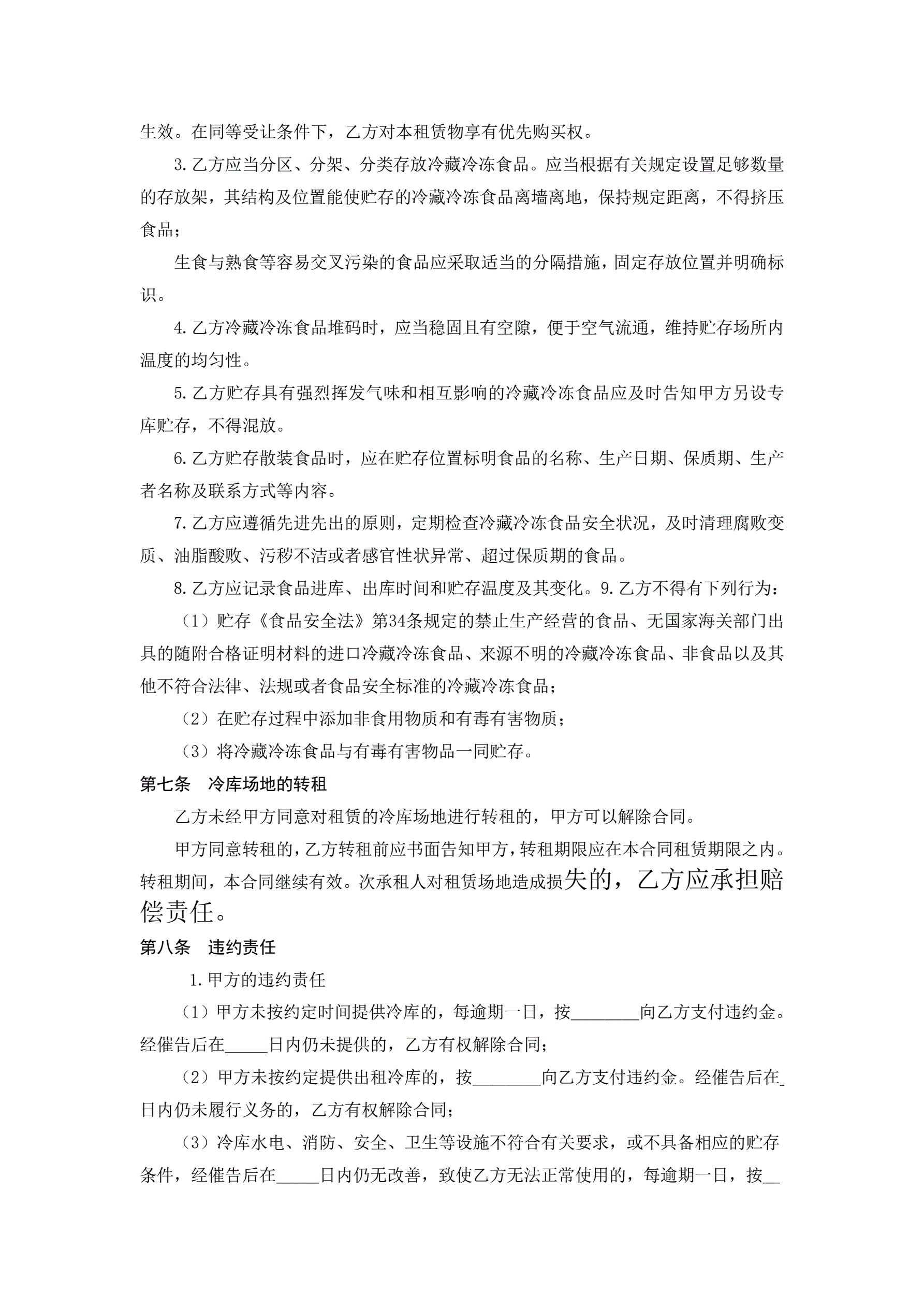 冷藏冷冻食品仓库租赁合同(示范文本)