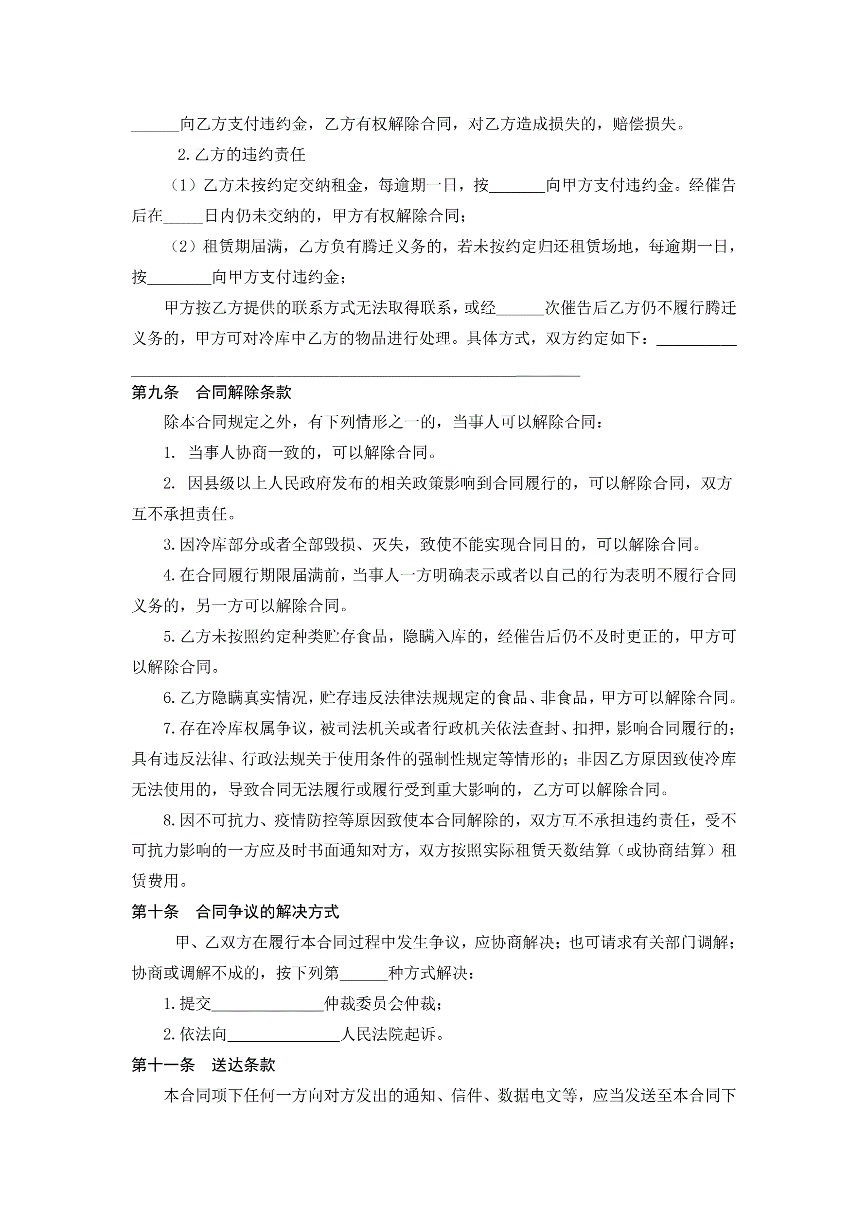 >冷藏冷冻食品仓库租赁合同(示范文本)