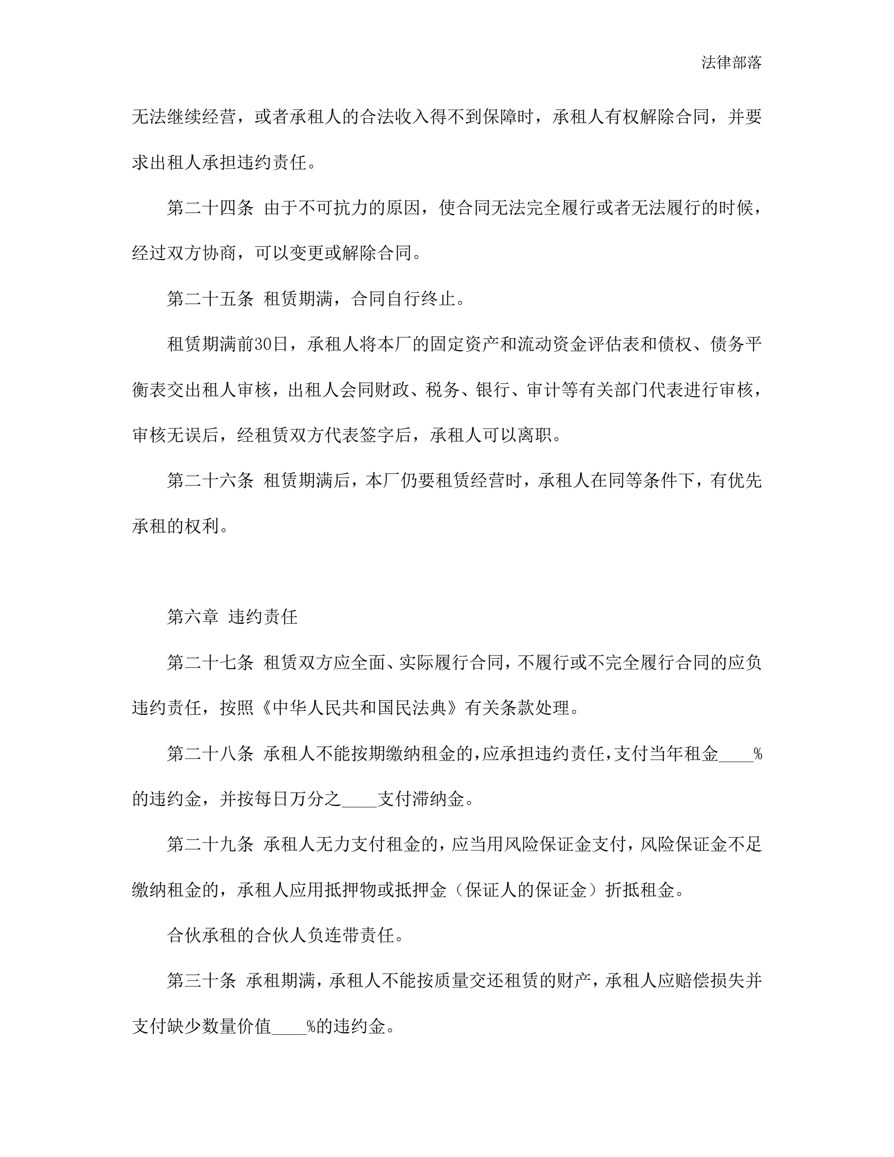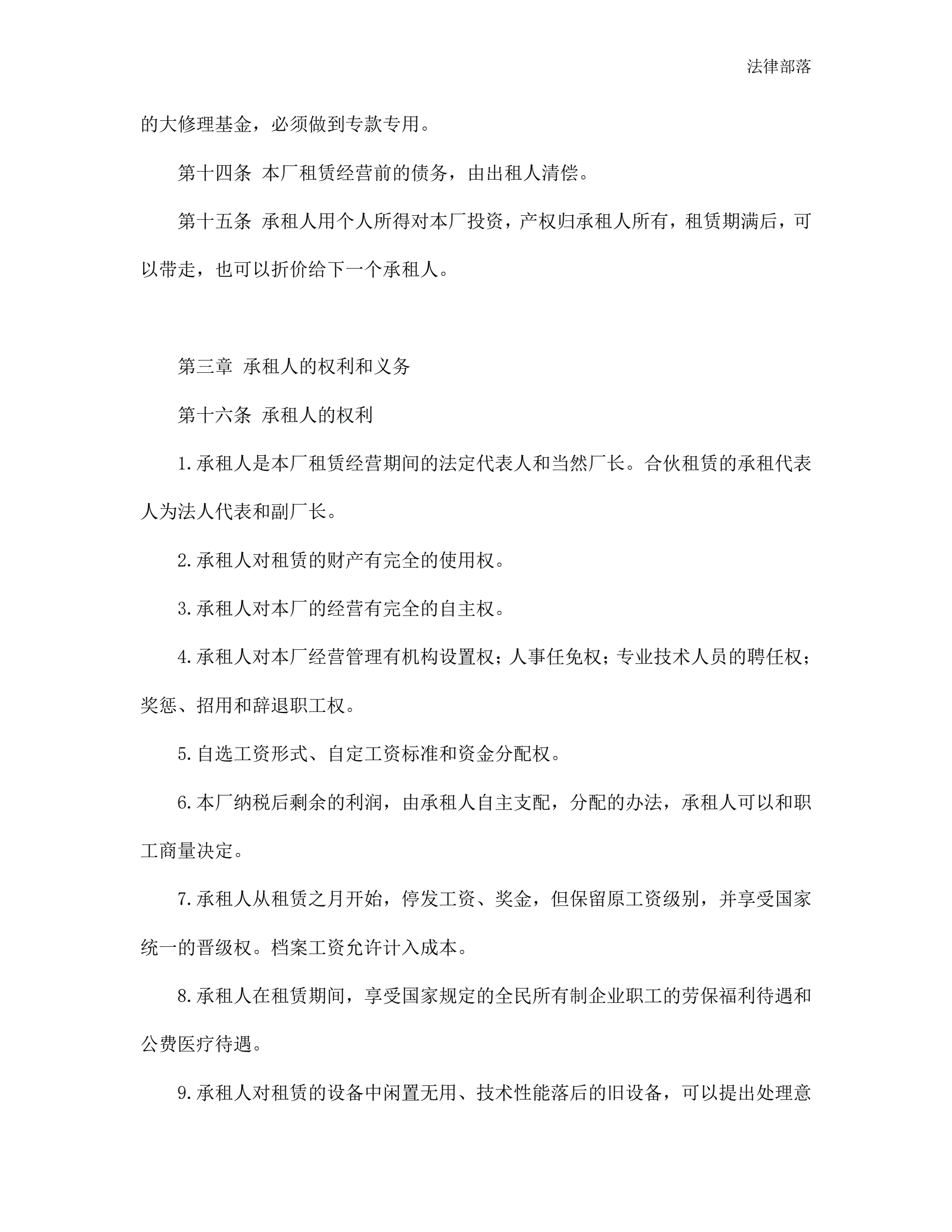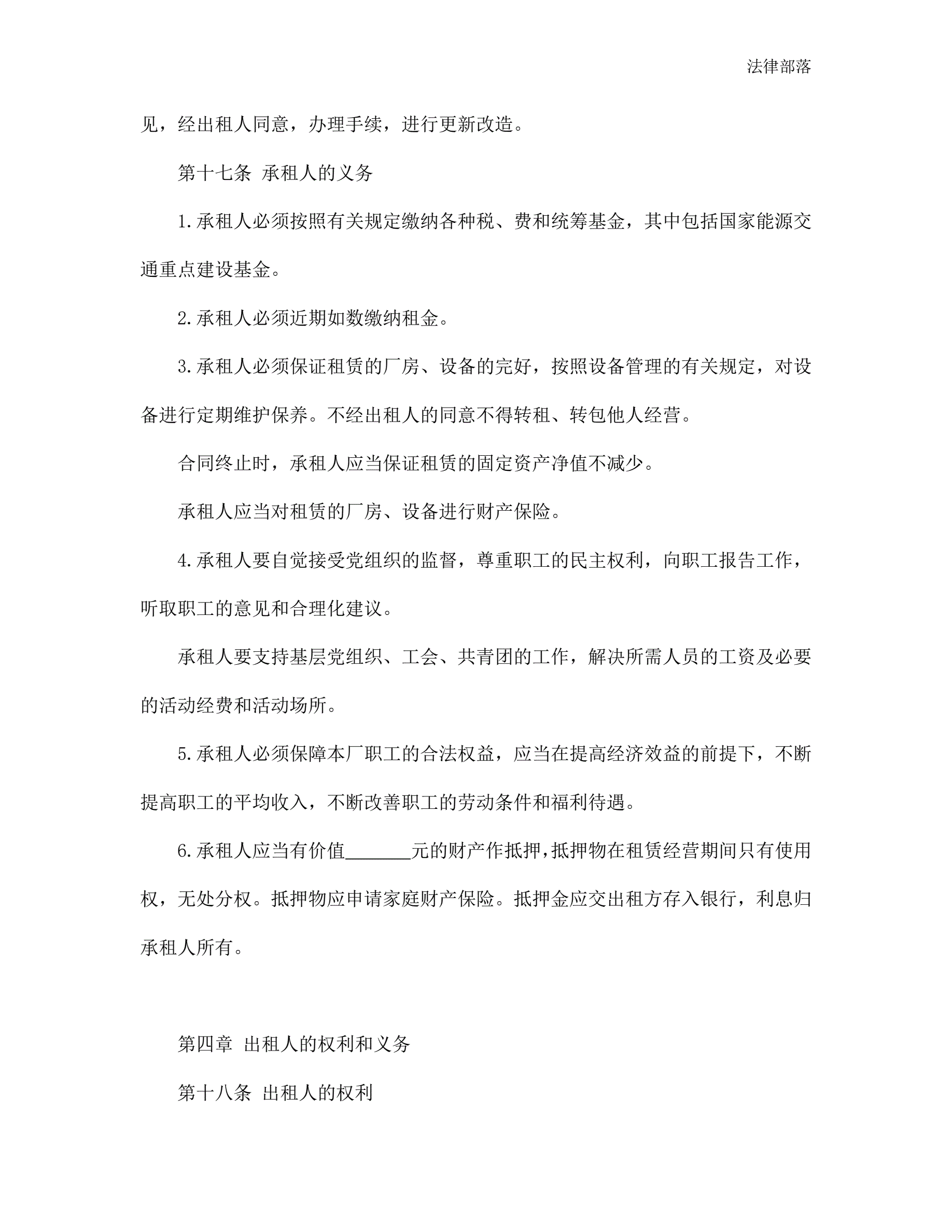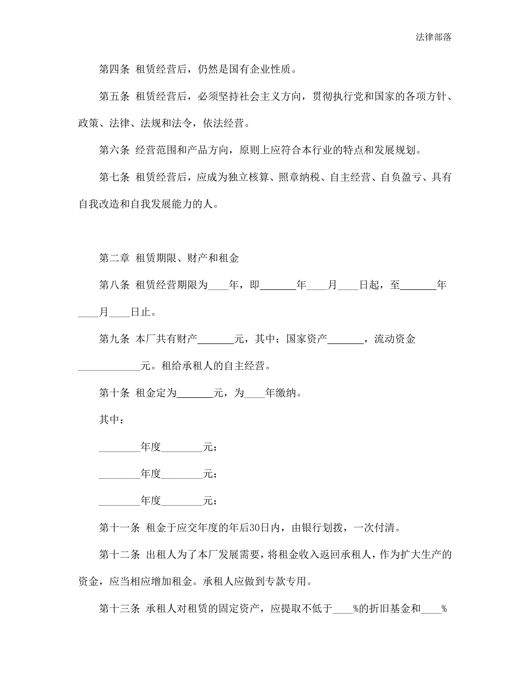 >企业租赁经营合同