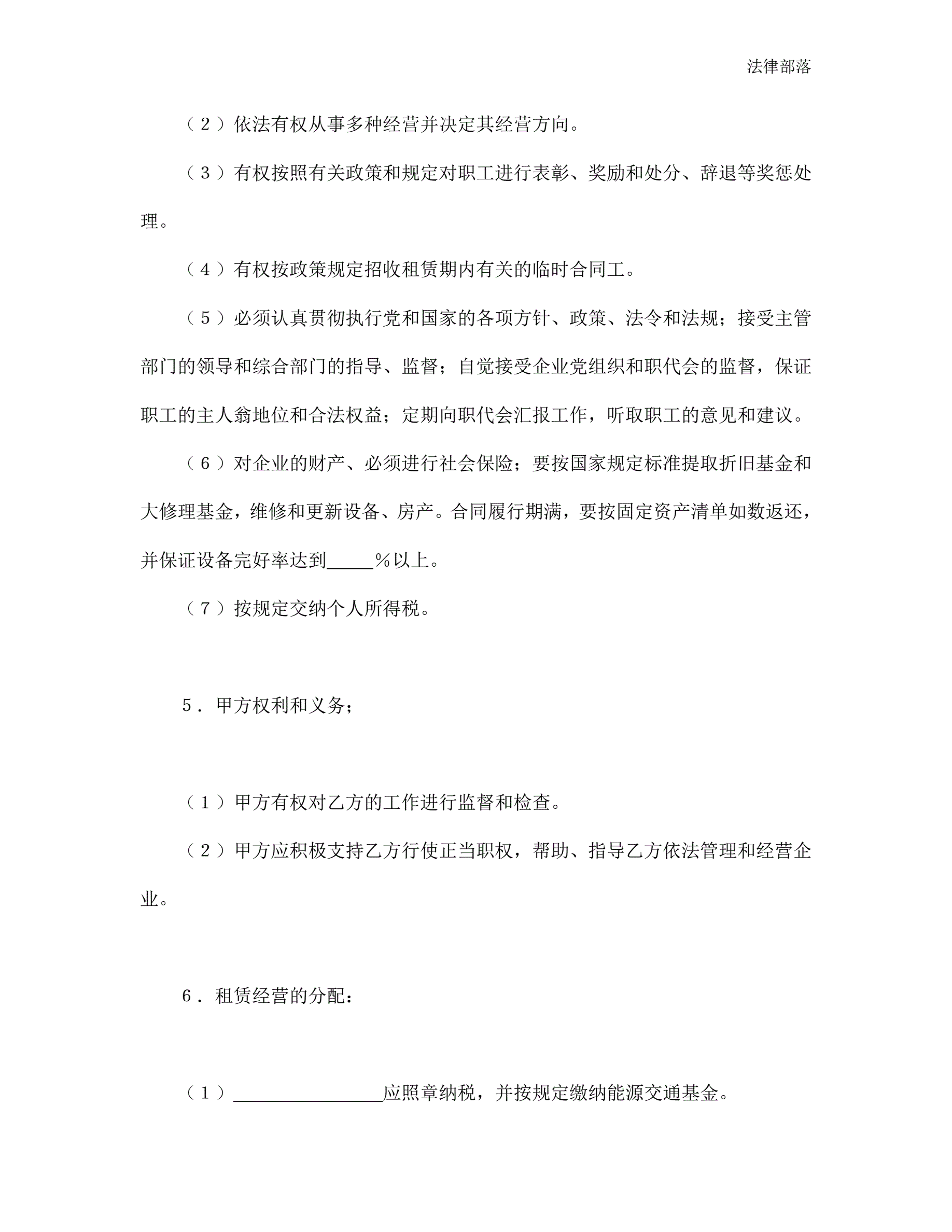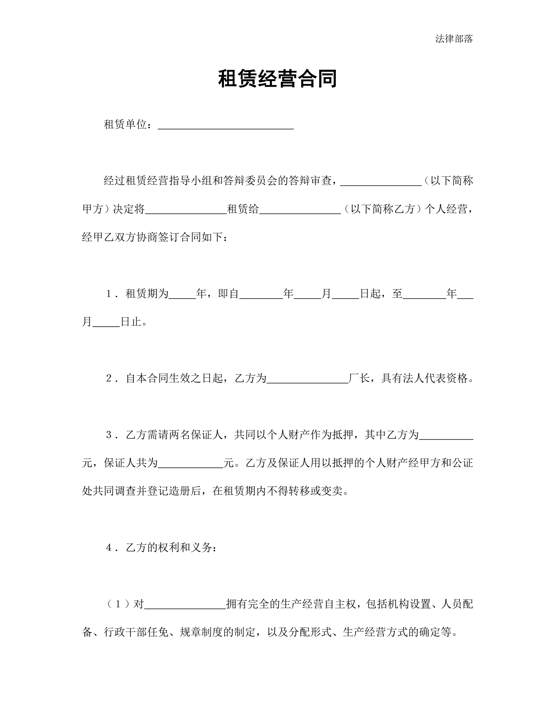 >租赁经营合同通用版