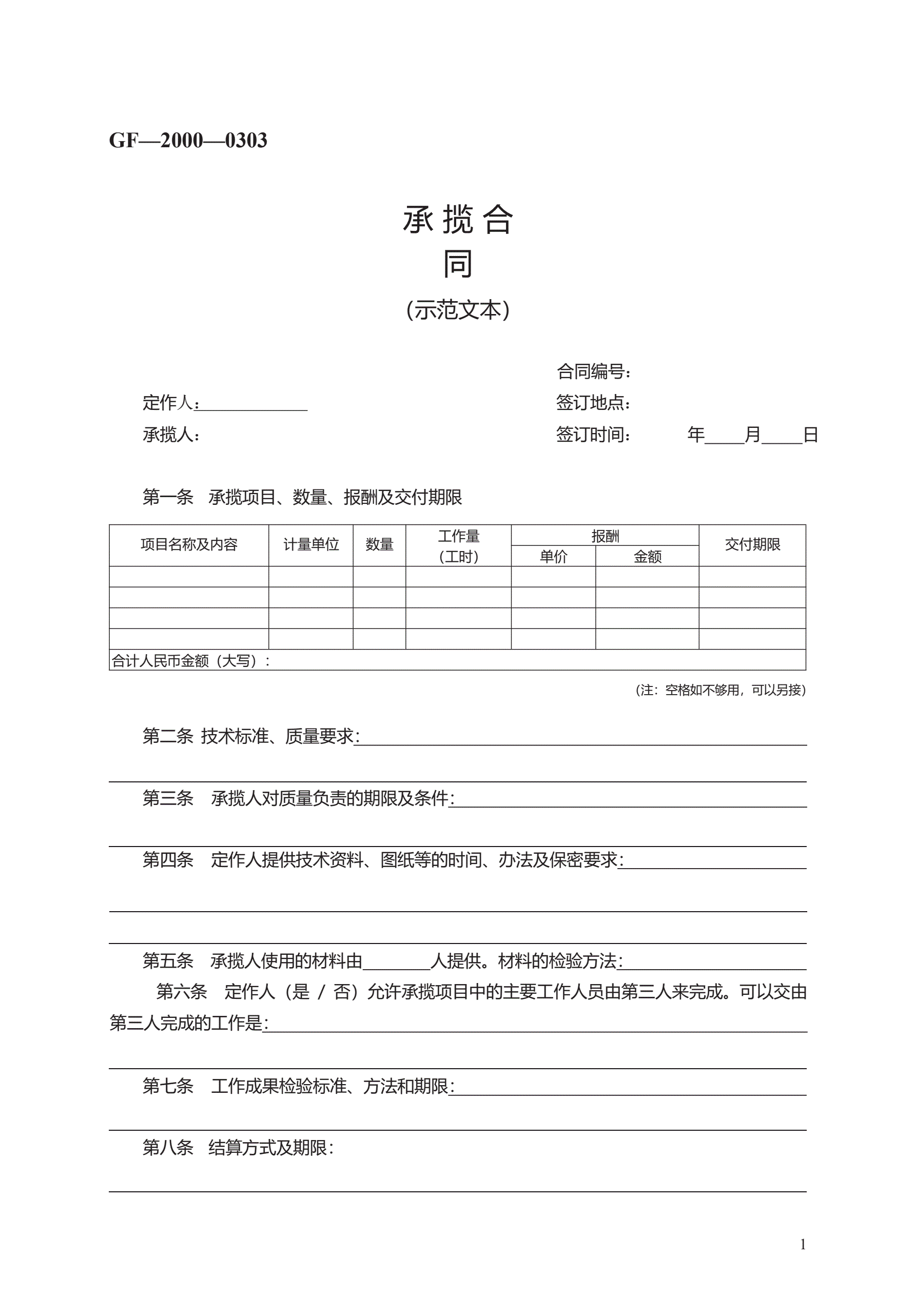 承揽合同 GF—2000—0303