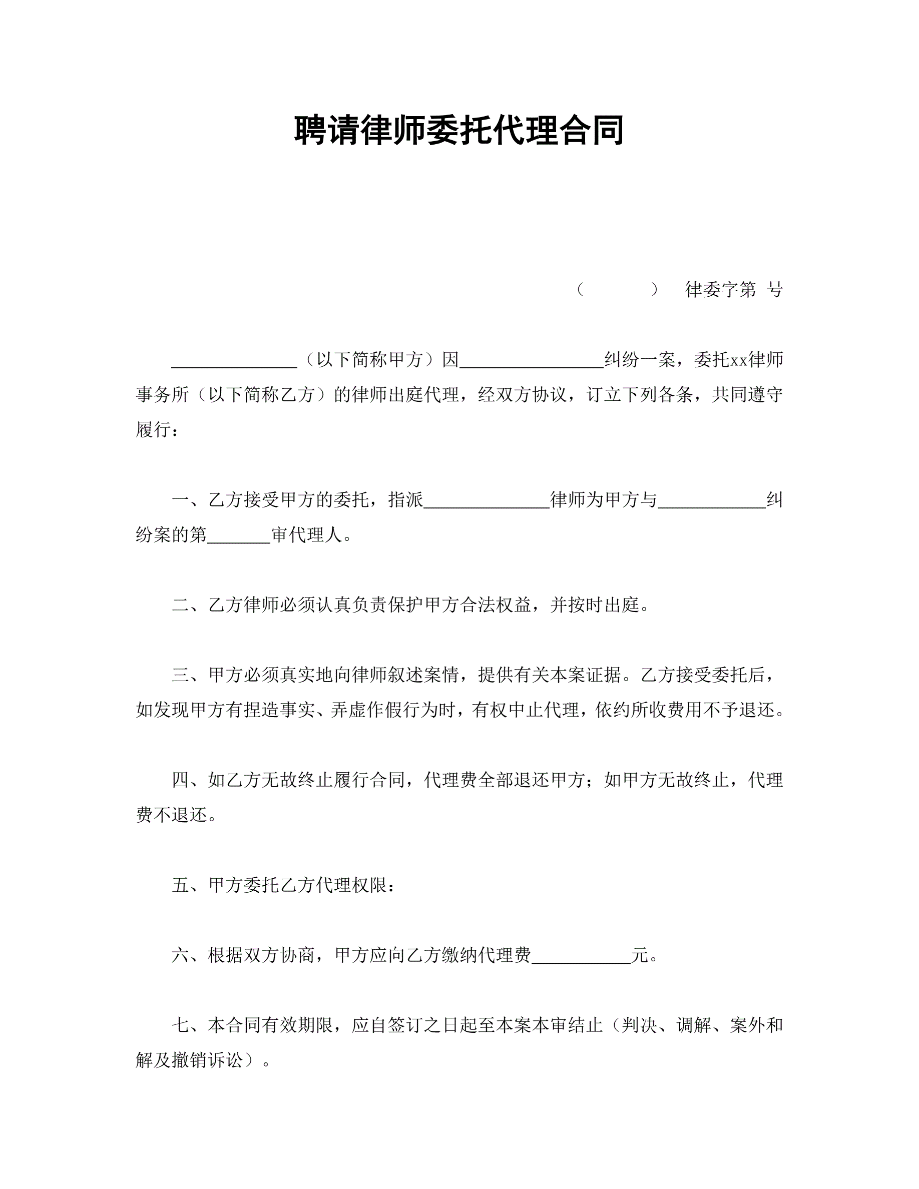 >律师聘请委托代理合同