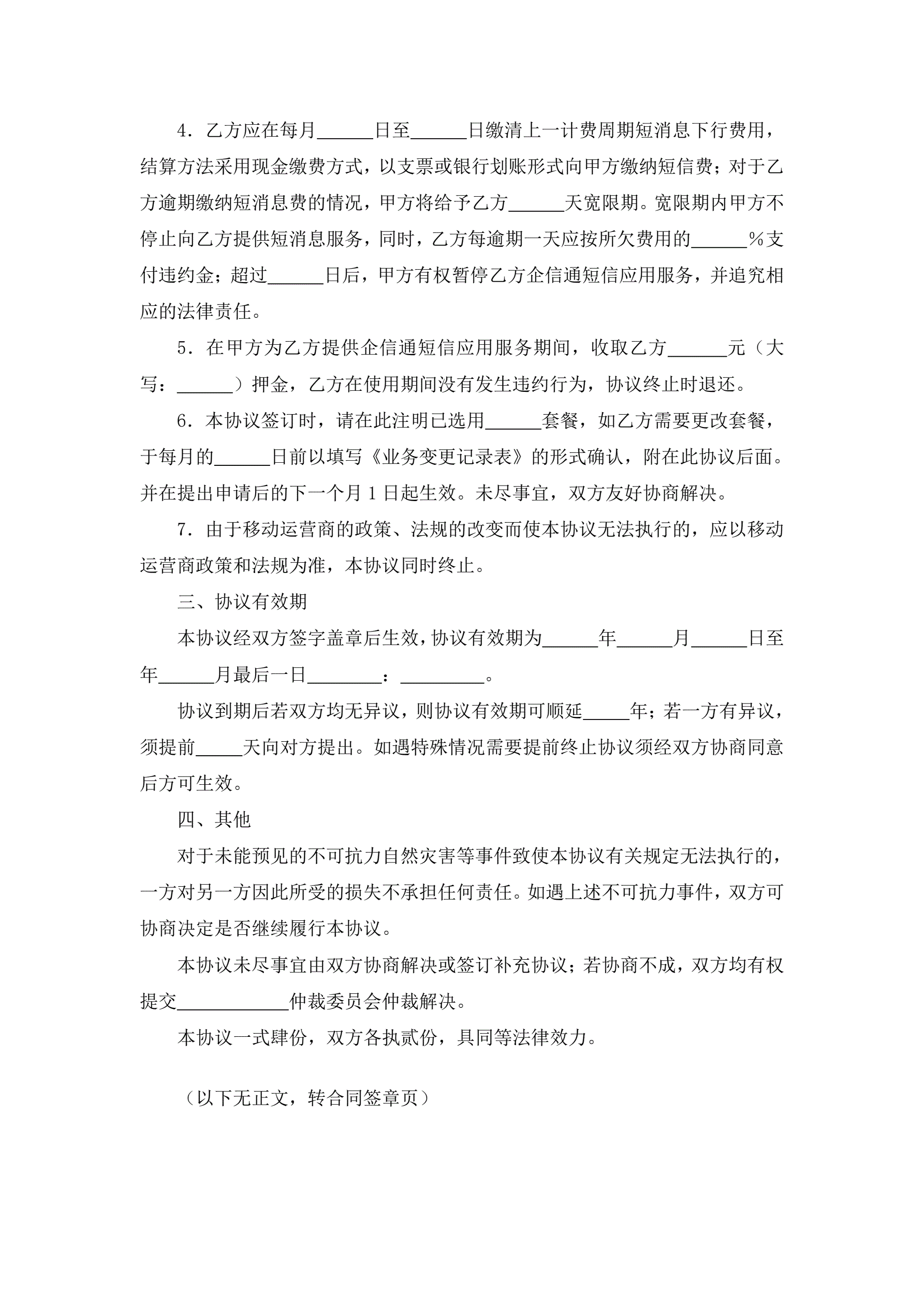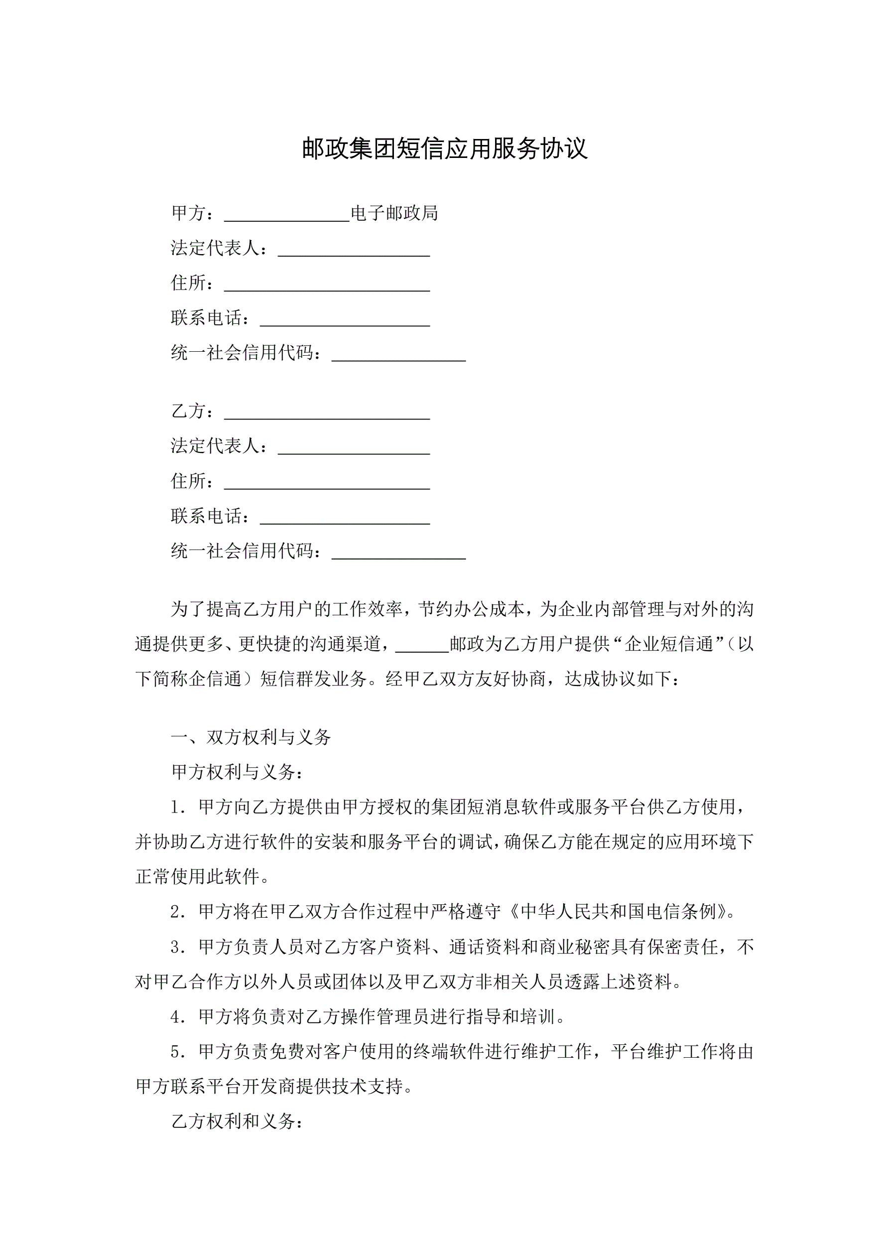 >邮政集团短信应用服务协议