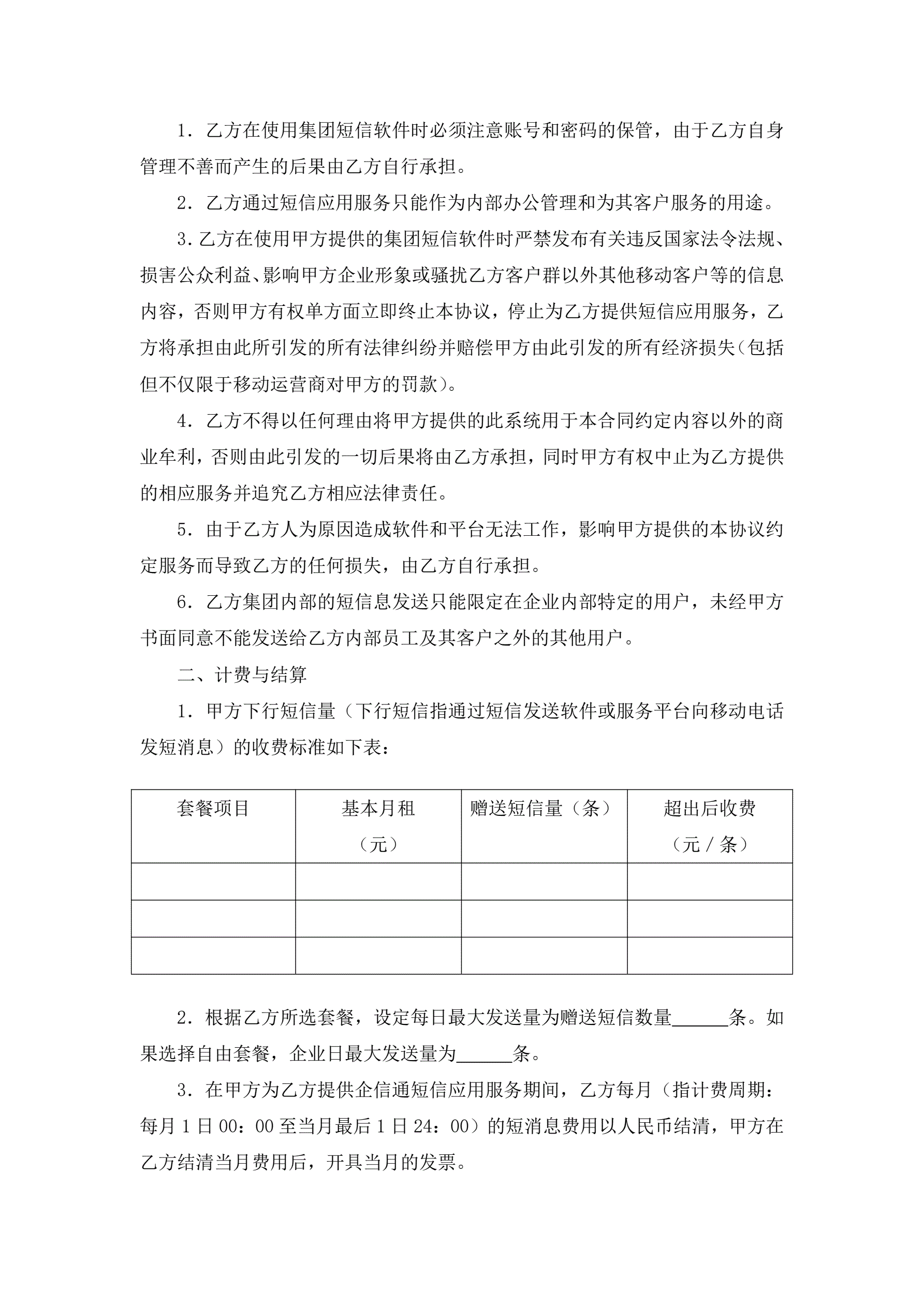 邮政集团短信应用服务协议