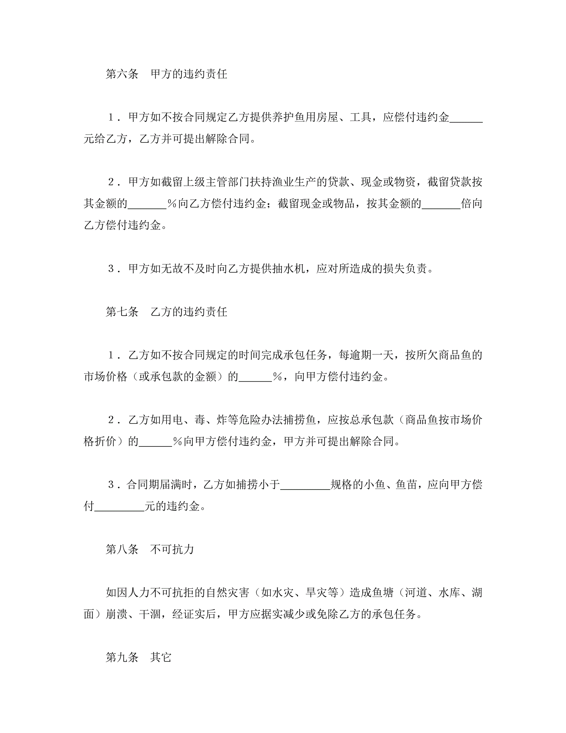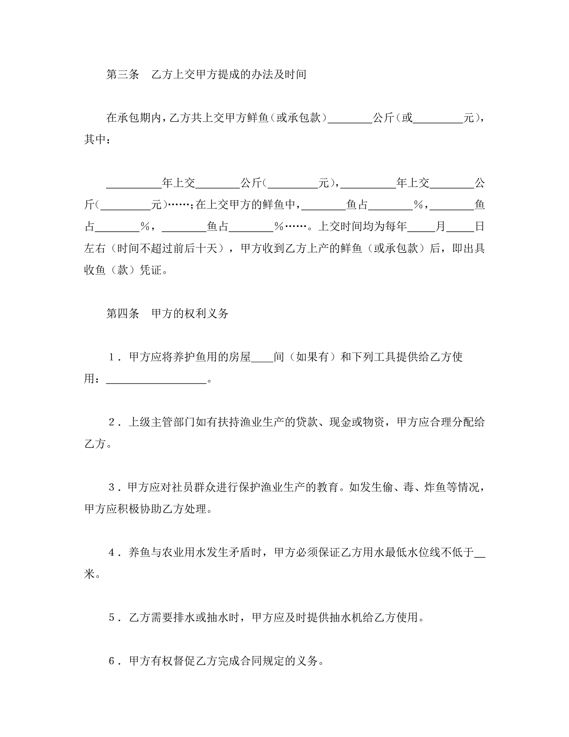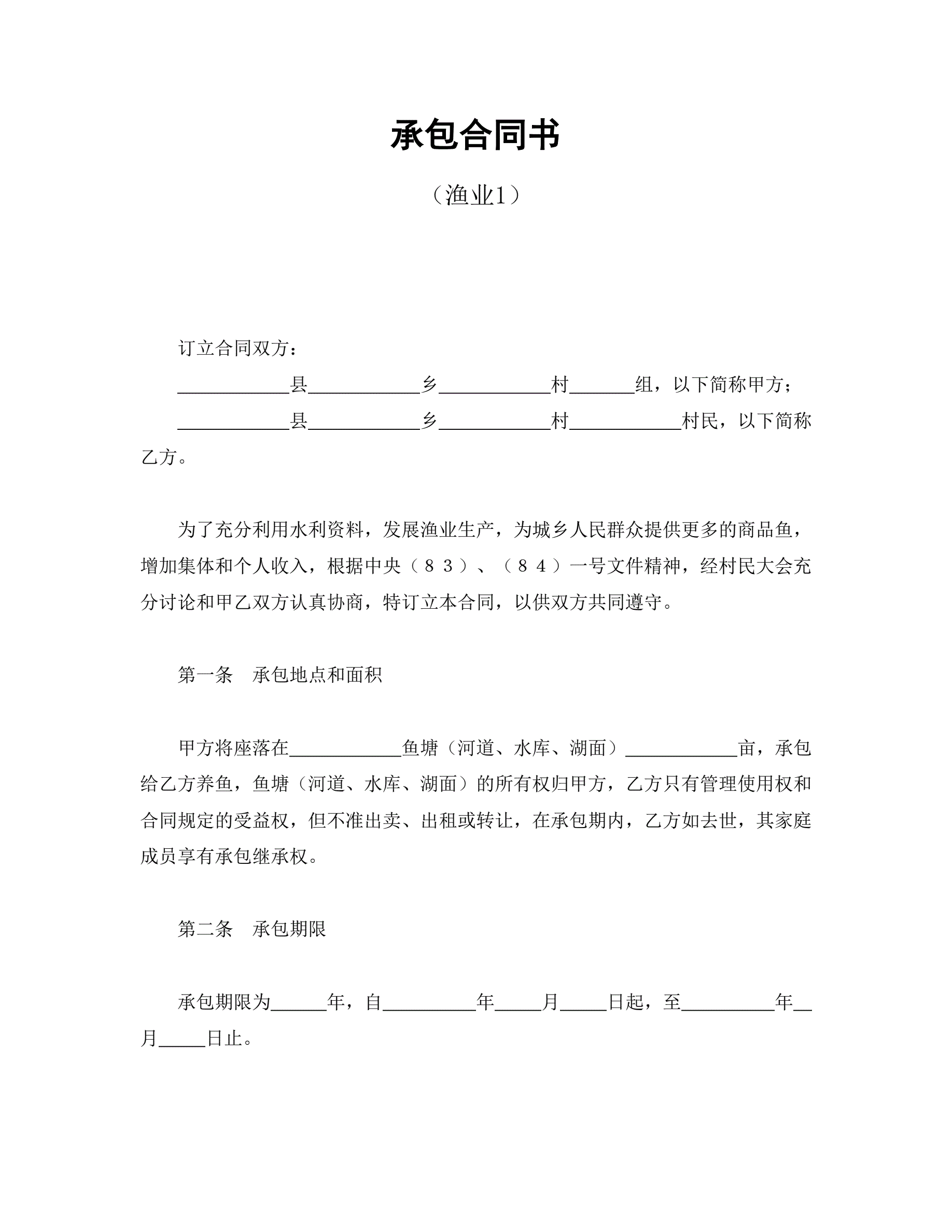 >承包合同书(渔业1)