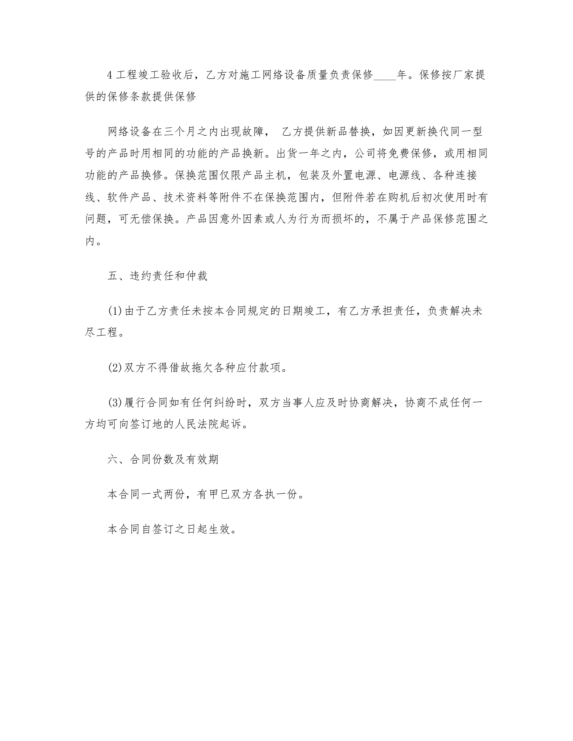网络设备安装工程合同