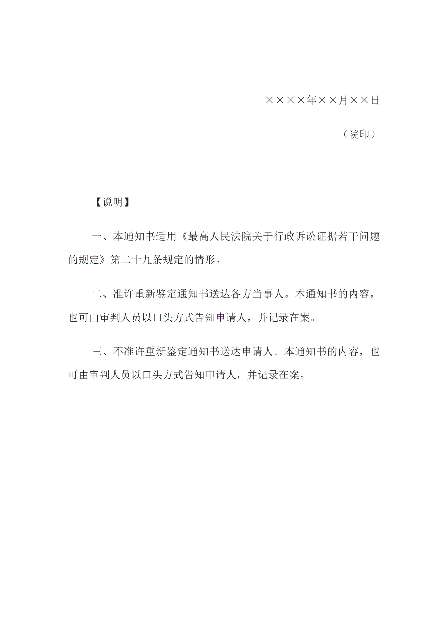 >通知书(准许或不予准许对被告提供的鉴定结论重新鉴定申请用)