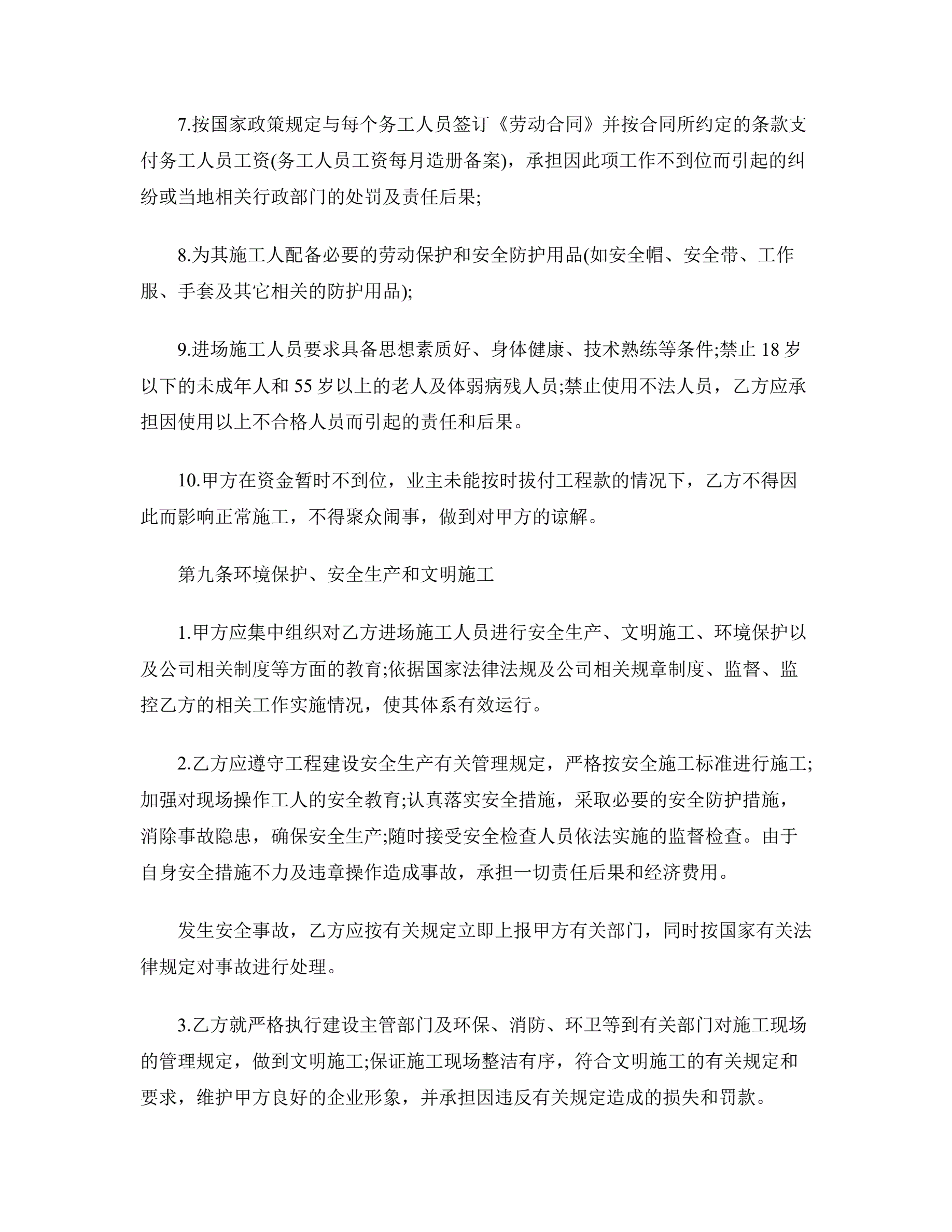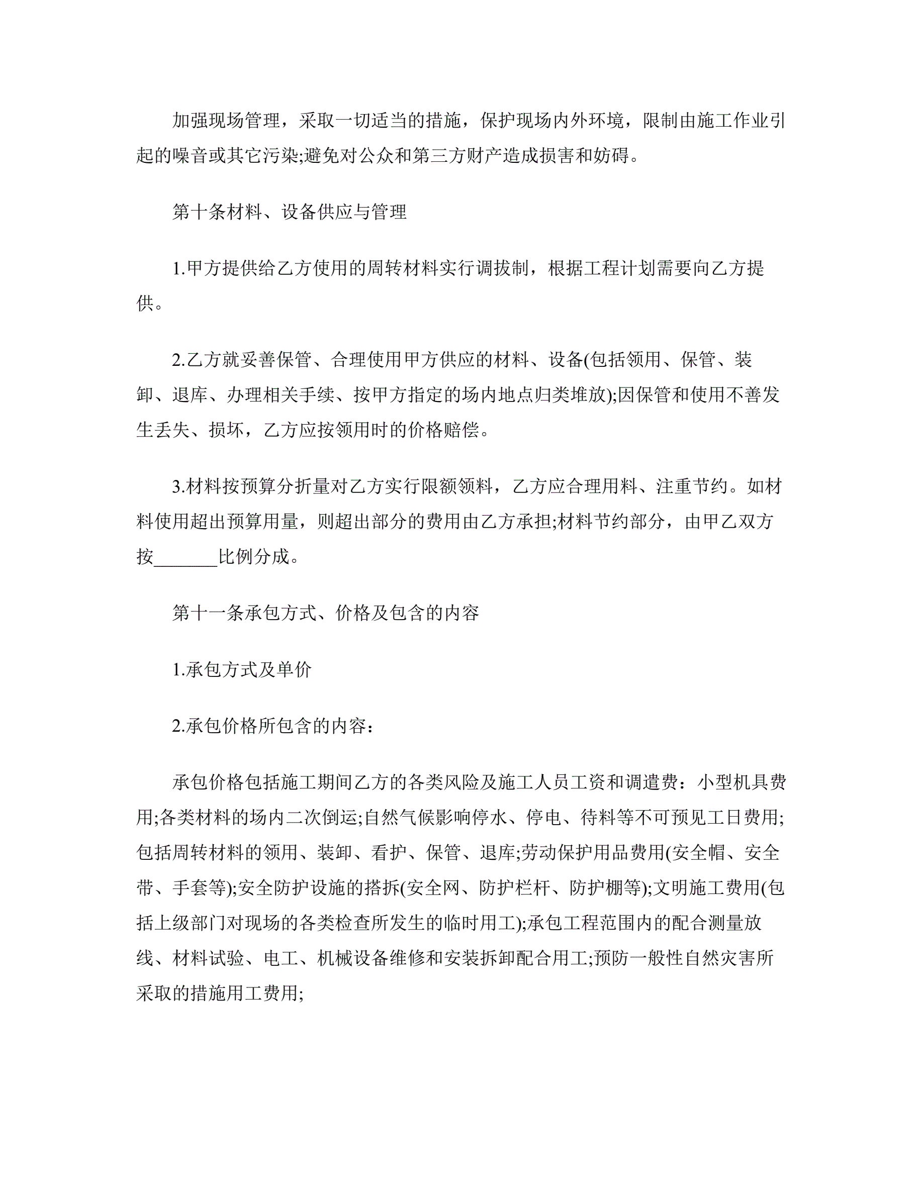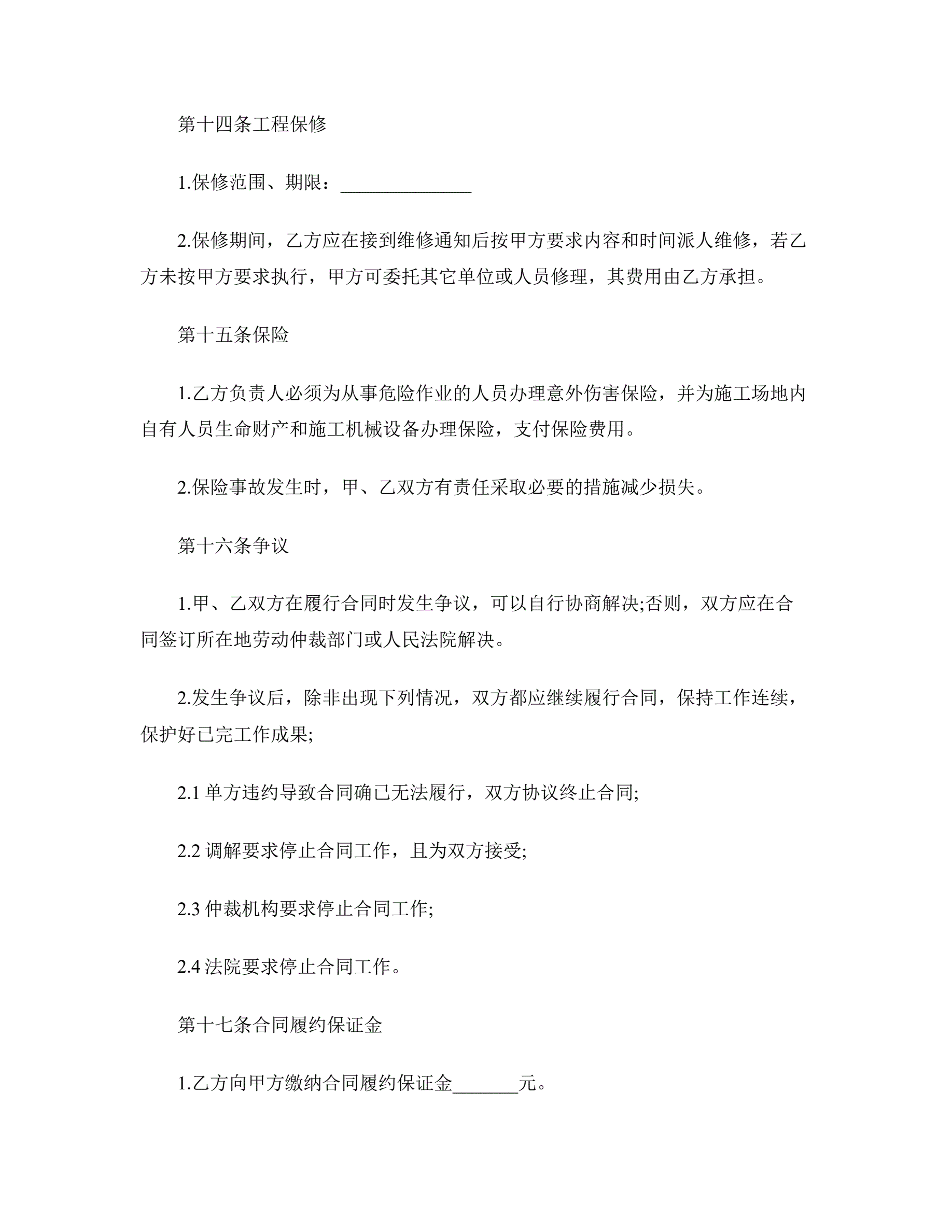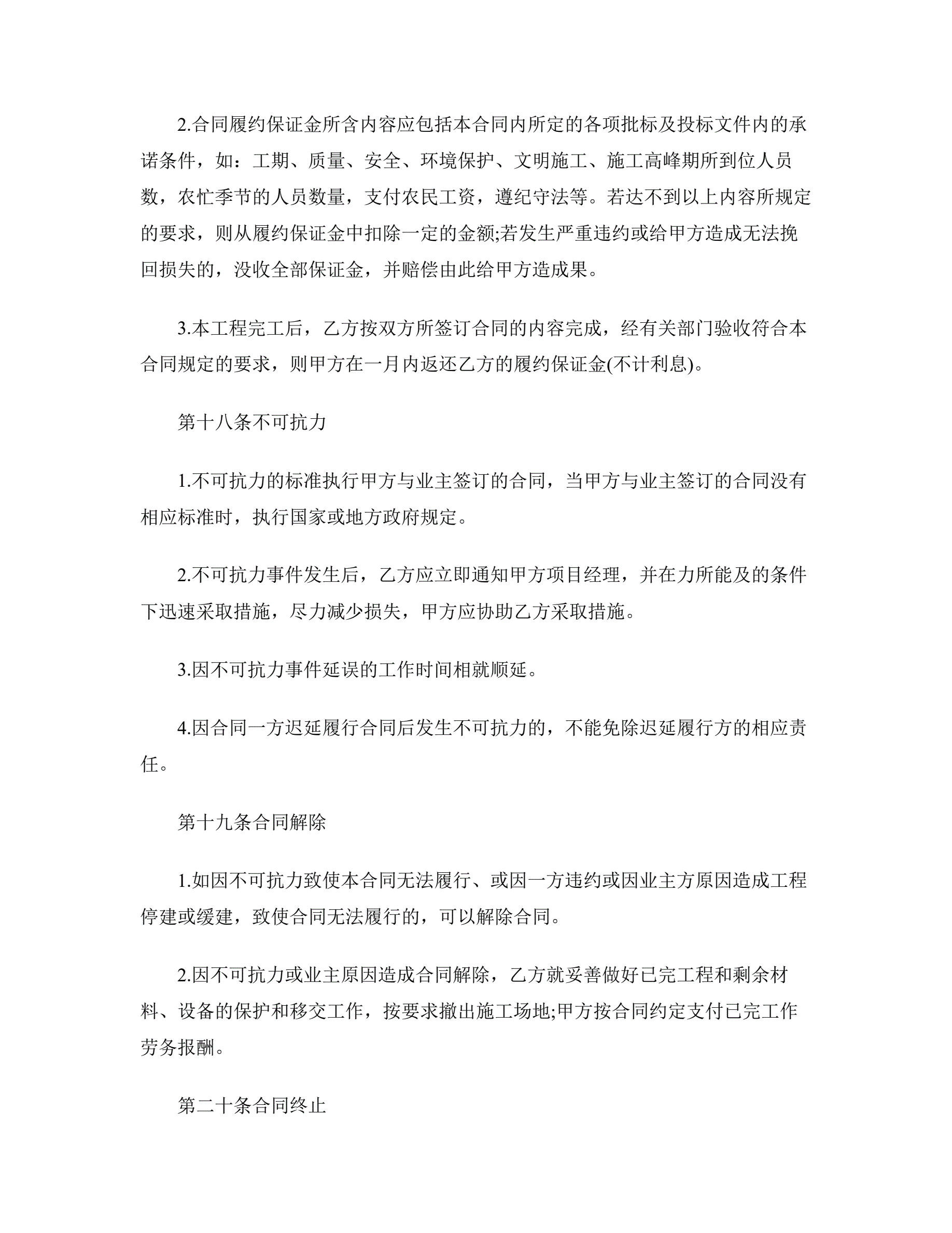 >工程承包合同范本二