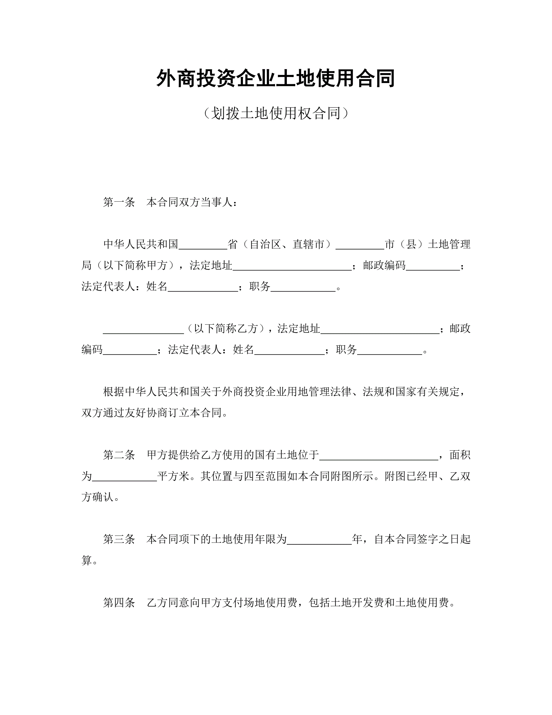 >外商投资企业土地使用合同(划拨土地使用权合同)