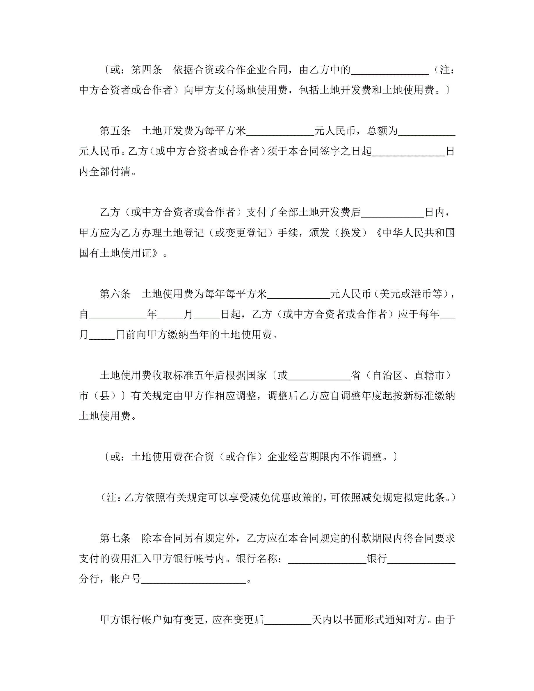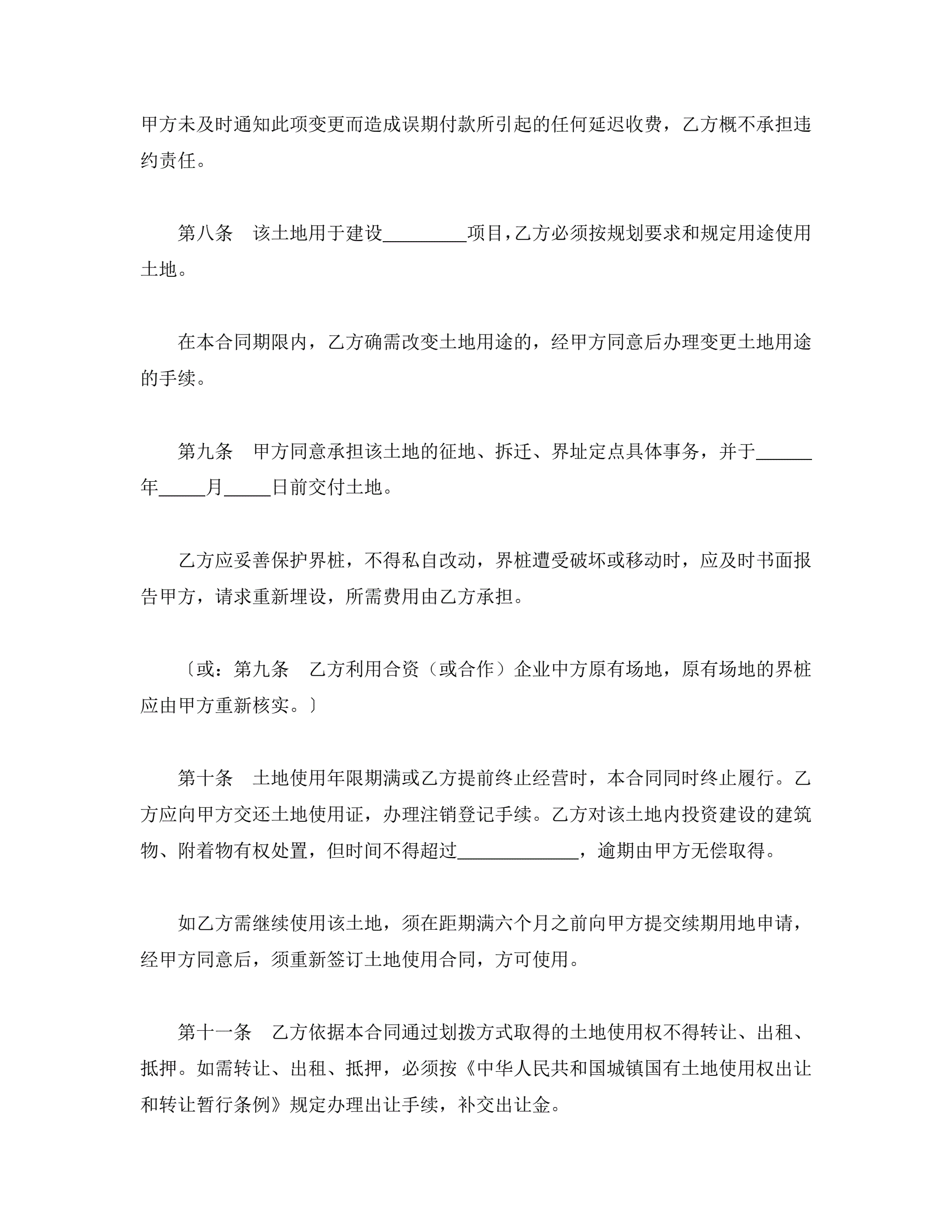 外商投资企业土地使用合同(划拨土地使用权合同)